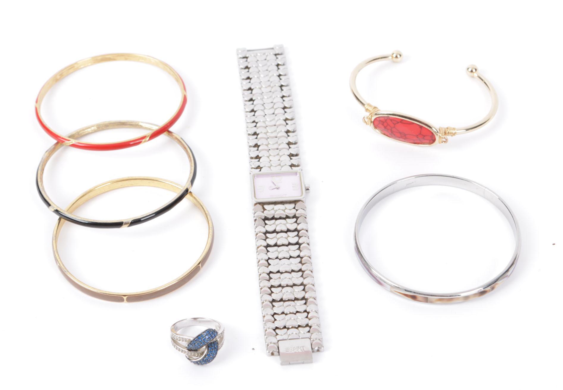 Koop van Esprit polshorloge, diverse armbanden, ring, etc.