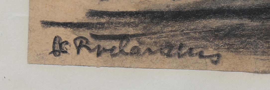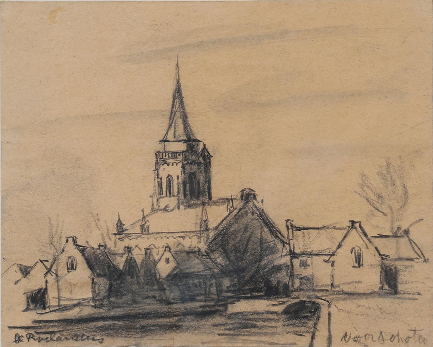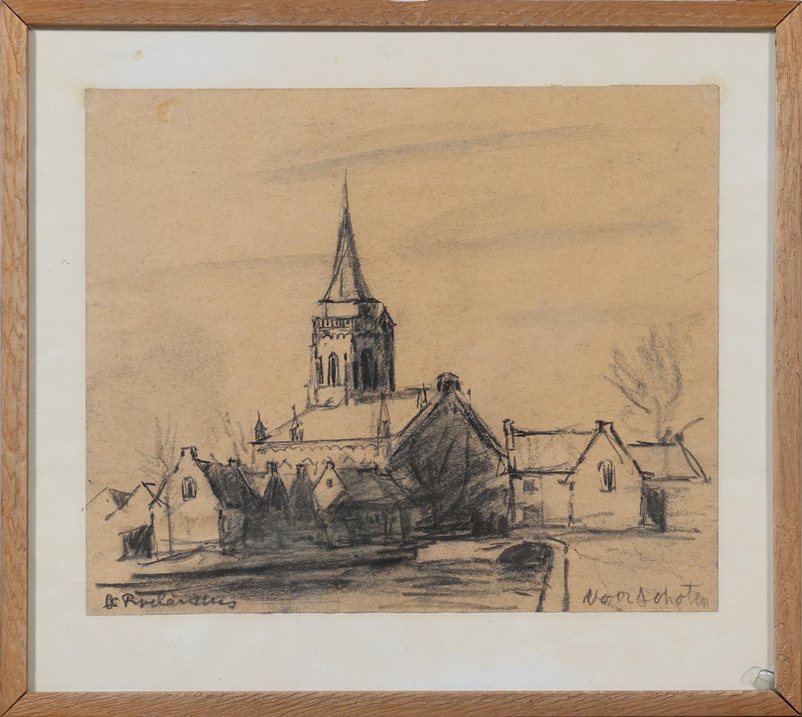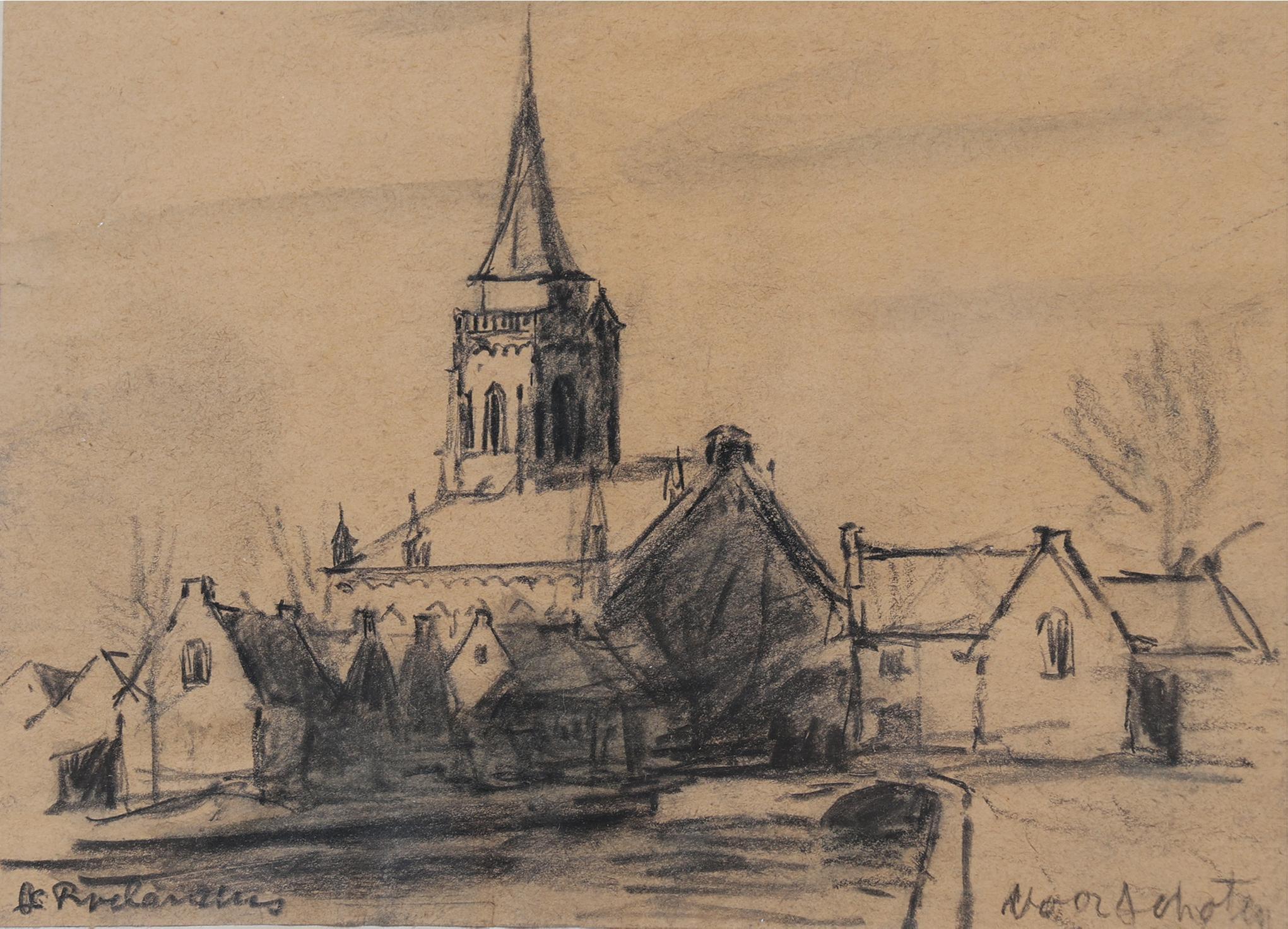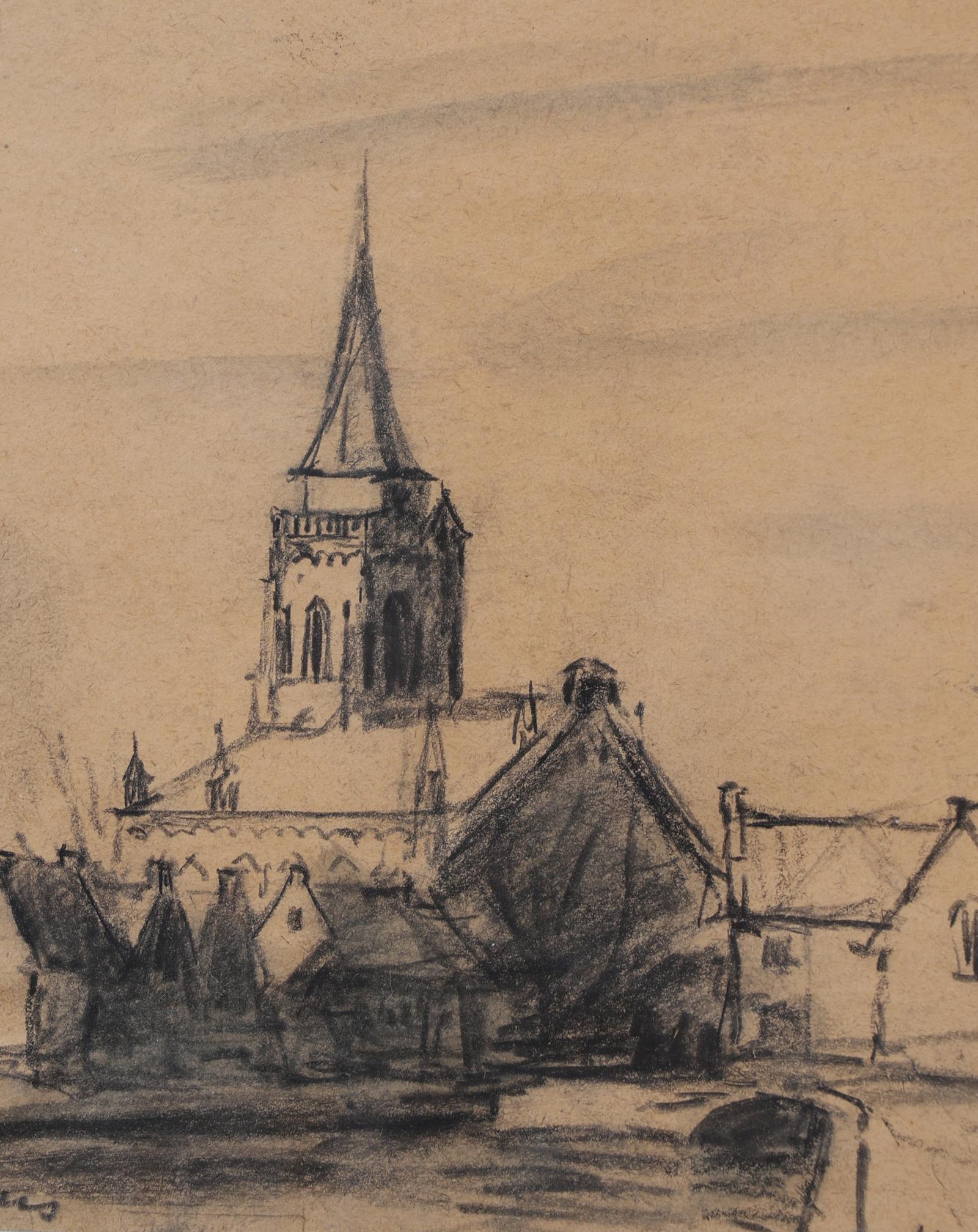 Joannes Cornelis Roelandse (1888-1978), Gezicht op Voorschoten, houtskooltekening, 19,5 x 23 cm.