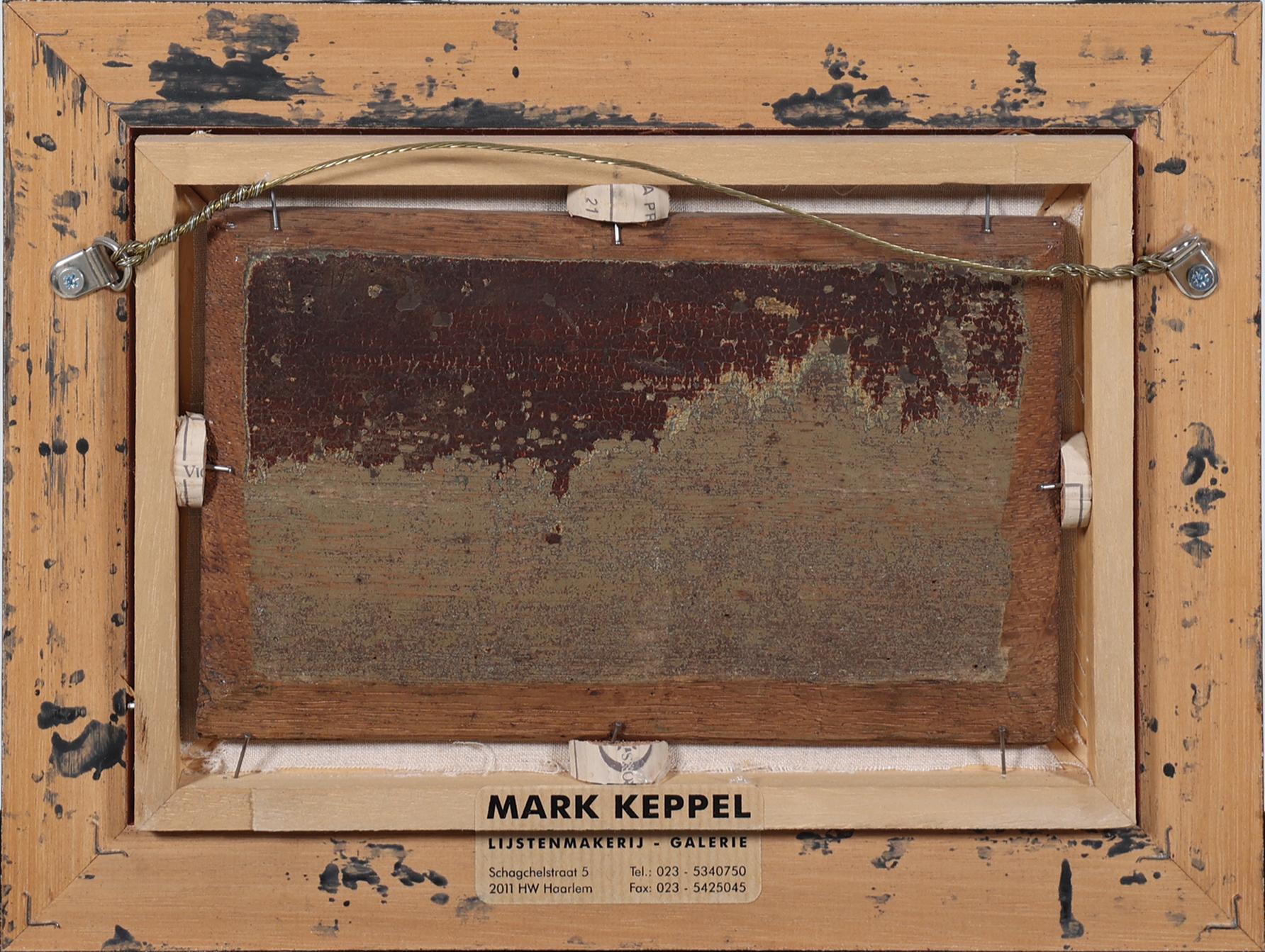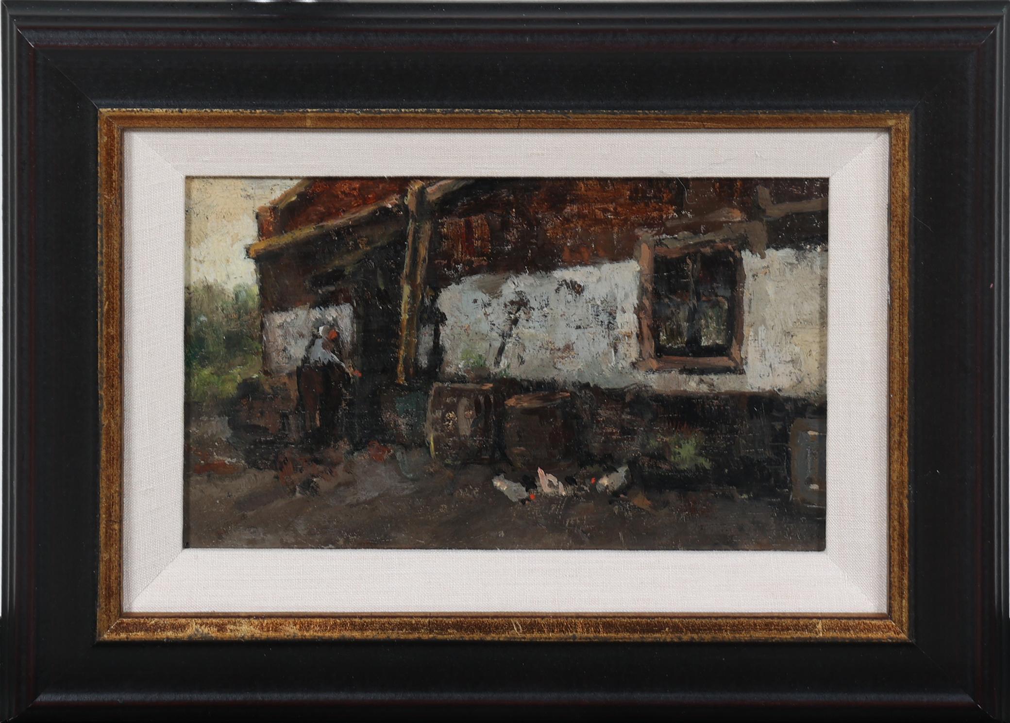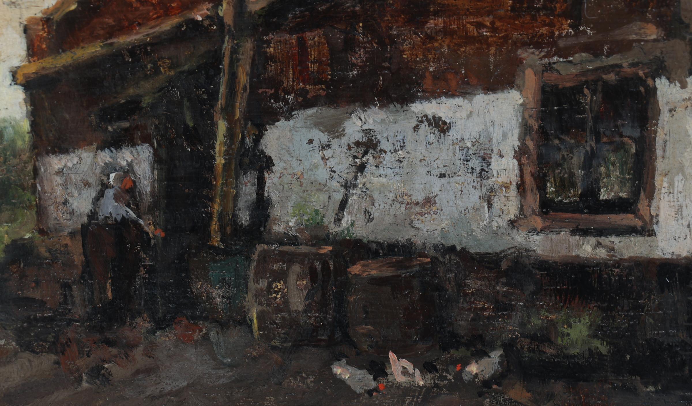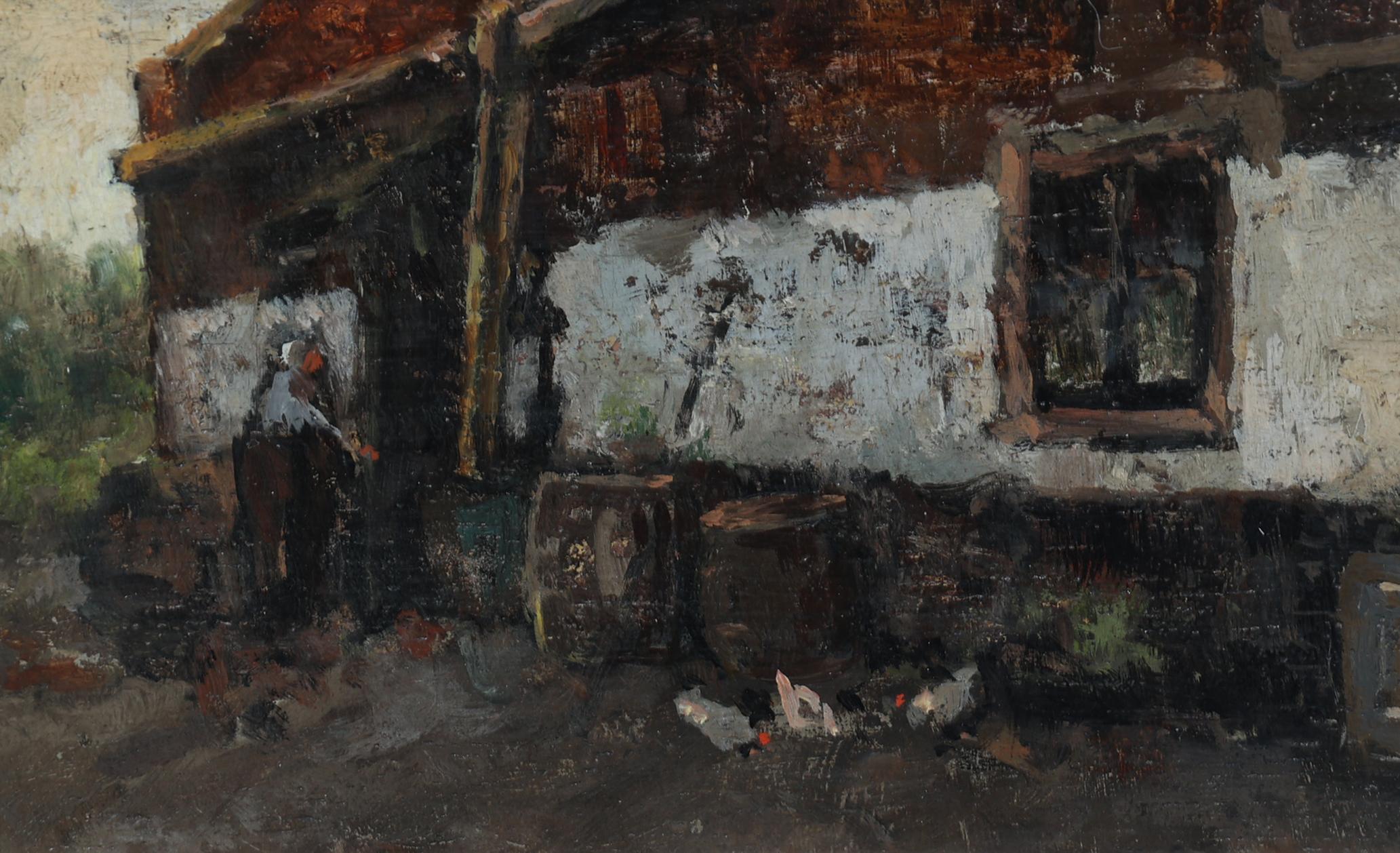Onb. meester, Boerin met kippen, olieverf op paneel, 11 x 17,5 cm.
