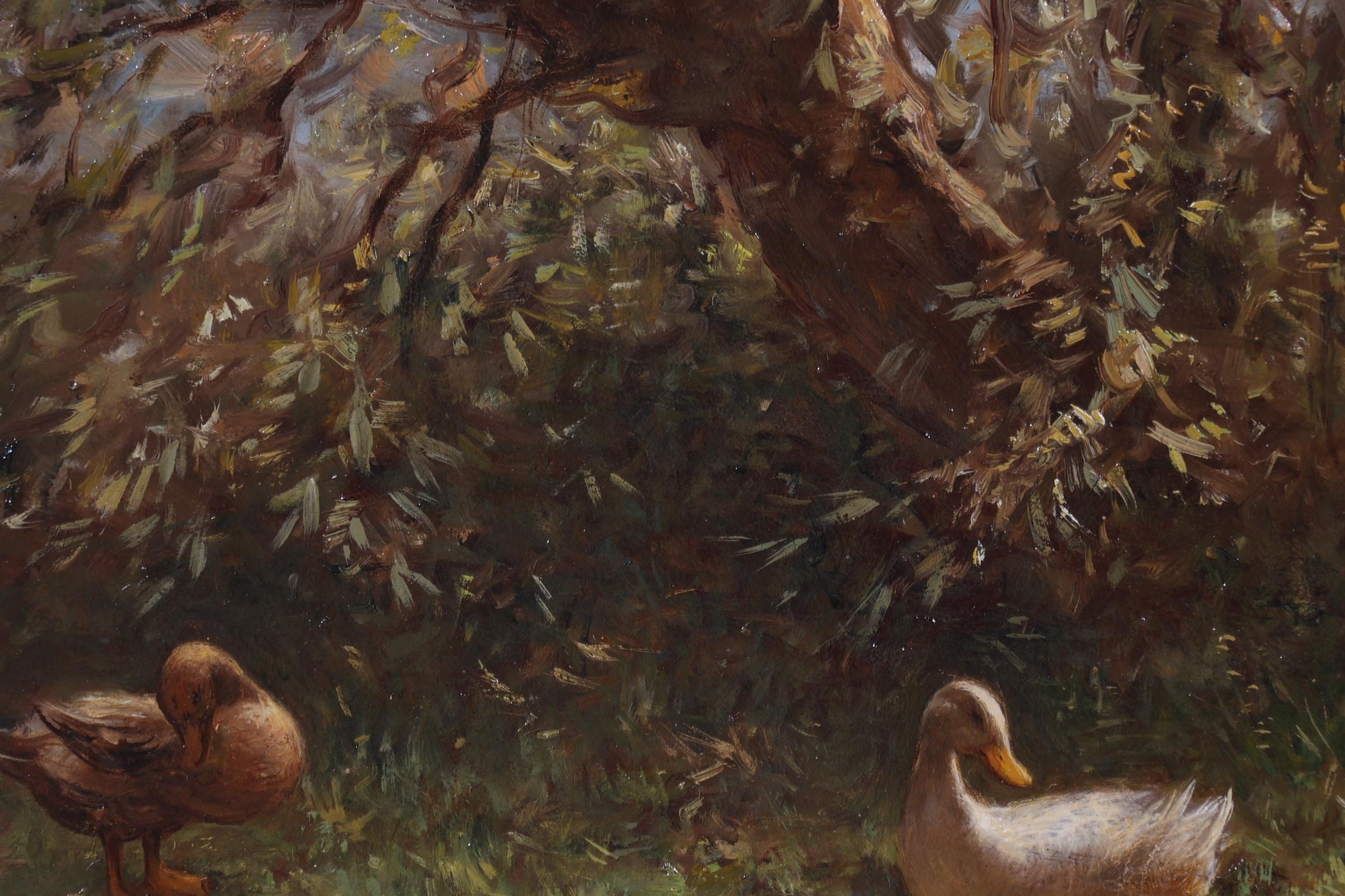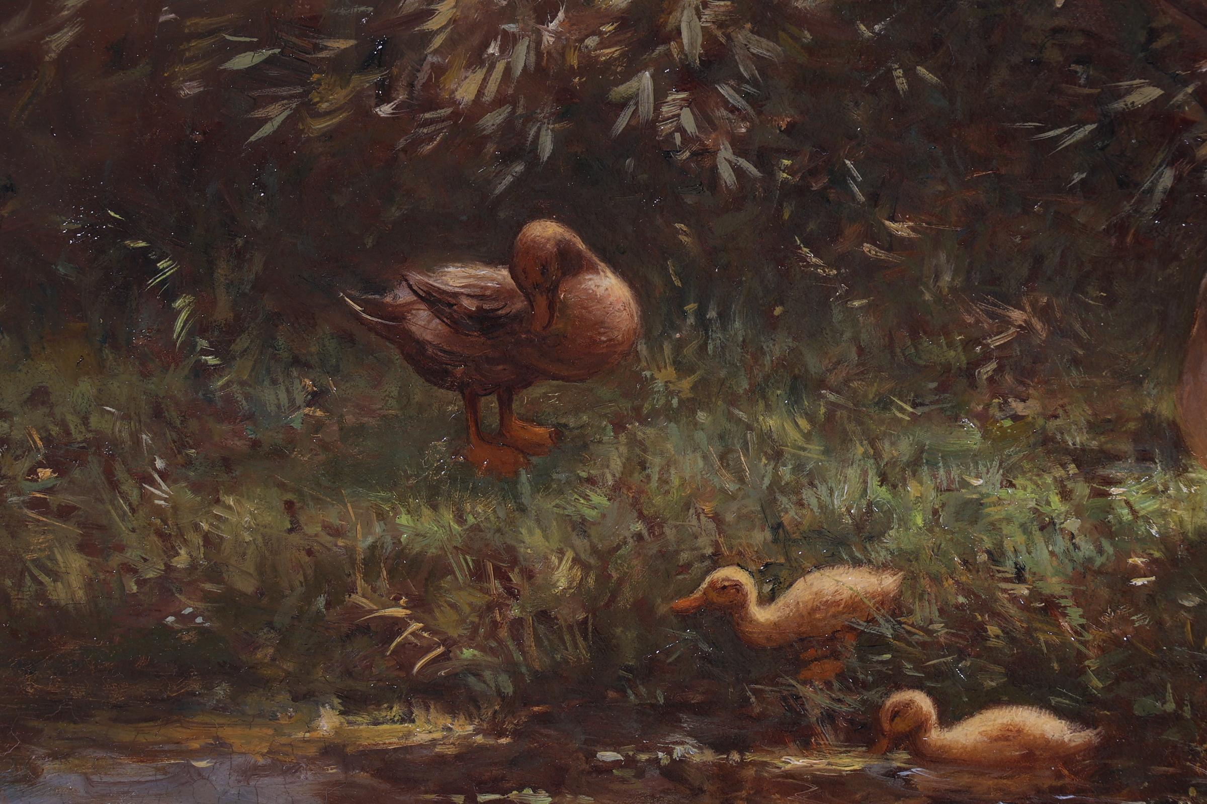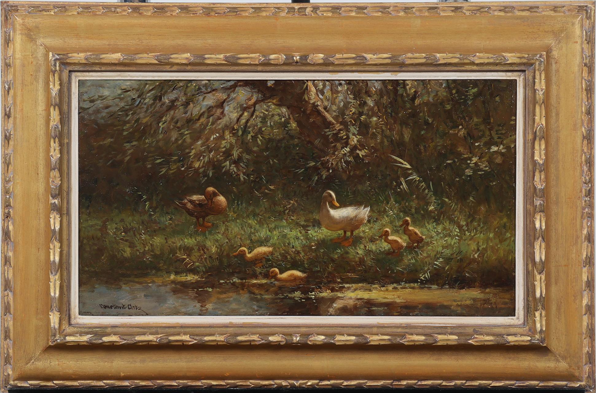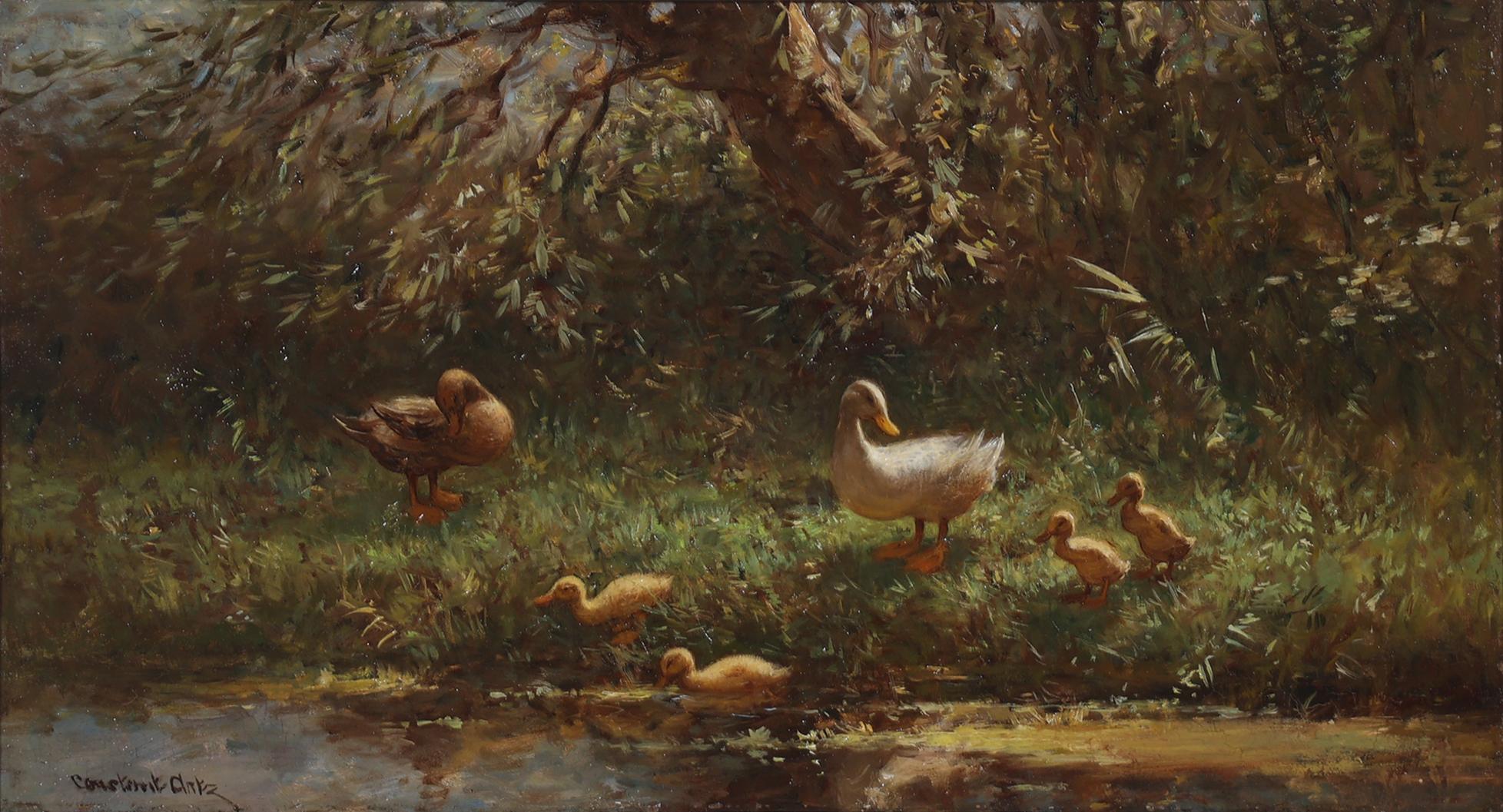 Constant David Ludovic Artz (1870-1951), Eenden aan de waterkant, olieverf op paneel, 24,5 x 44,5 cm.