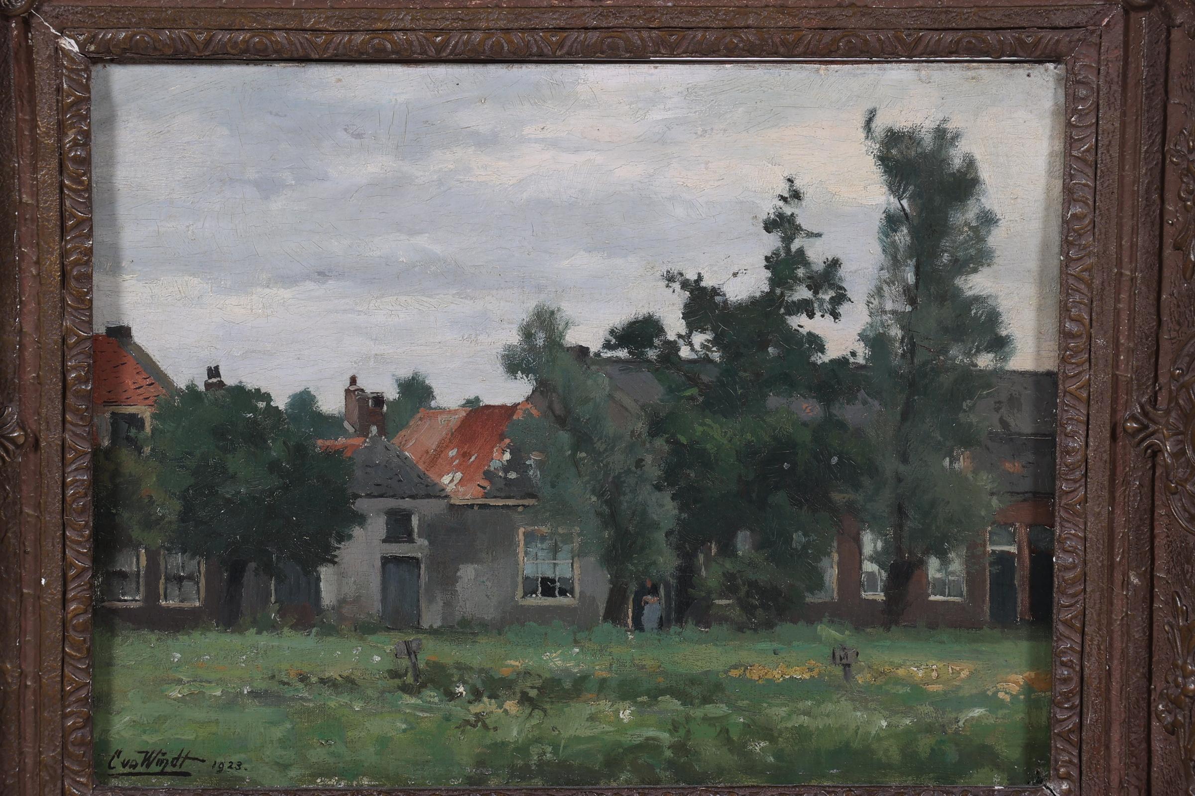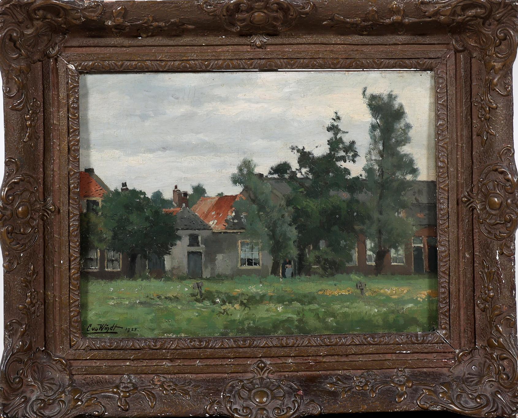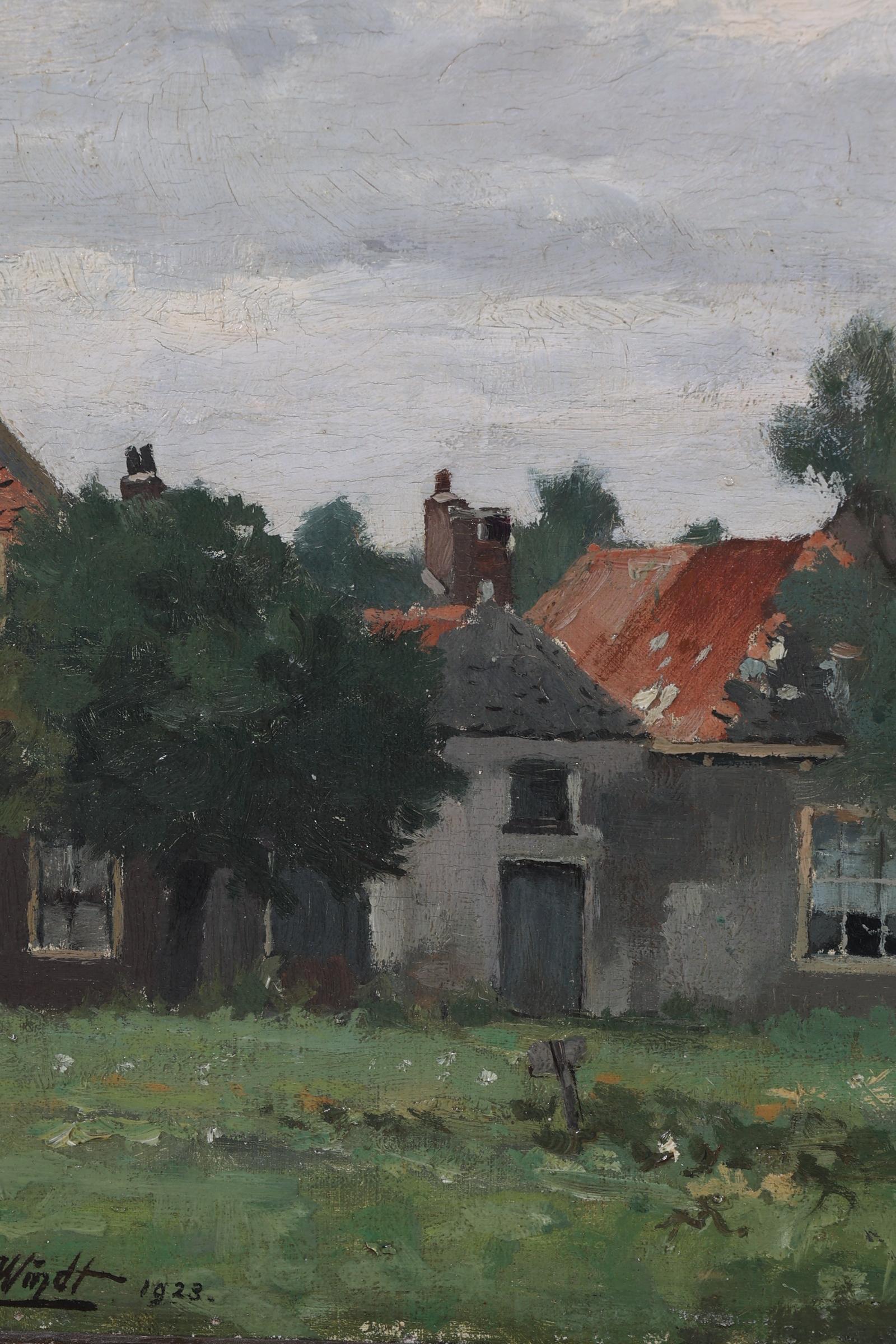 Chris van der Windt (1877-1952), Dorpsgezicht, olieverf op paneel, gedateerd 1923, 24,5 x 32 cm.
