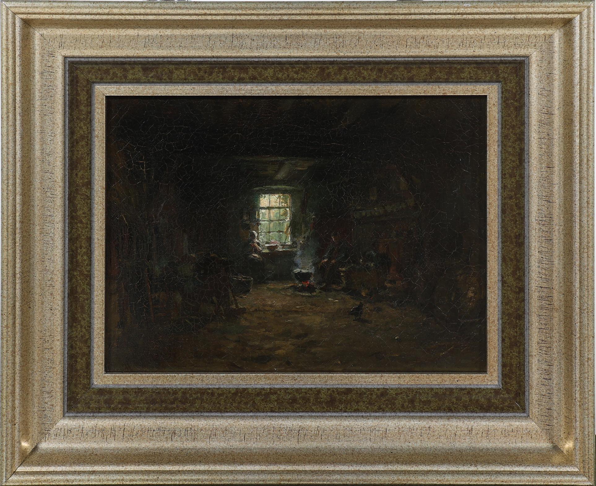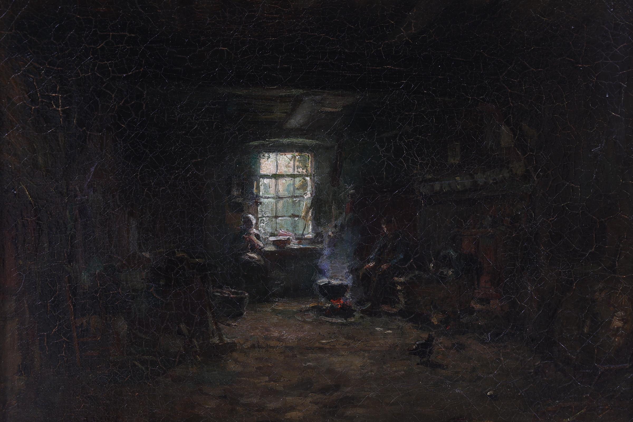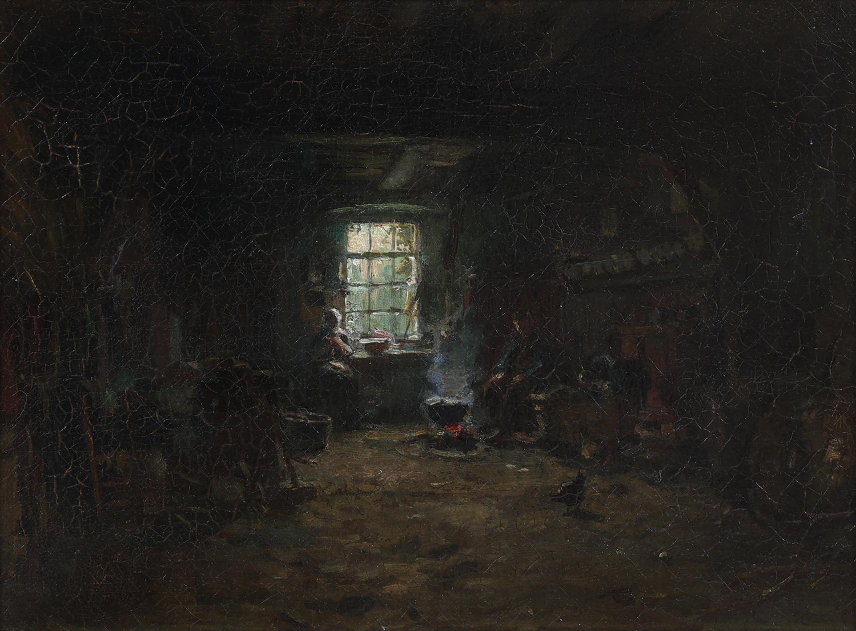 Arthur Briët (1867-1939), Boereninterieur, olieverf op doek, 19 x 25,5 cm.