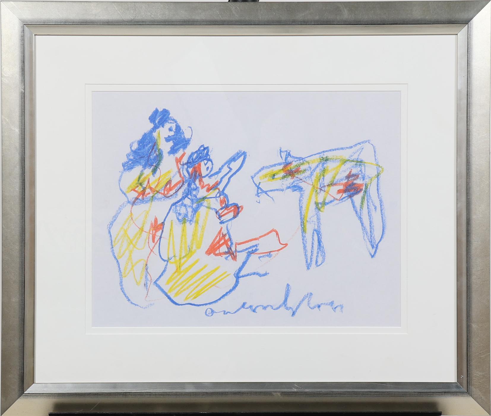 Anton Heyboer (1924-2005), Compositie met figuren, krijttekening op papier, 35 x 45,5 cm.