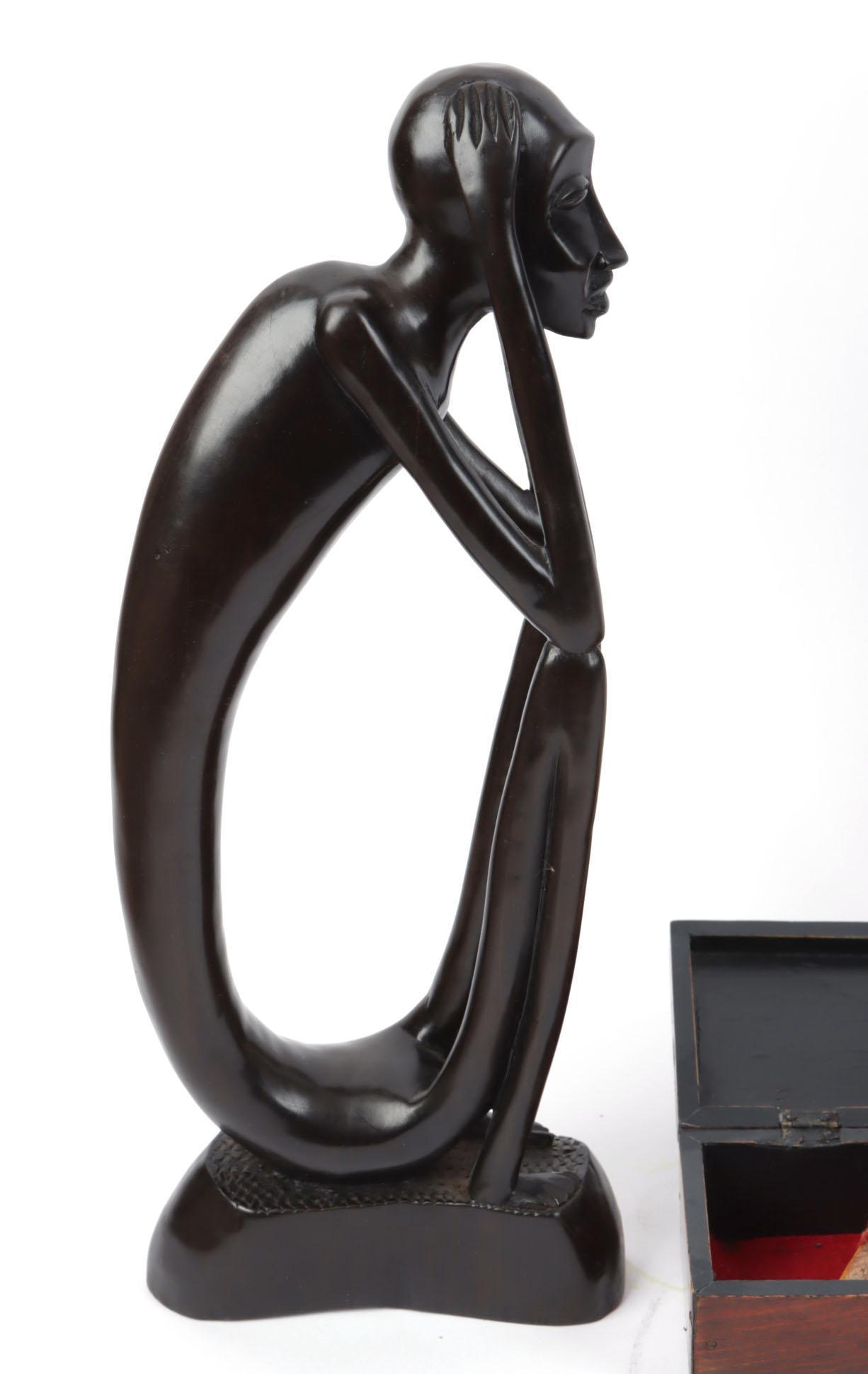 Koop van een Afrikaans houten beeld, 2 zwijnentanden in houten dekseldoos en een pleet koffieketel
