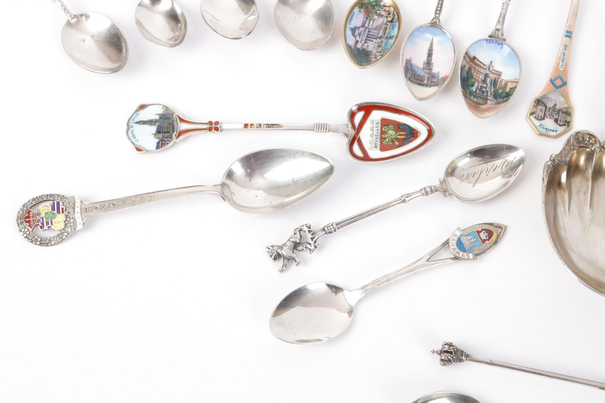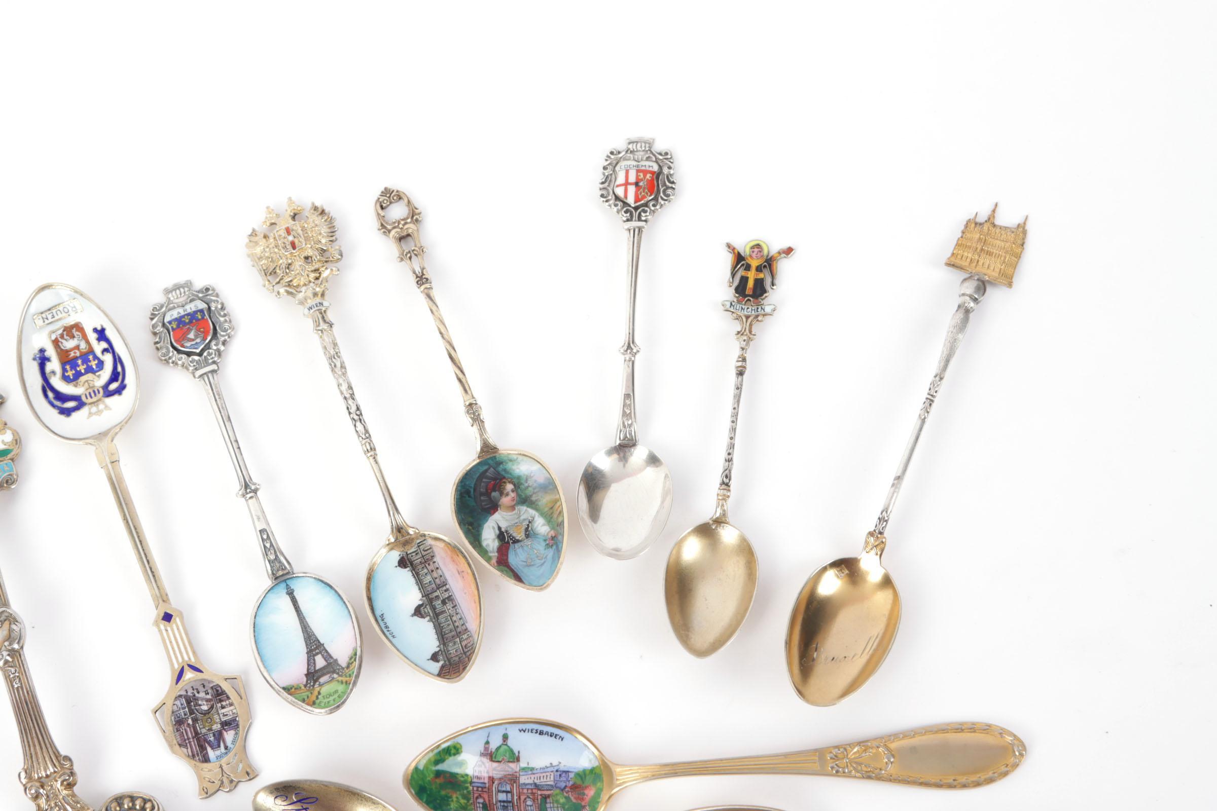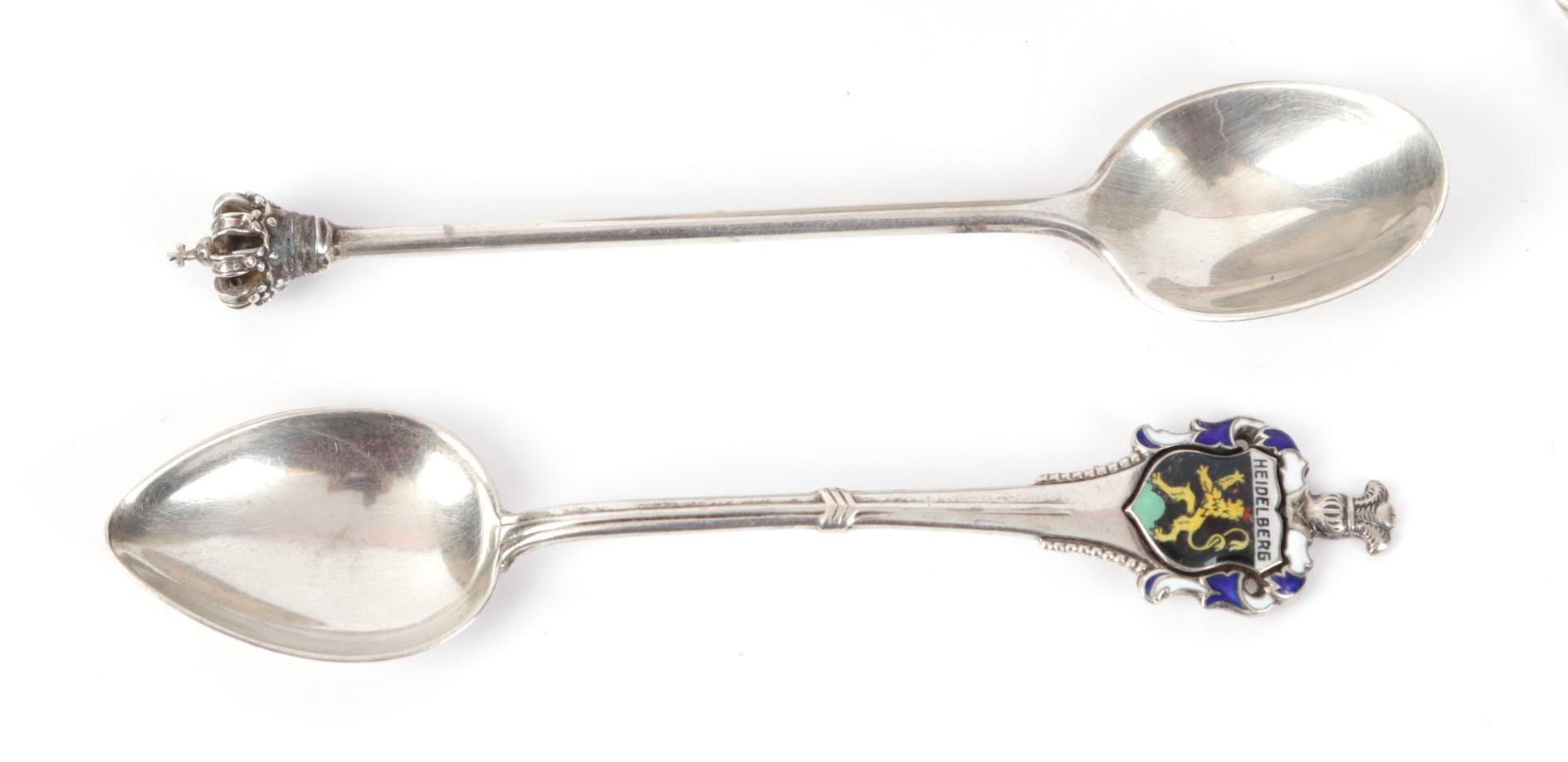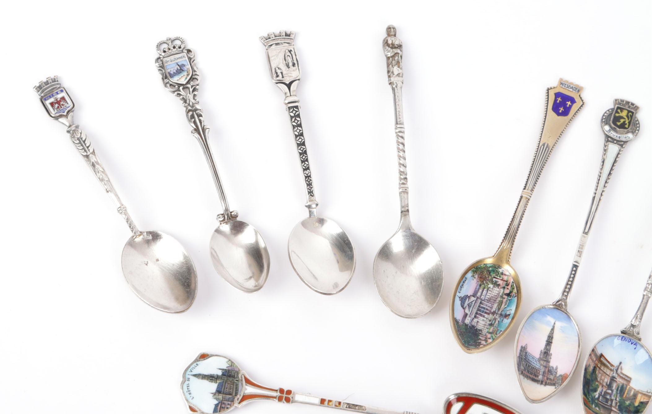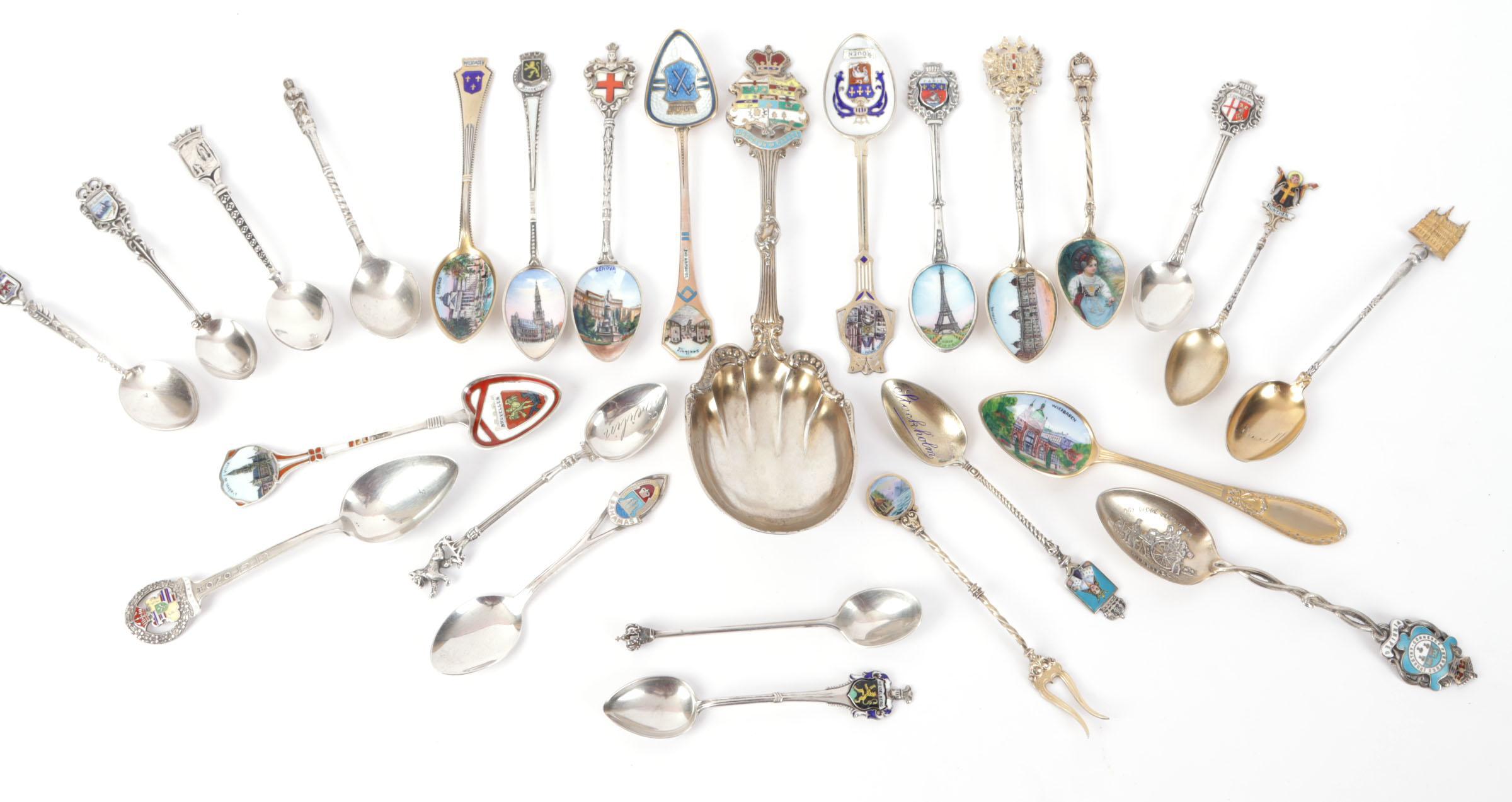 Koop diverse plated en zilveren souvenir theelepeltjes met afbeeldingen van steden en wapenschilden