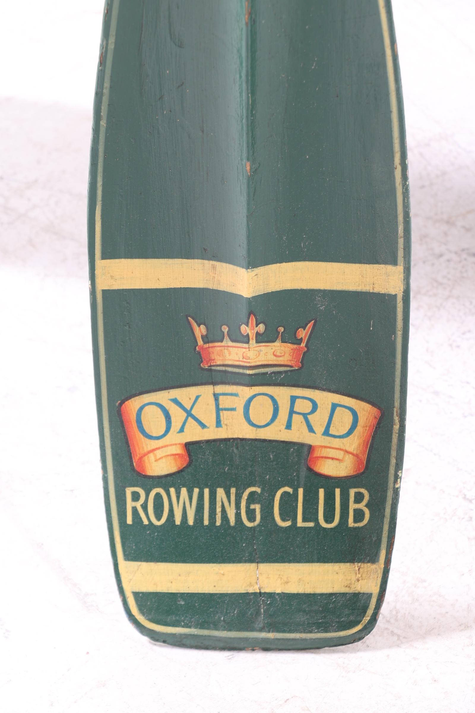 Staande kapstok vervaardigd uit 3 roeispanen, Oxford rowing club, h.202 cm.