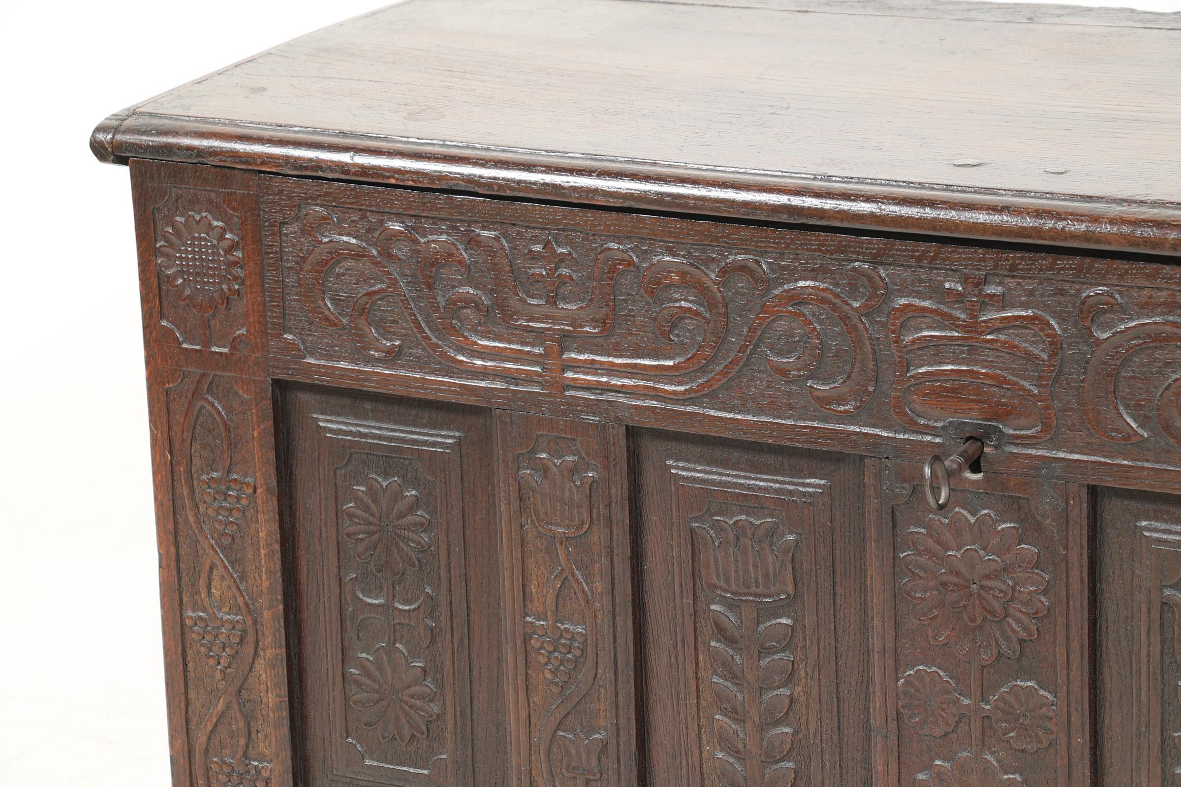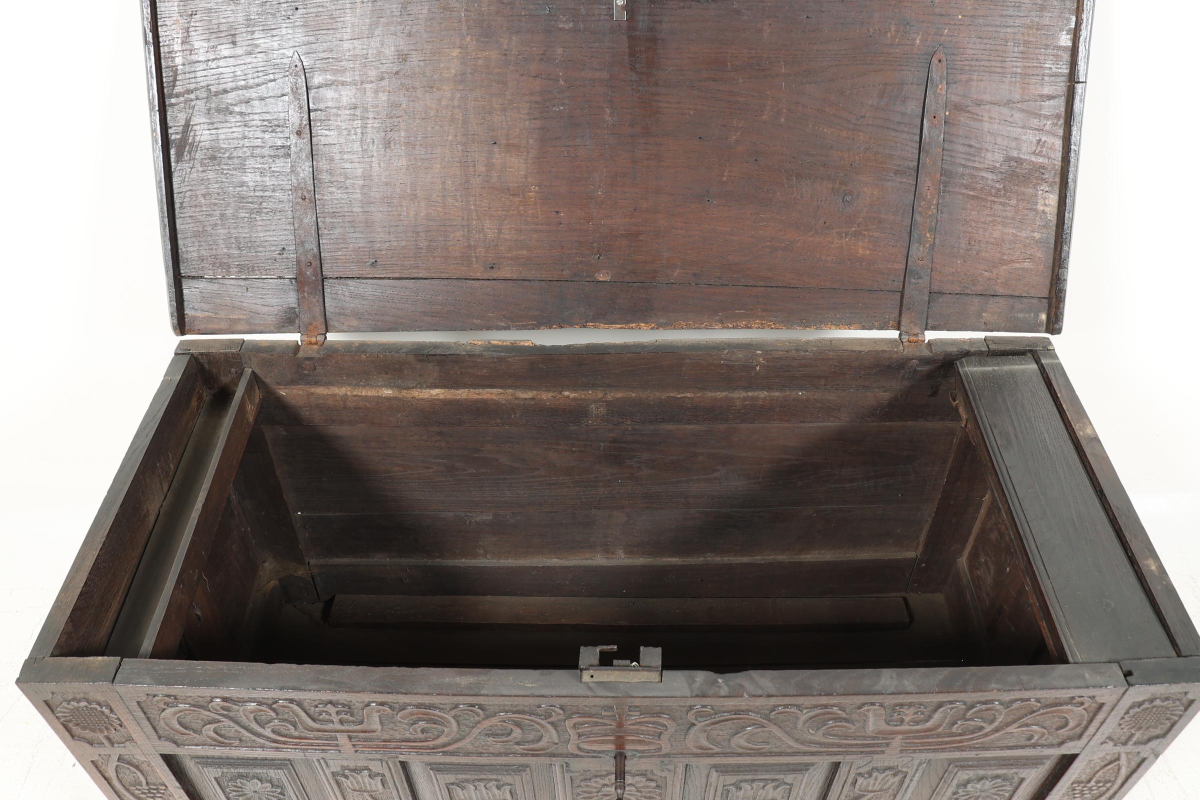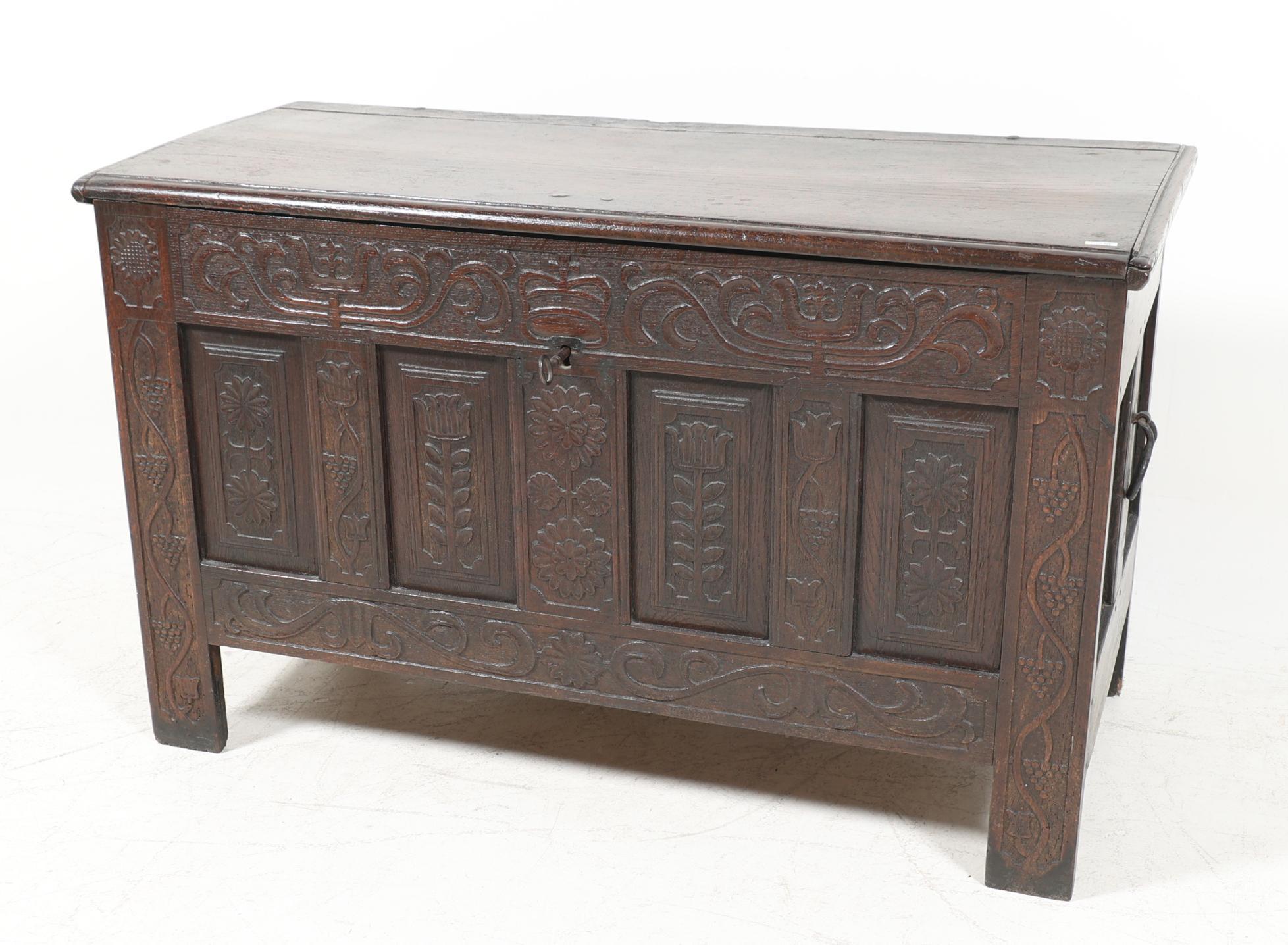 Antieke eikenhouten panelenkist, h.80 x b.130 x d.57 cm.
