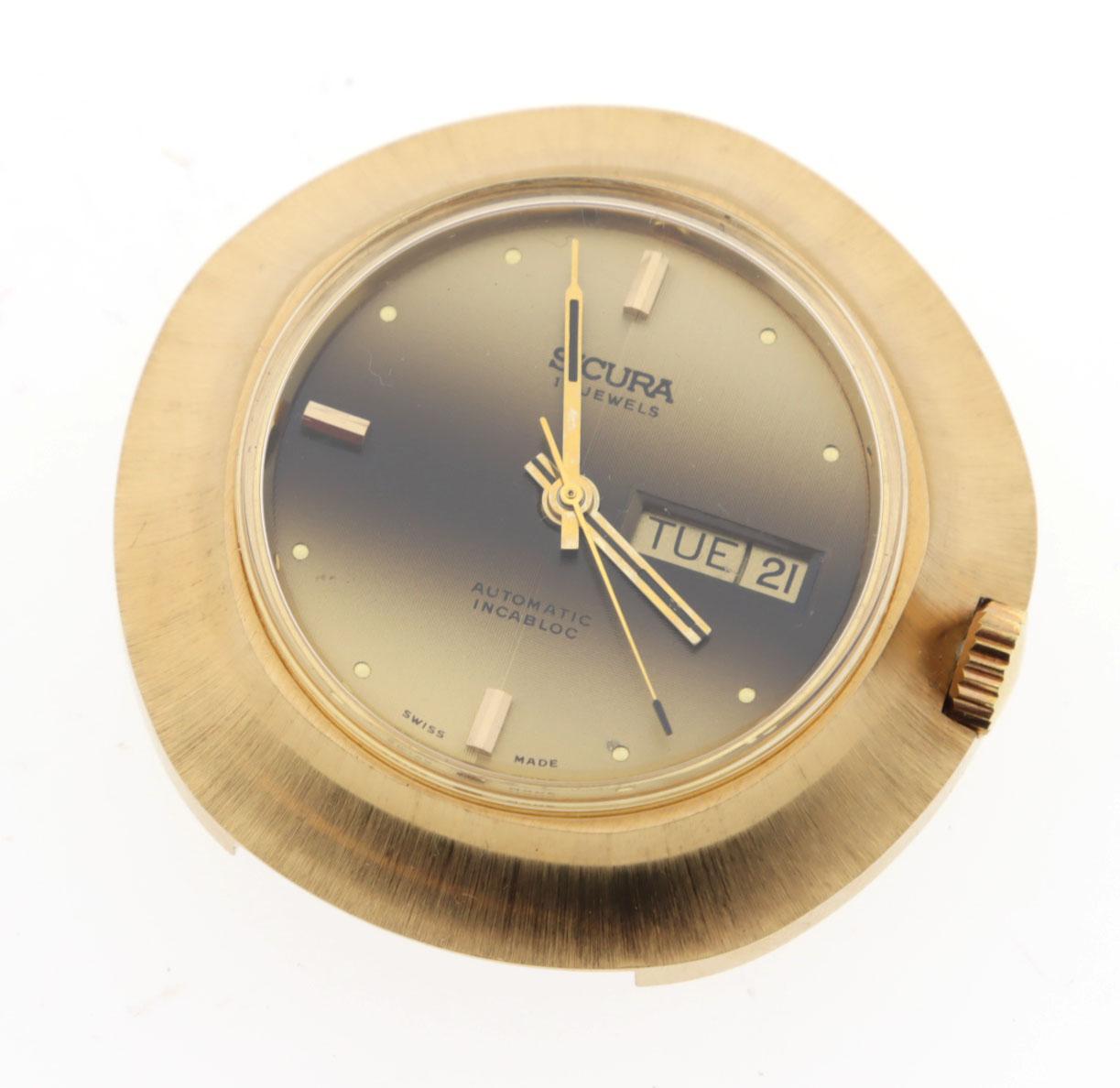 Sicura Zwitsers polshorloge, day-date, 17 jewels, automatisch, jaren 70