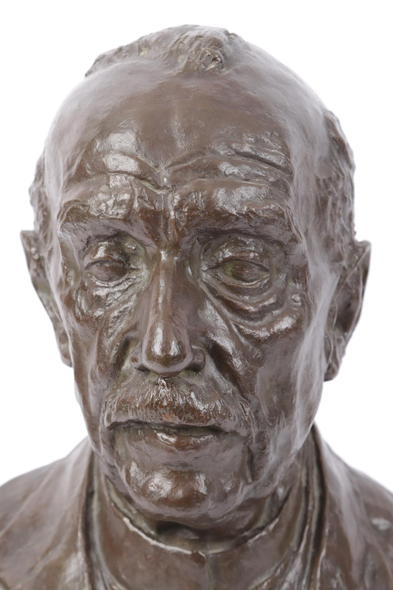 Francina Petronella Josphina (Nel) Bakema (1902-1992), bronzen buste van een heer, gesigneerd B. Bakema l.o., 46 x 23 x 27 cm.