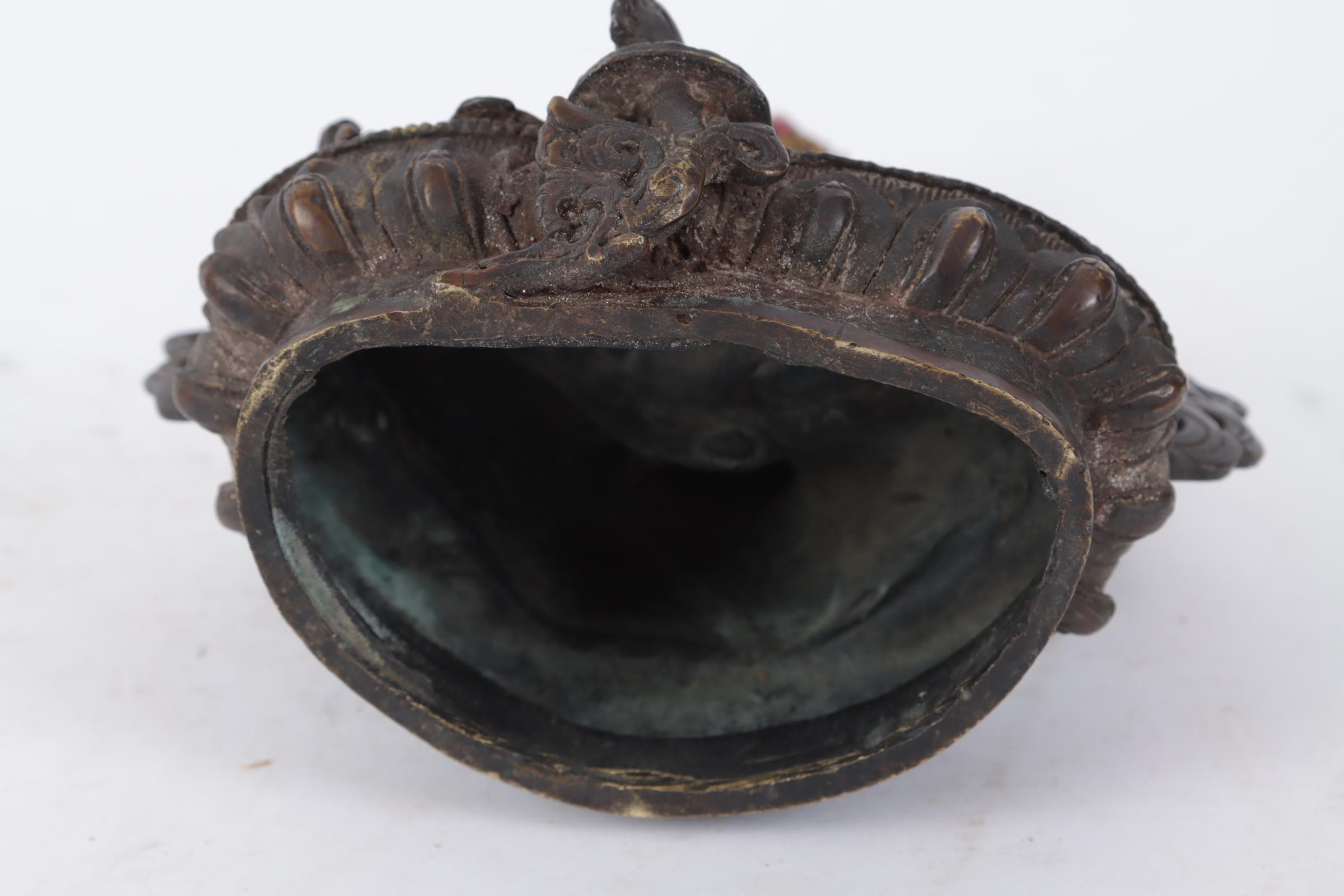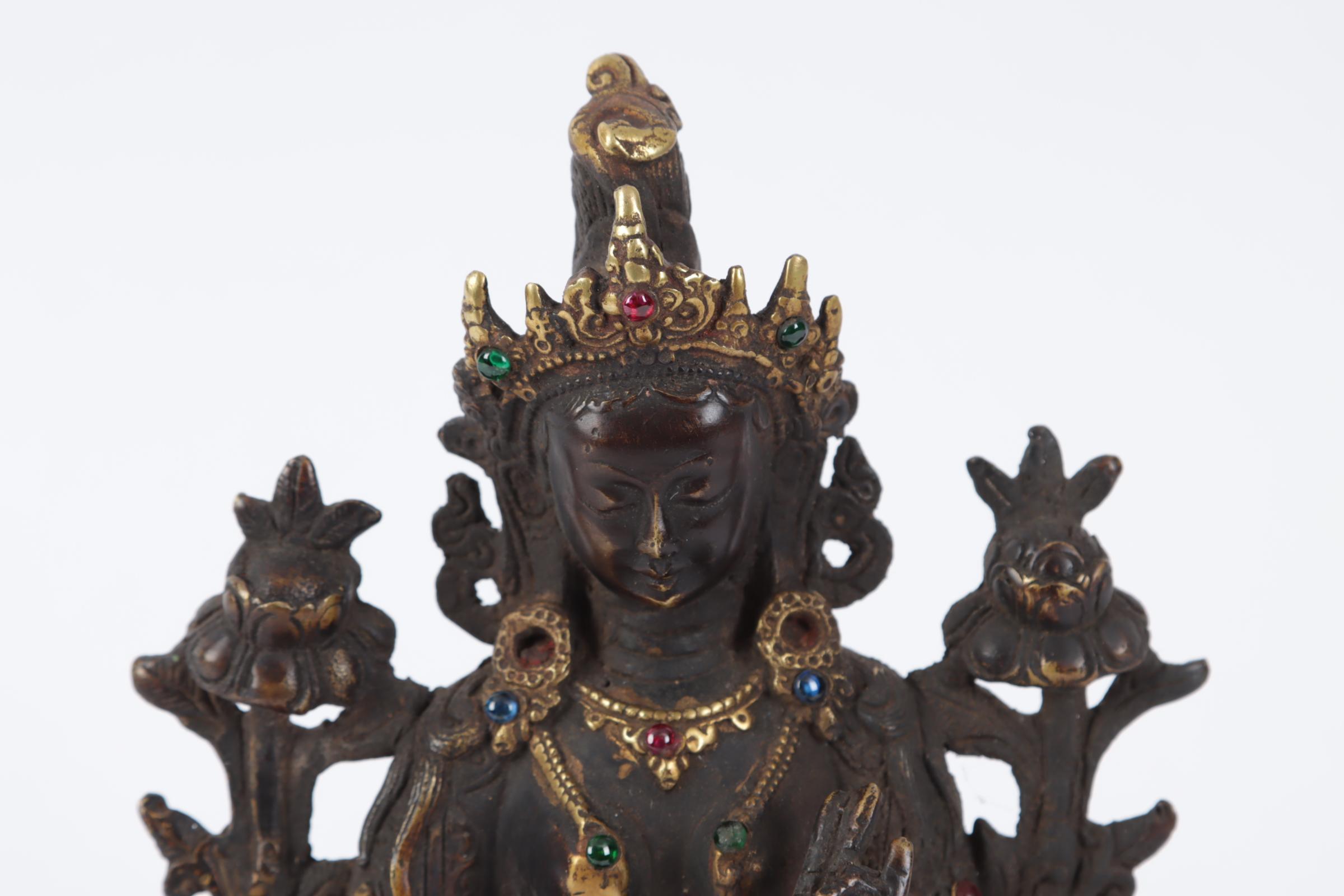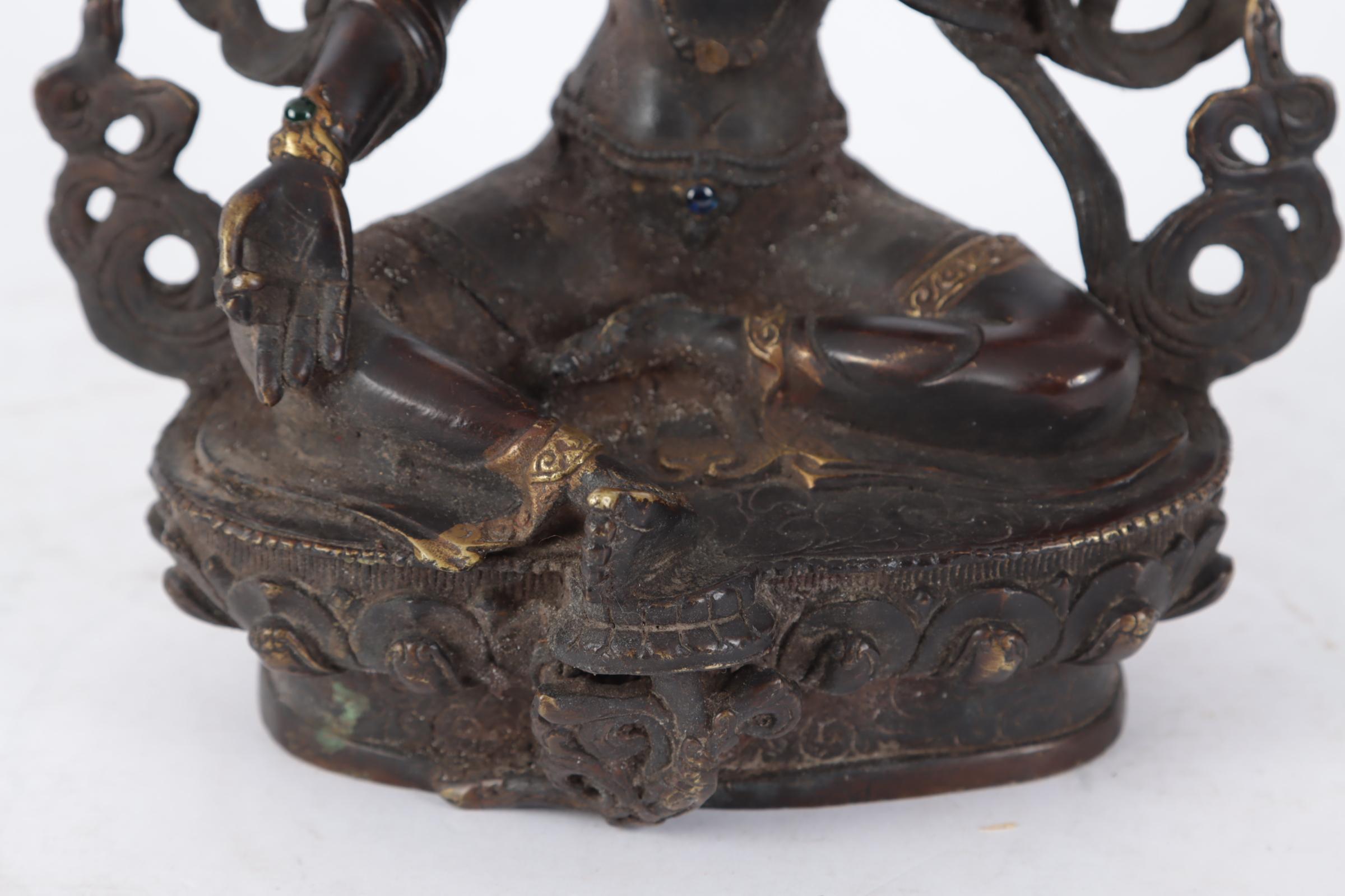Bronzen met steentjes ingelegd Boeddha beeld, h.21 cm.