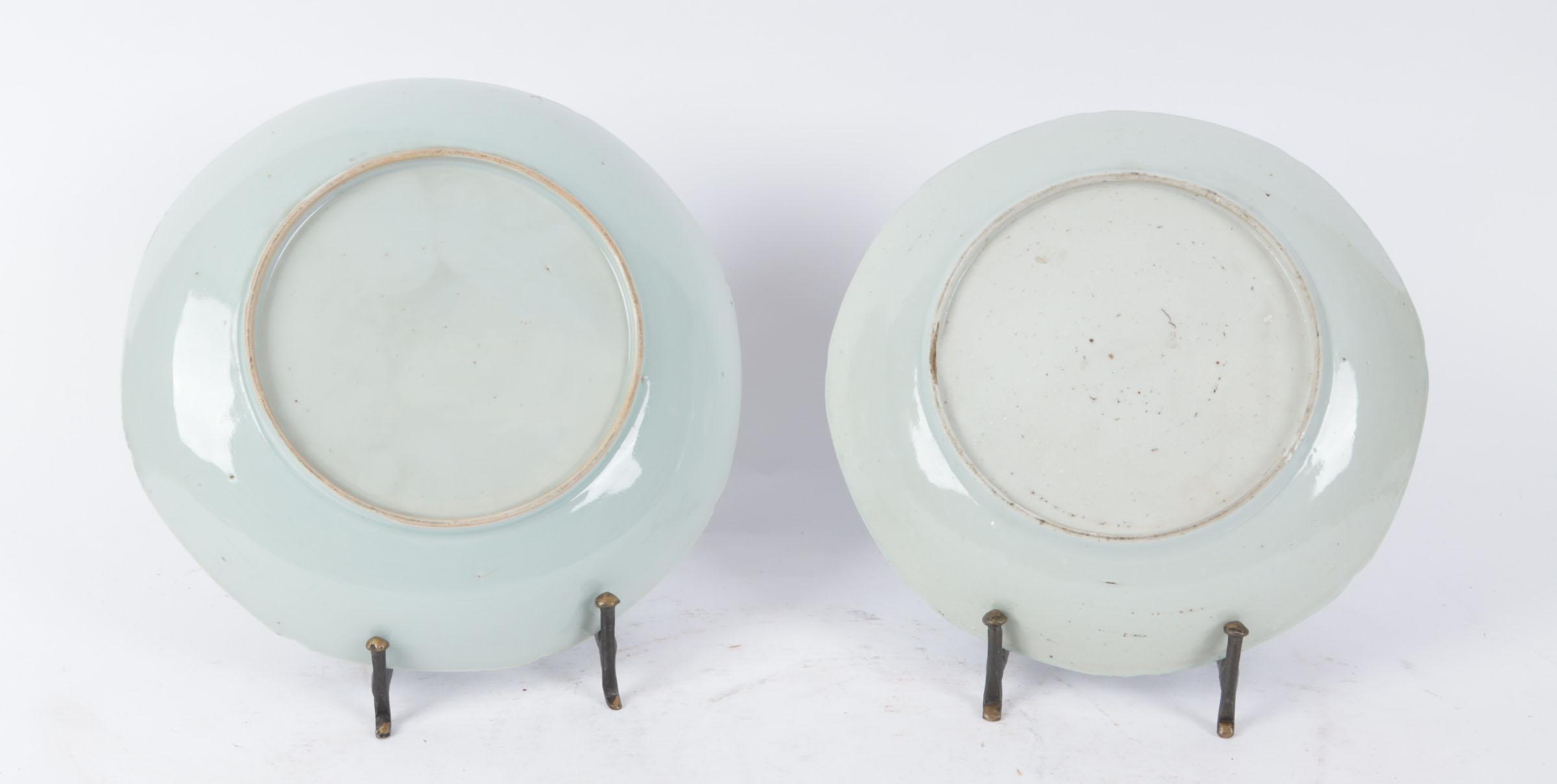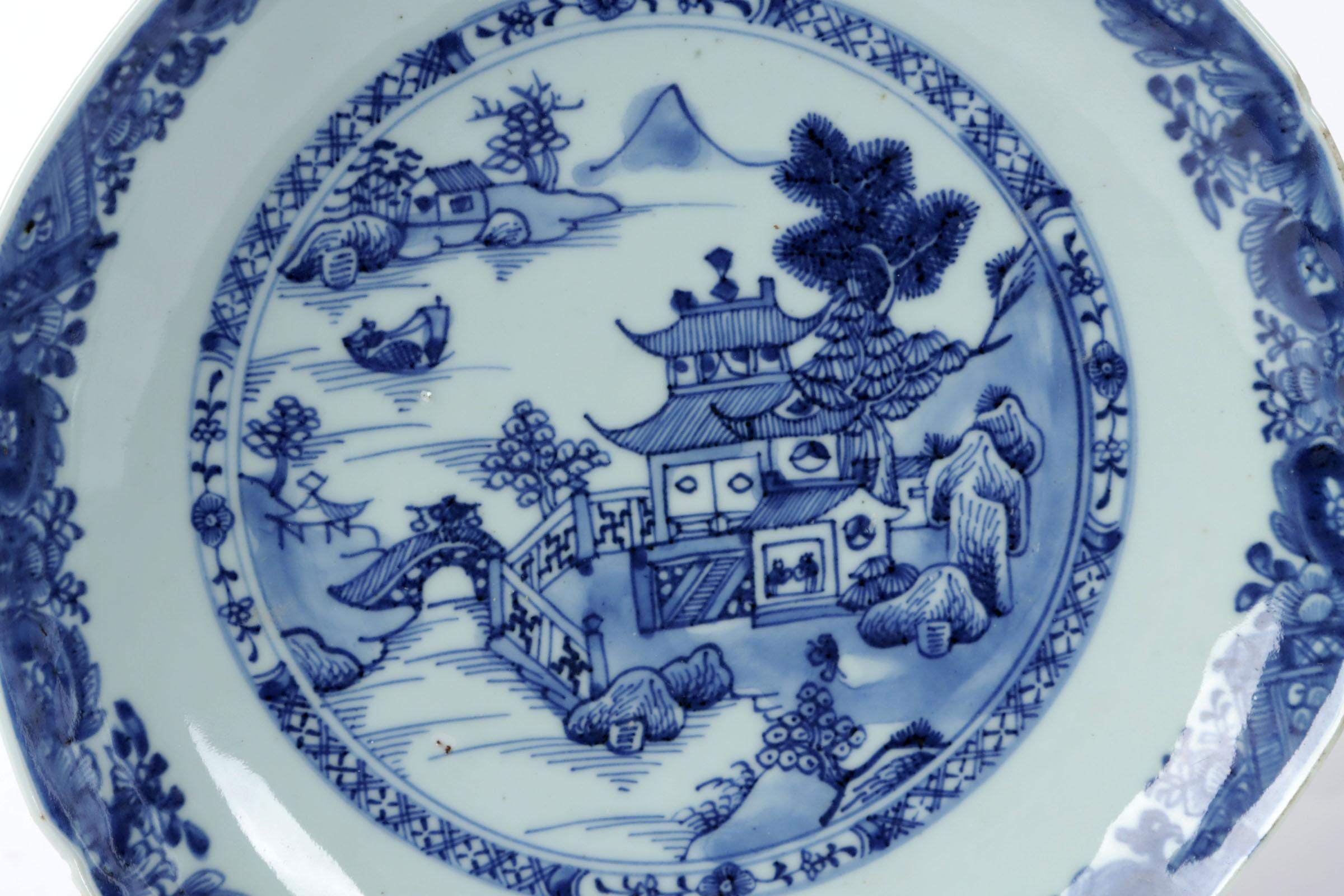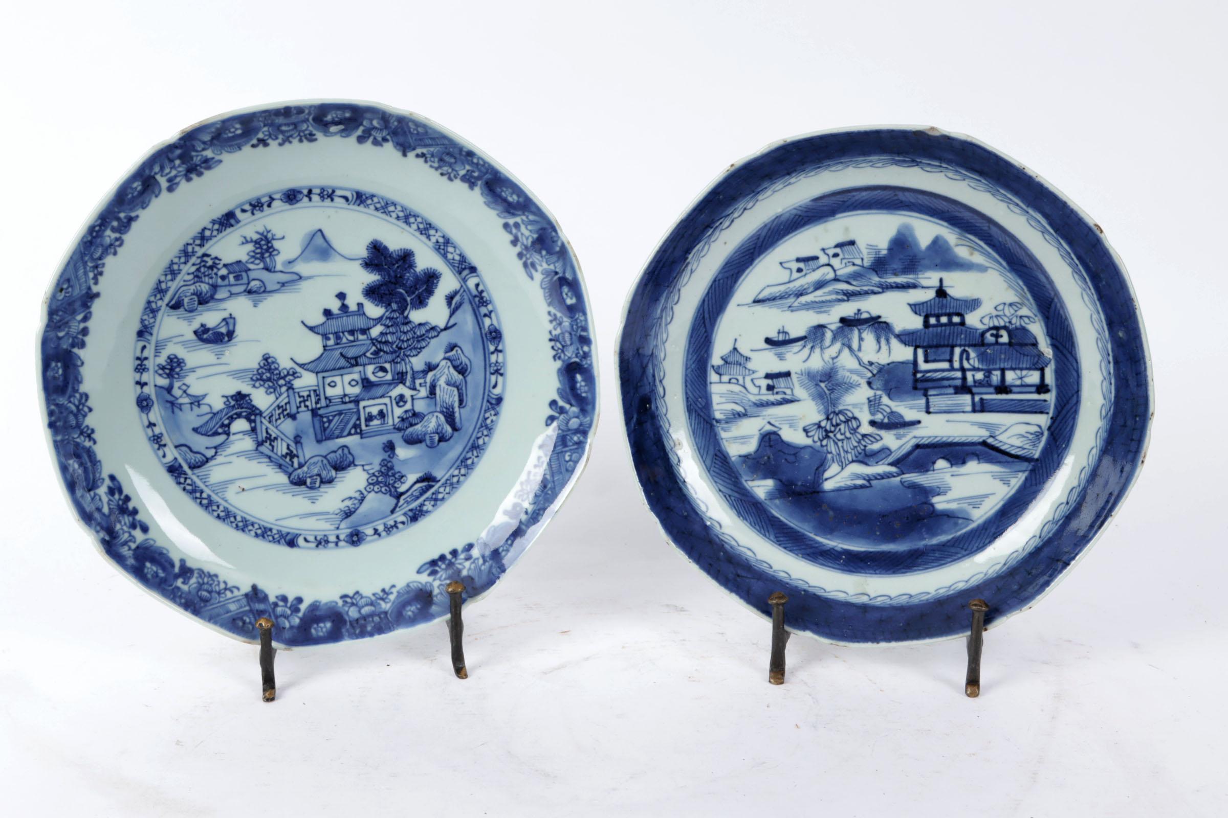 2 diverse Blauw/wit 8-kantige porseleinen borden, diam.24,5 en 25,5 cm.