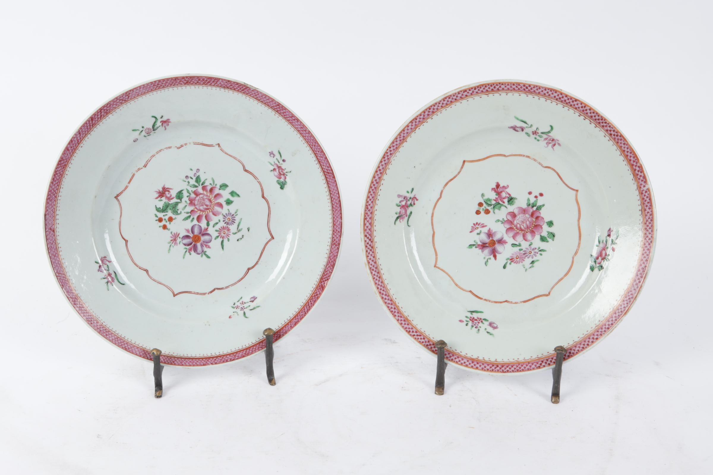 Stel Lowestoft porseleinen borden, diam.23 cm.
