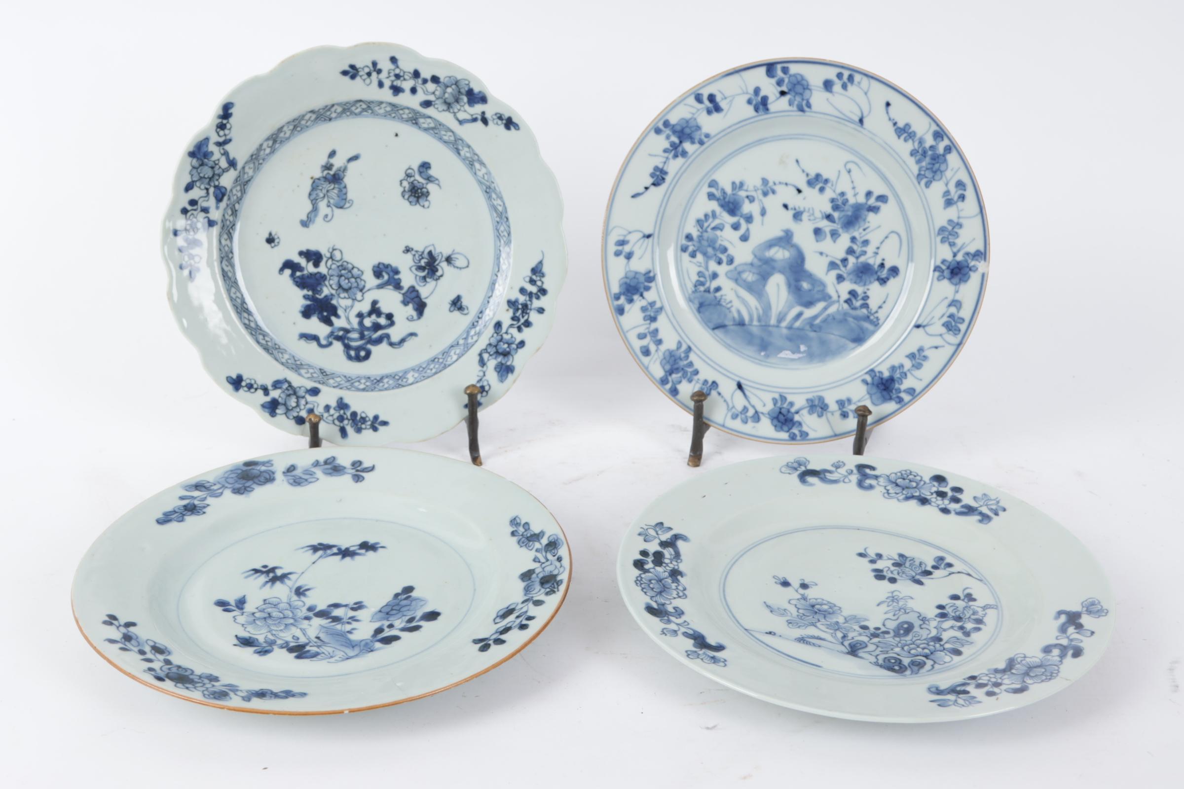 4 Diverse blauw/wit Chinees porseleinen borden, diam.22 en 23 cm.