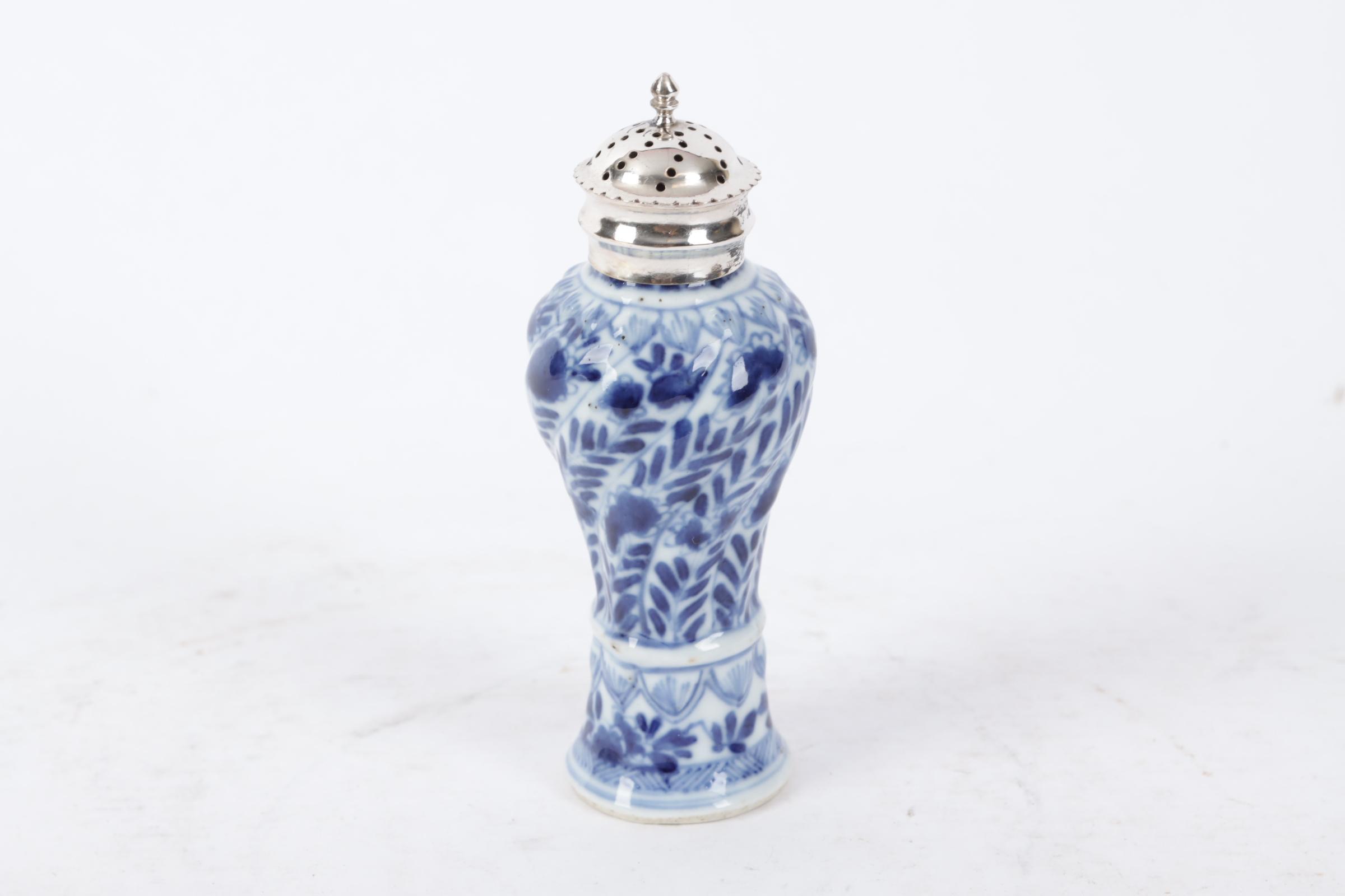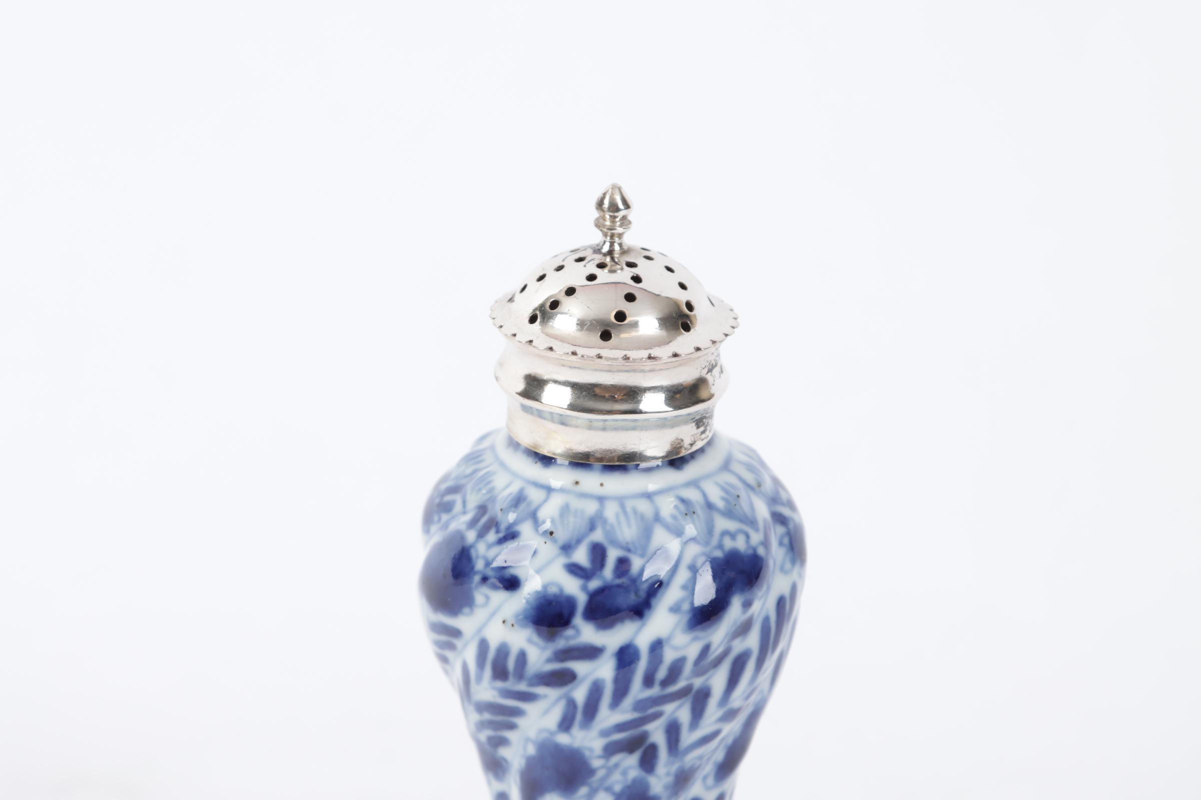 Blauw/wit Chinees porseleinen strooibus met zilveren dop