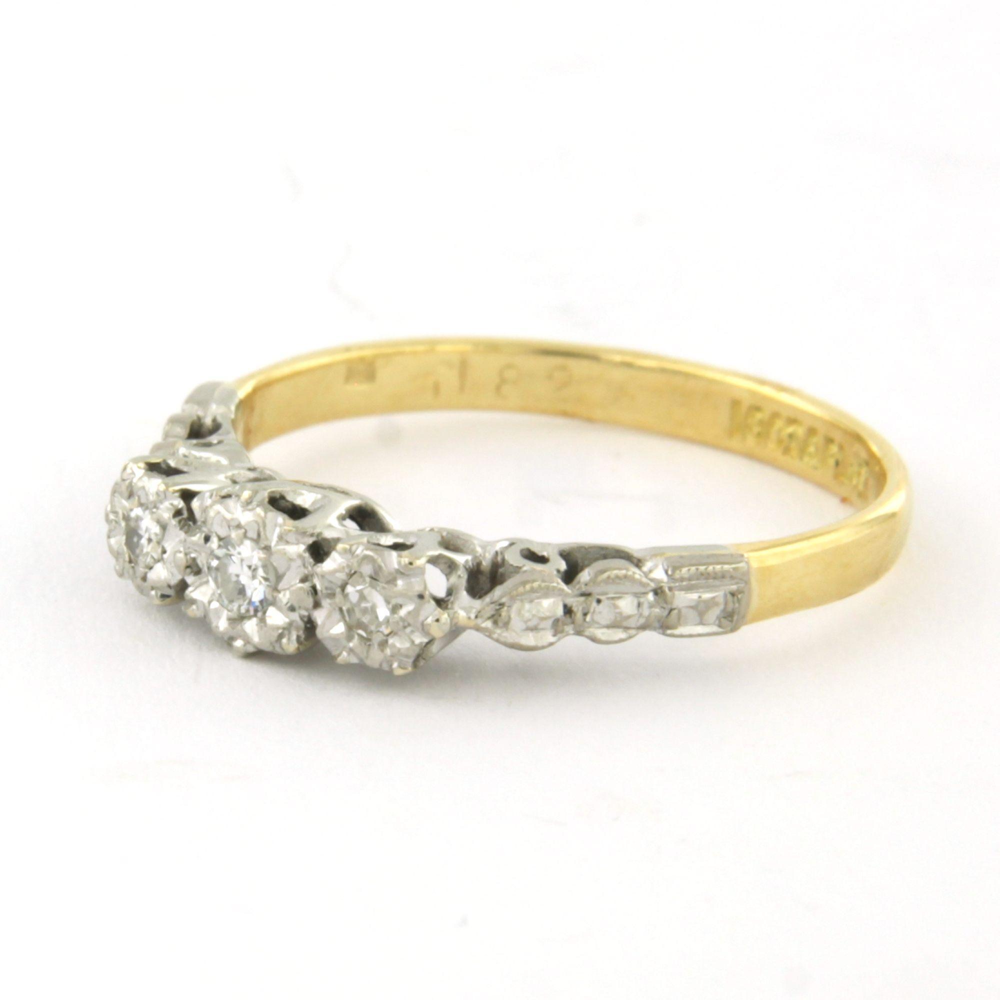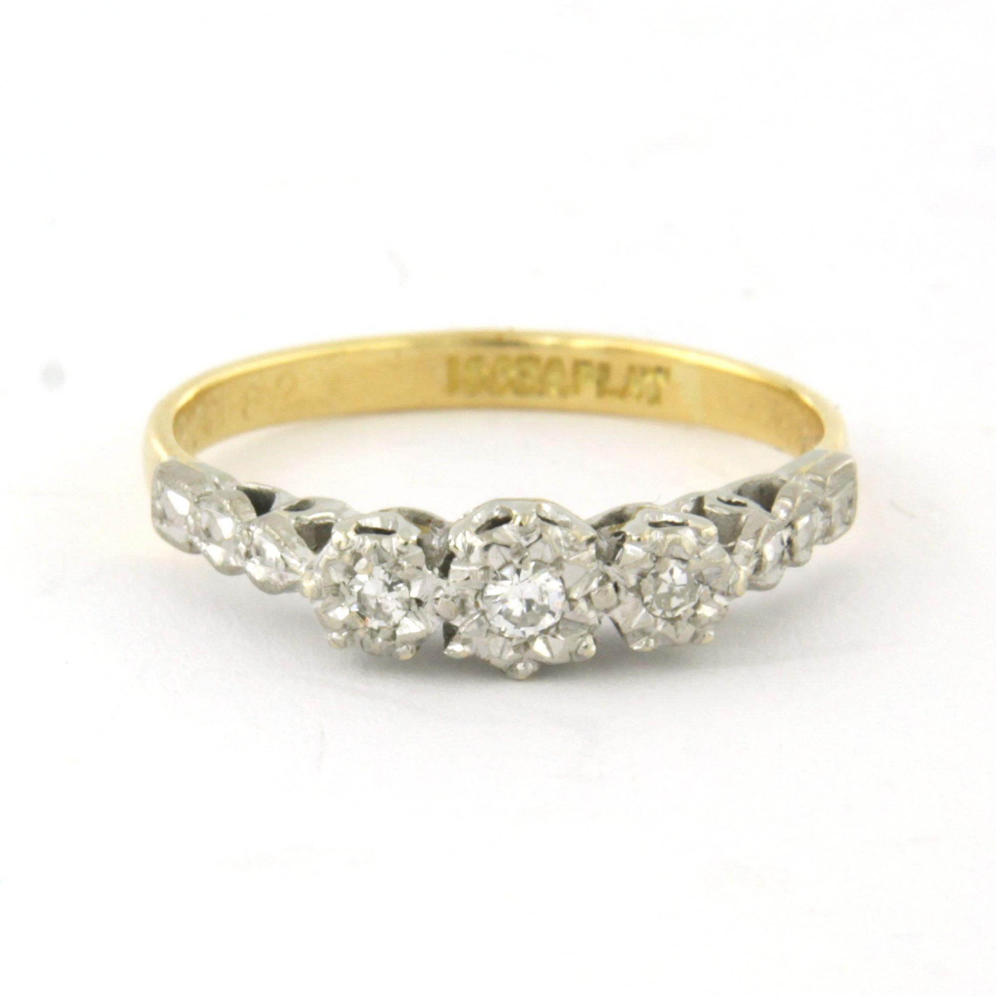 18 Kt. goud met platina ring bezet met single cut geslepen diamanten totaal 0.05ct - ringmaat 16.5(52)