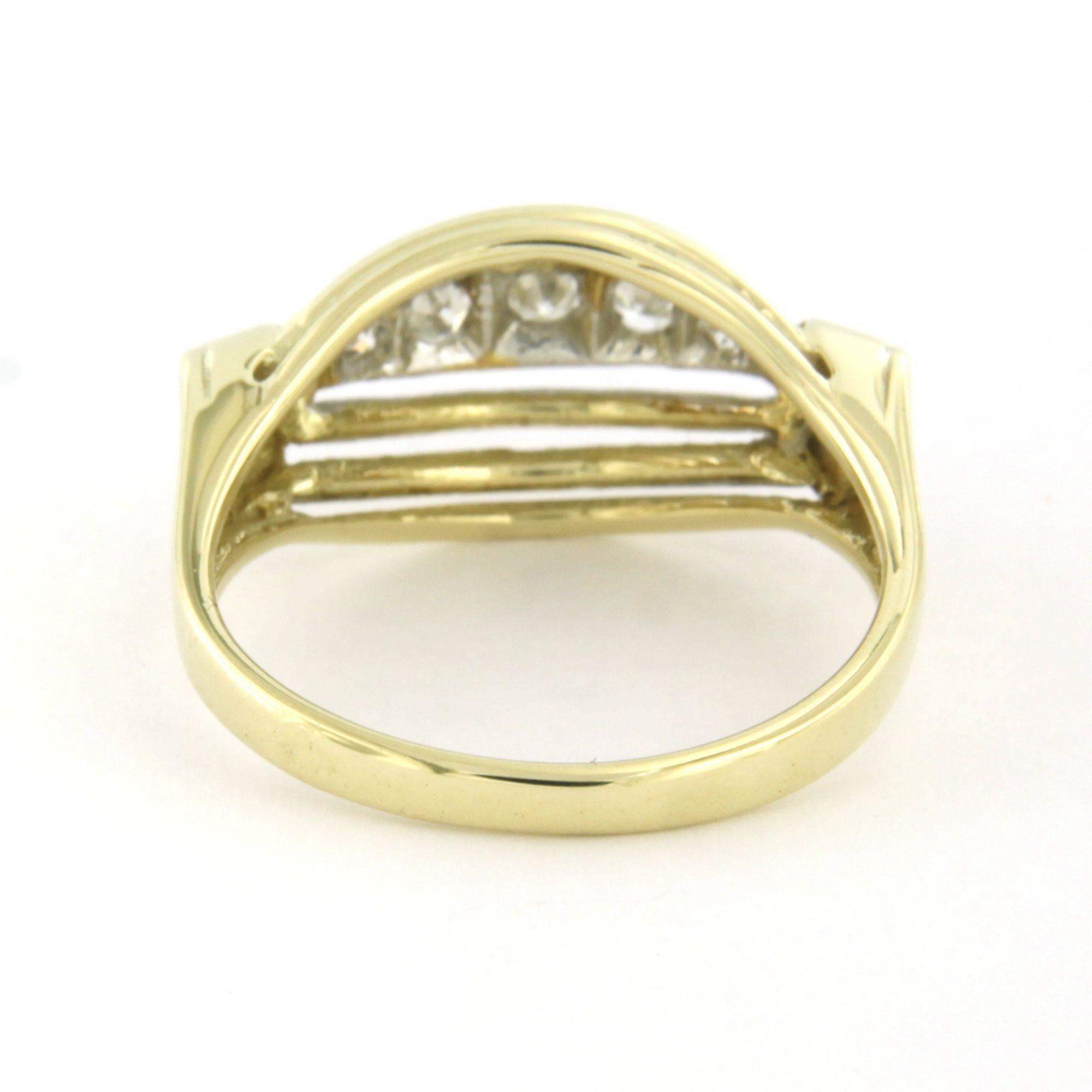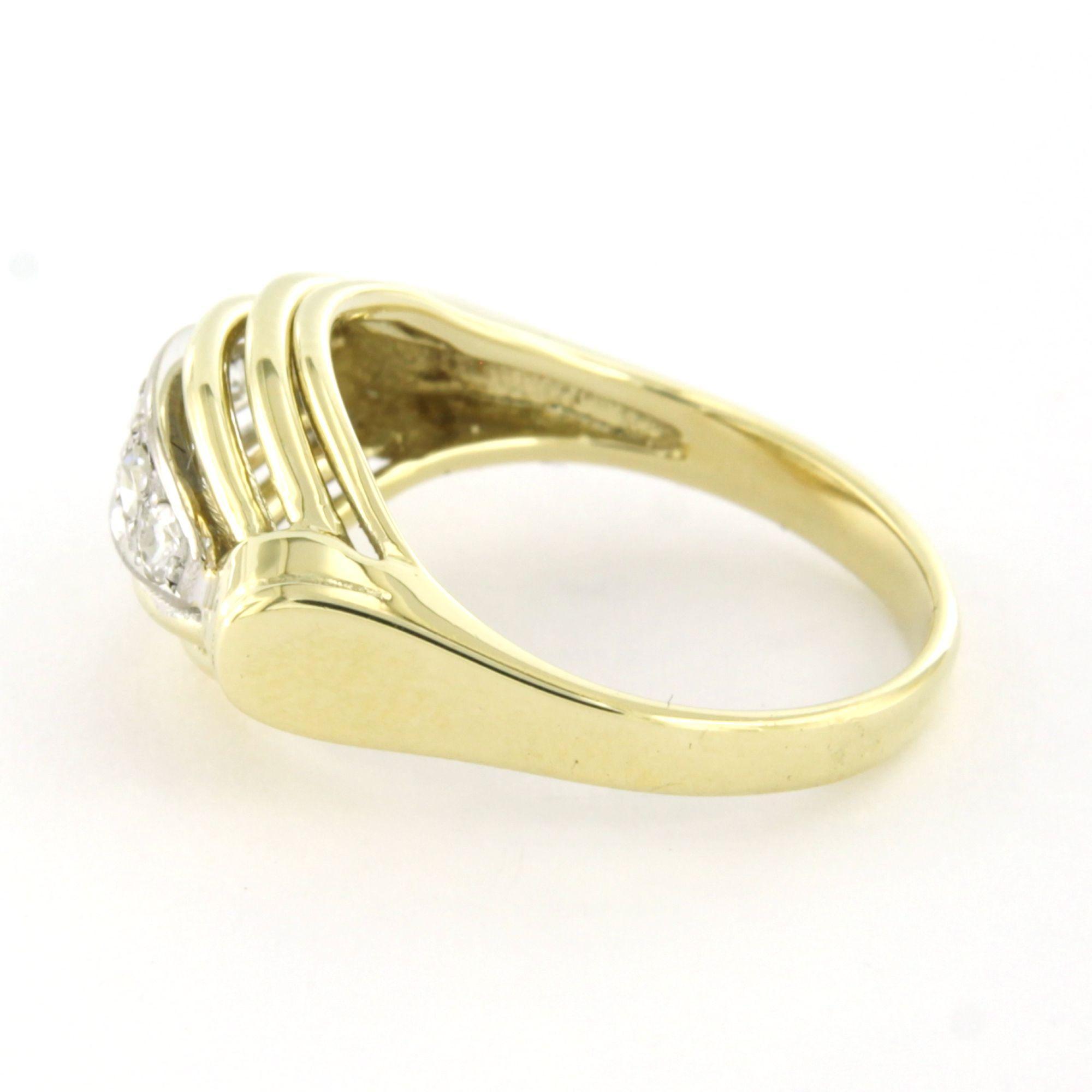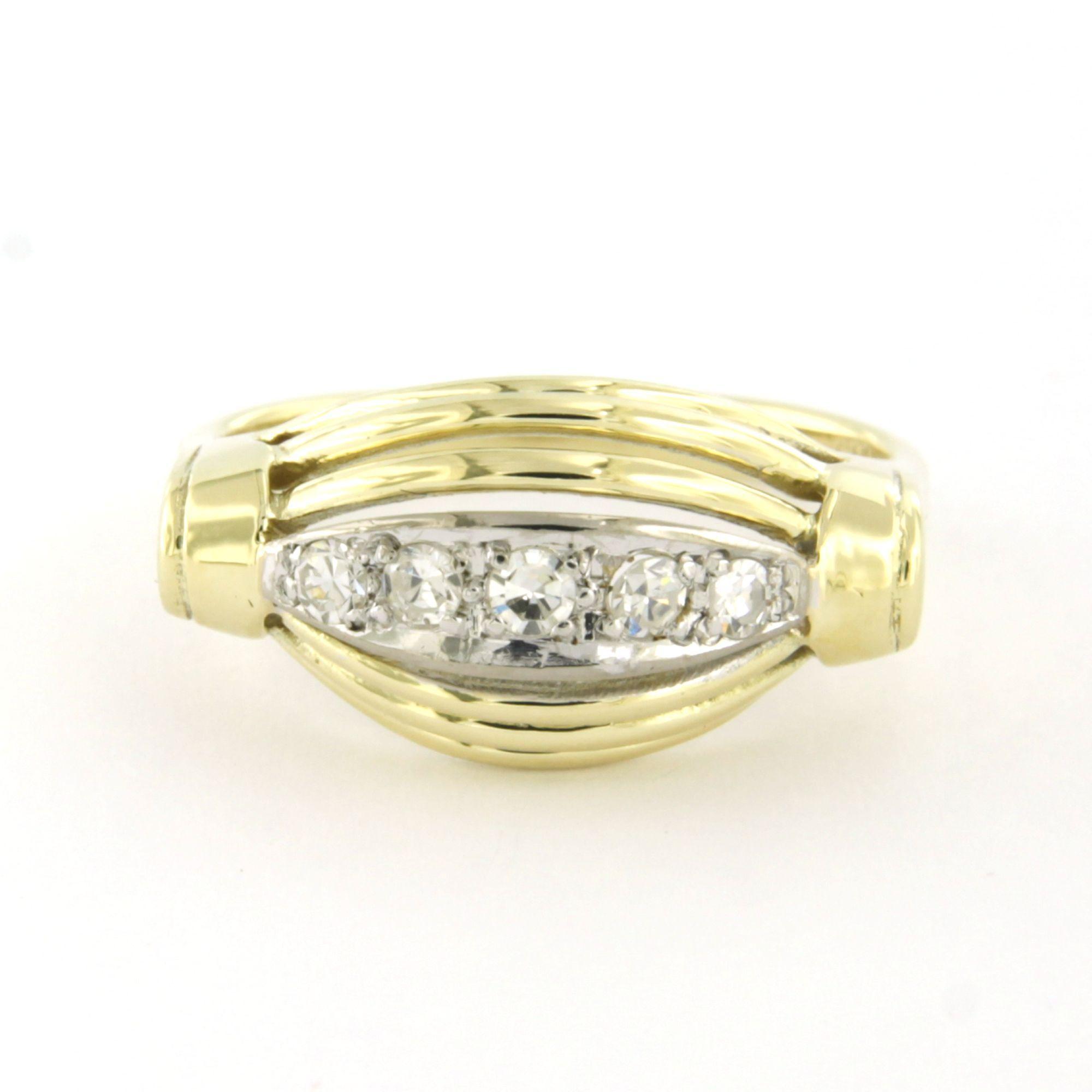 14 Kt. bicolour gouden ring bezet met single cut geslepen diamanten totaal 0.15ct - ringmaat 16.25(51)