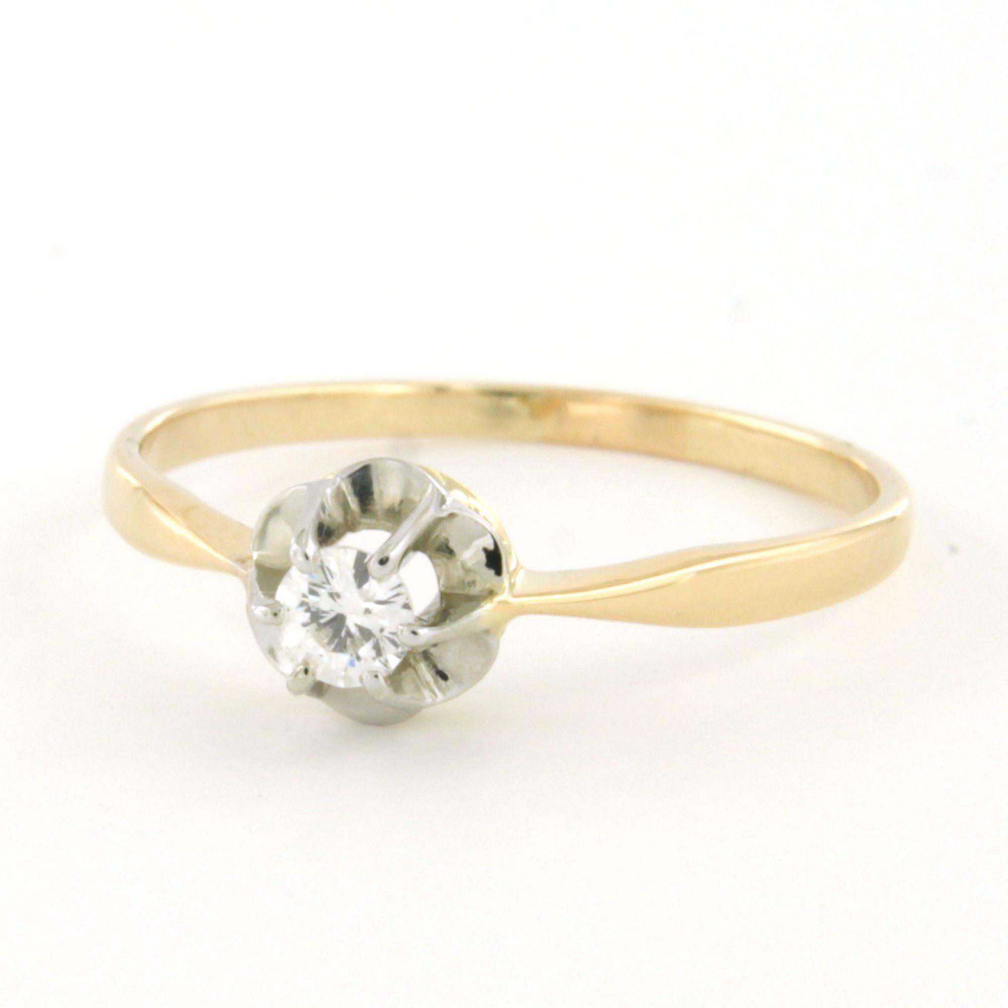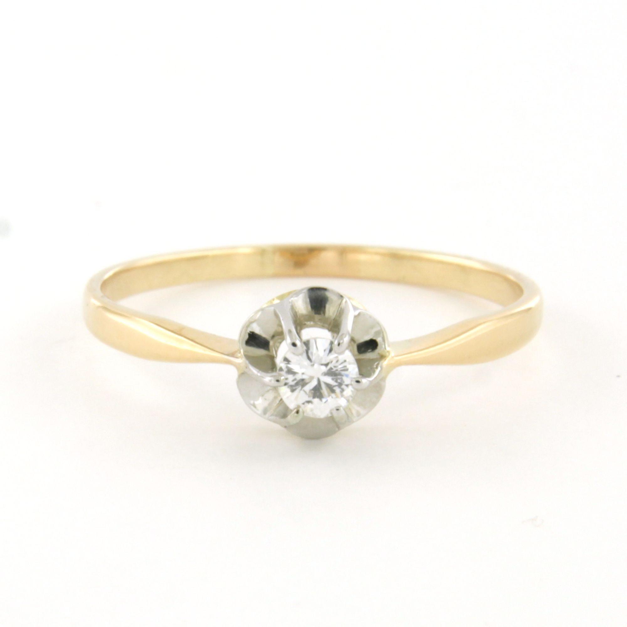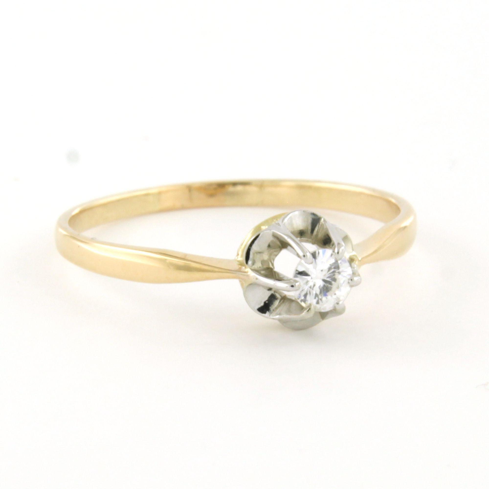 14 Kt. bicolour gouden solitair ring bezet met briljant geslepen diamant 0.13ct F/G SI - ringmaat 17.5(55)