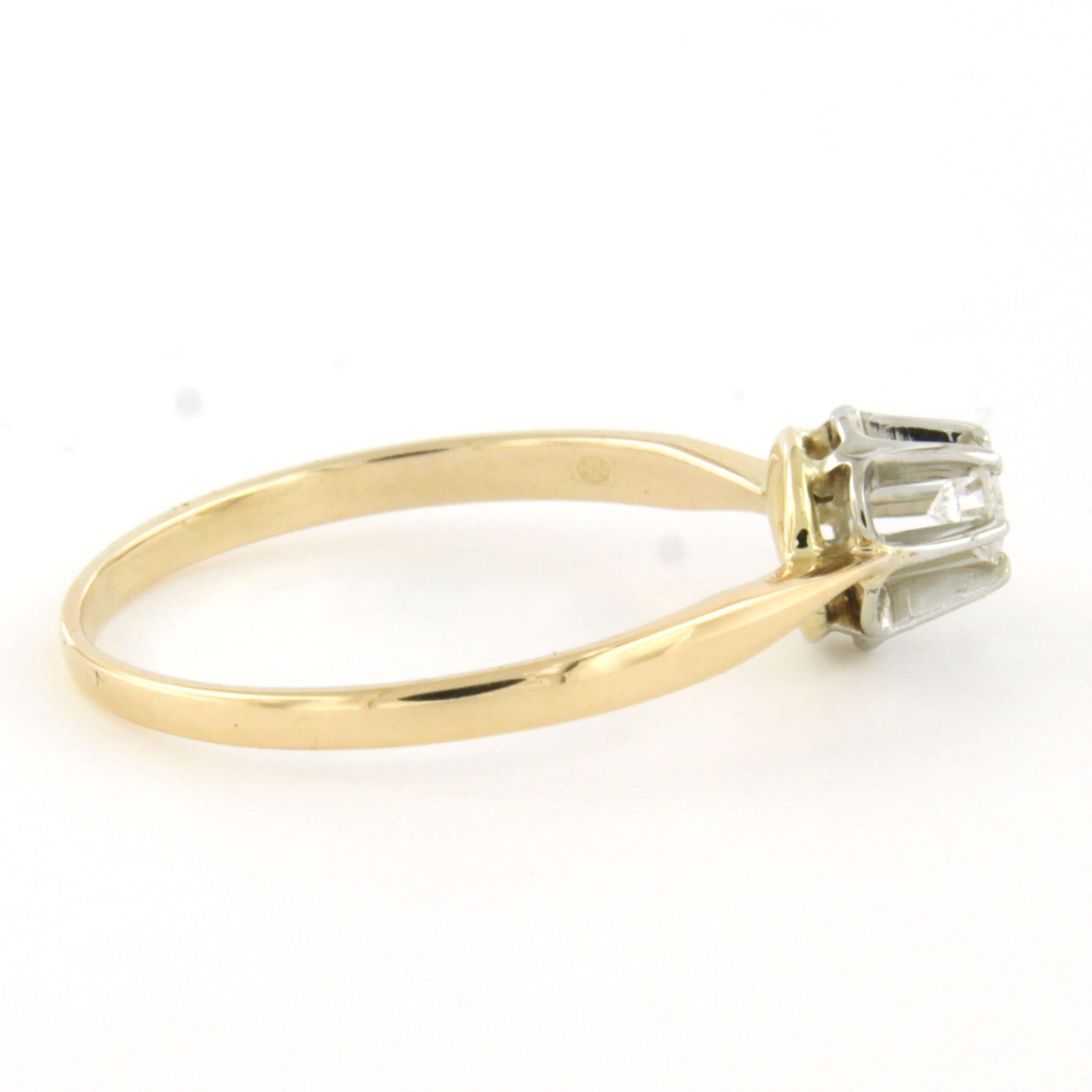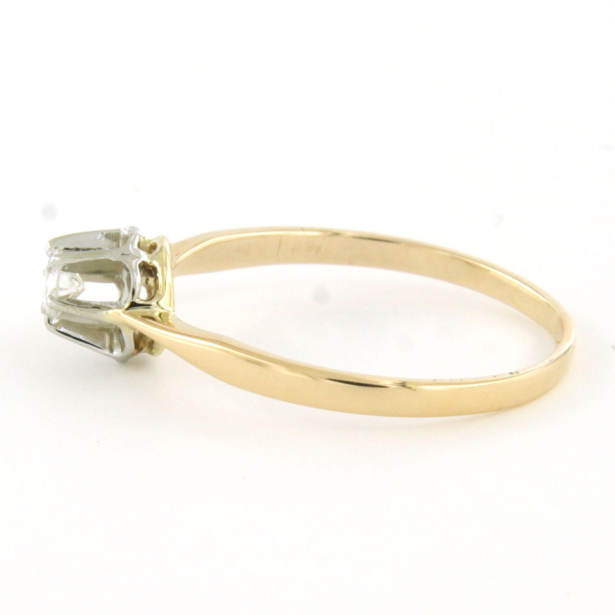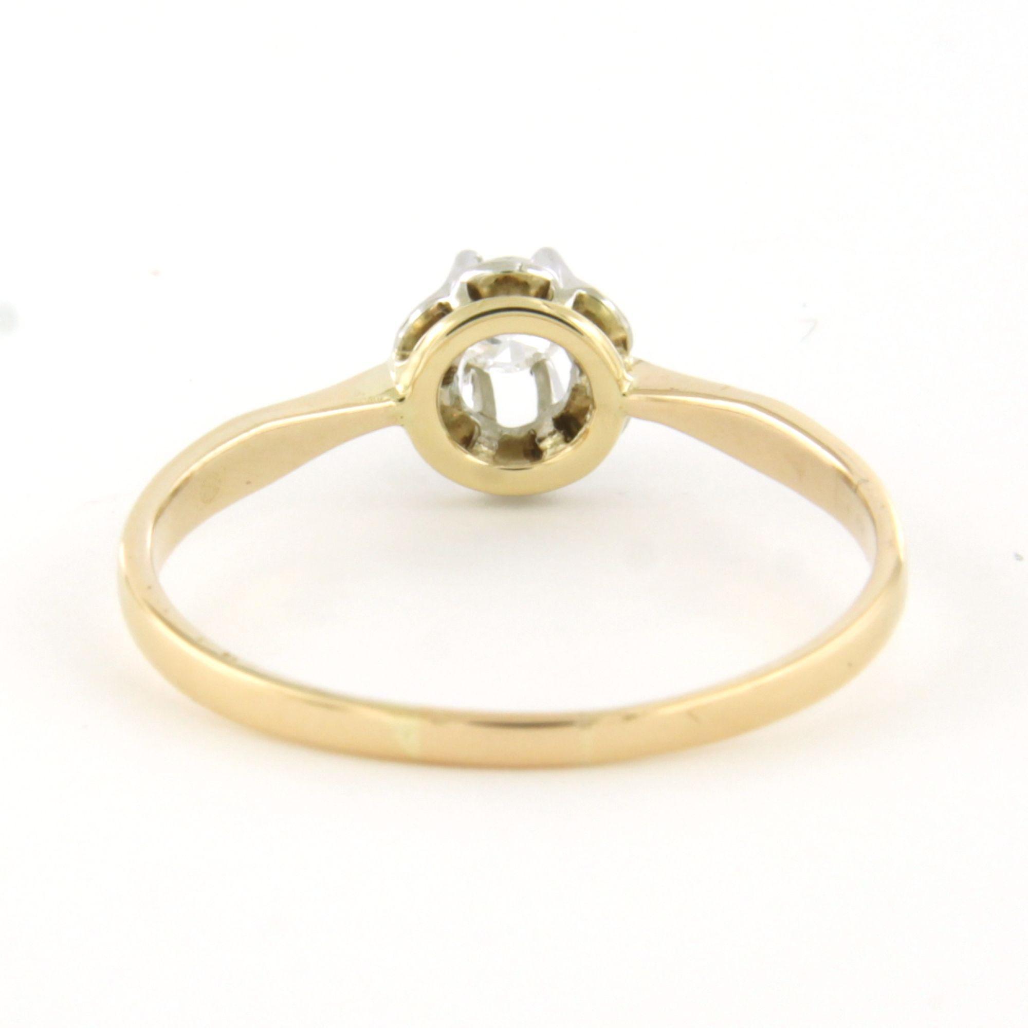 14 Kt. bicolour gouden solitair ring bezet met briljant geslepen diamant 0.13ct F/G SI - ringmaat 17.5(55)