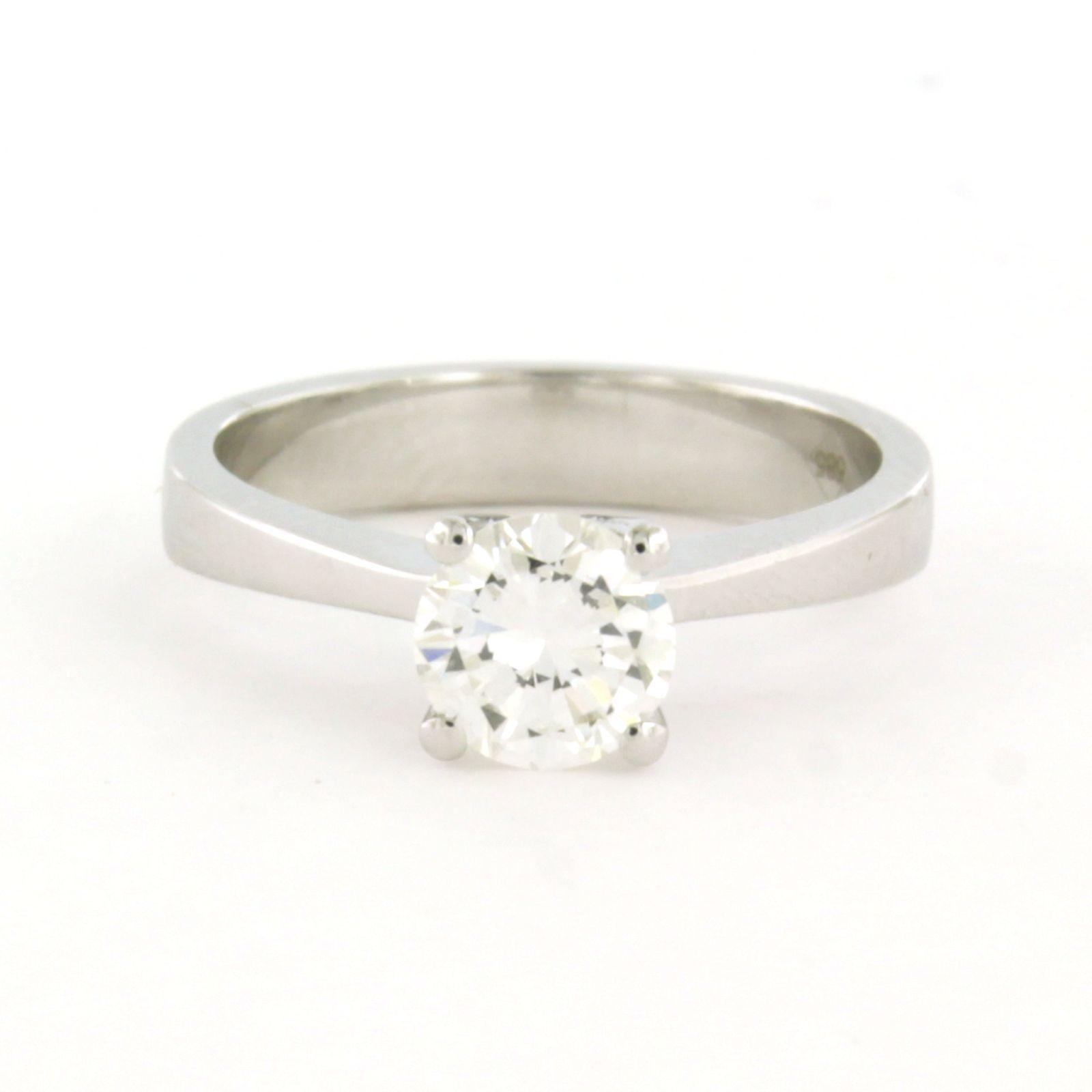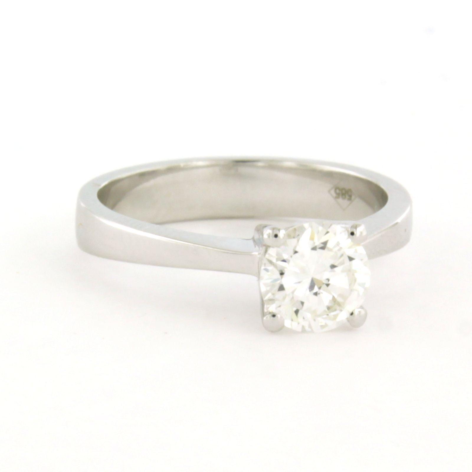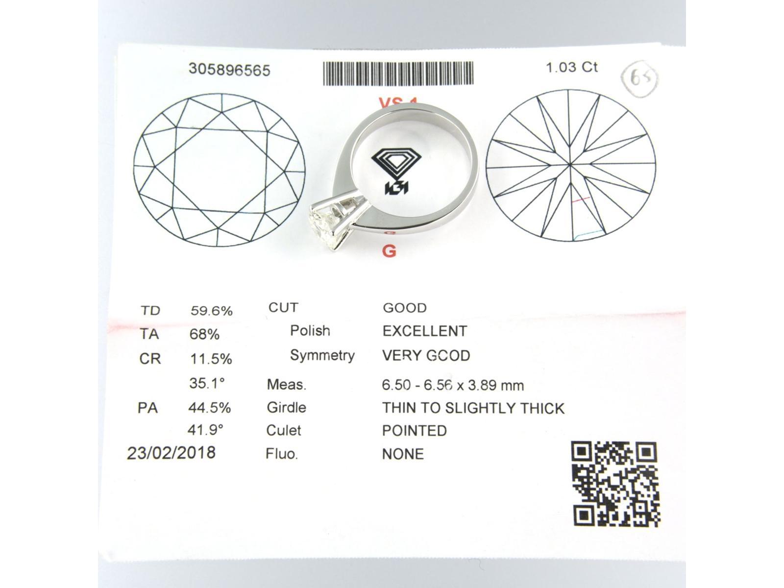 14 Kt. witgouden solitairring bezet met een briljant geslepen diamant 1.03ct VS1 G, ringmaat 17.25 (54). Diamant is door IGI onderzocht, report 305896565