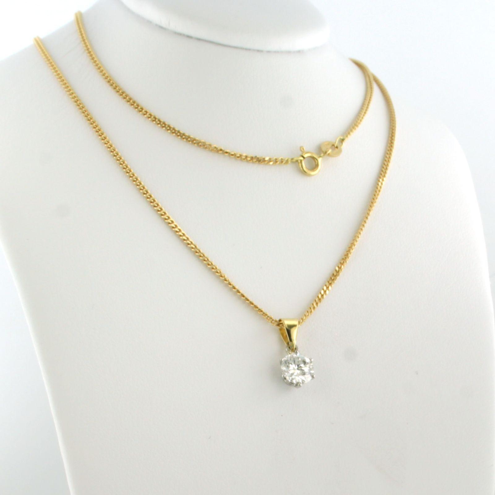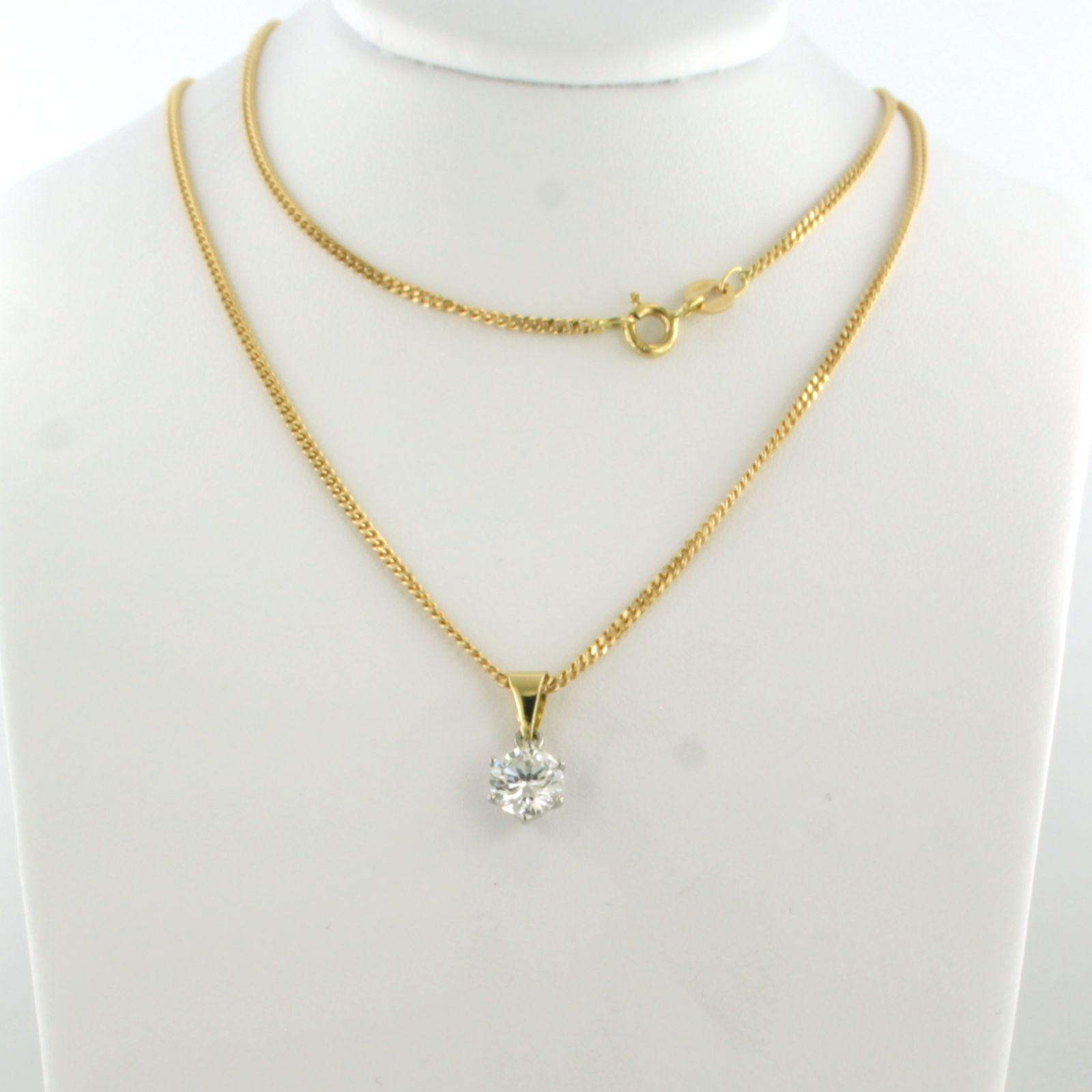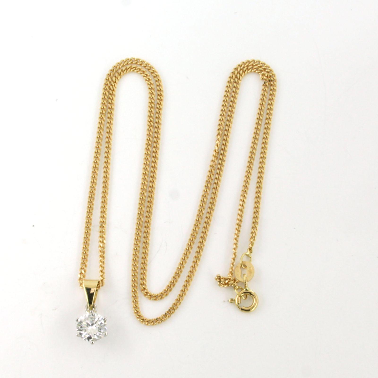 18 Kt. geelgouden collier met bicolor gouden solitair hanger bezet met briljant geslepen diamant 0.90 ct I/J SI
