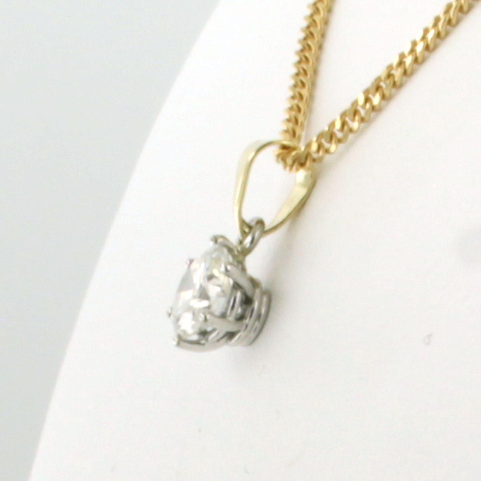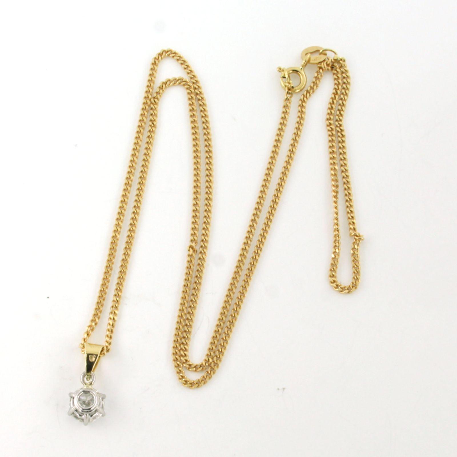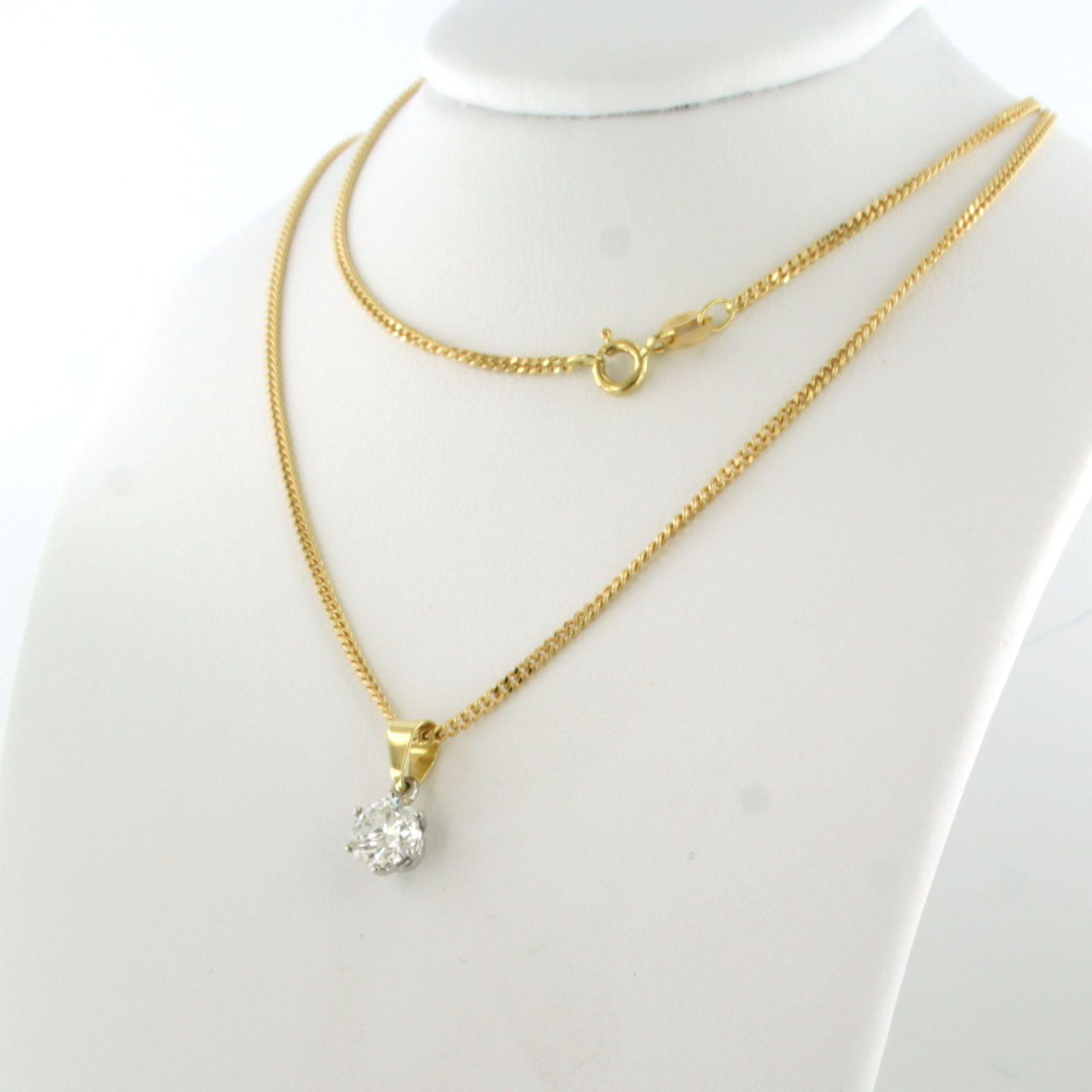 18 Kt. geelgouden collier met bicolor gouden solitair hanger bezet met briljant geslepen diamant 0.90 ct I/J SI