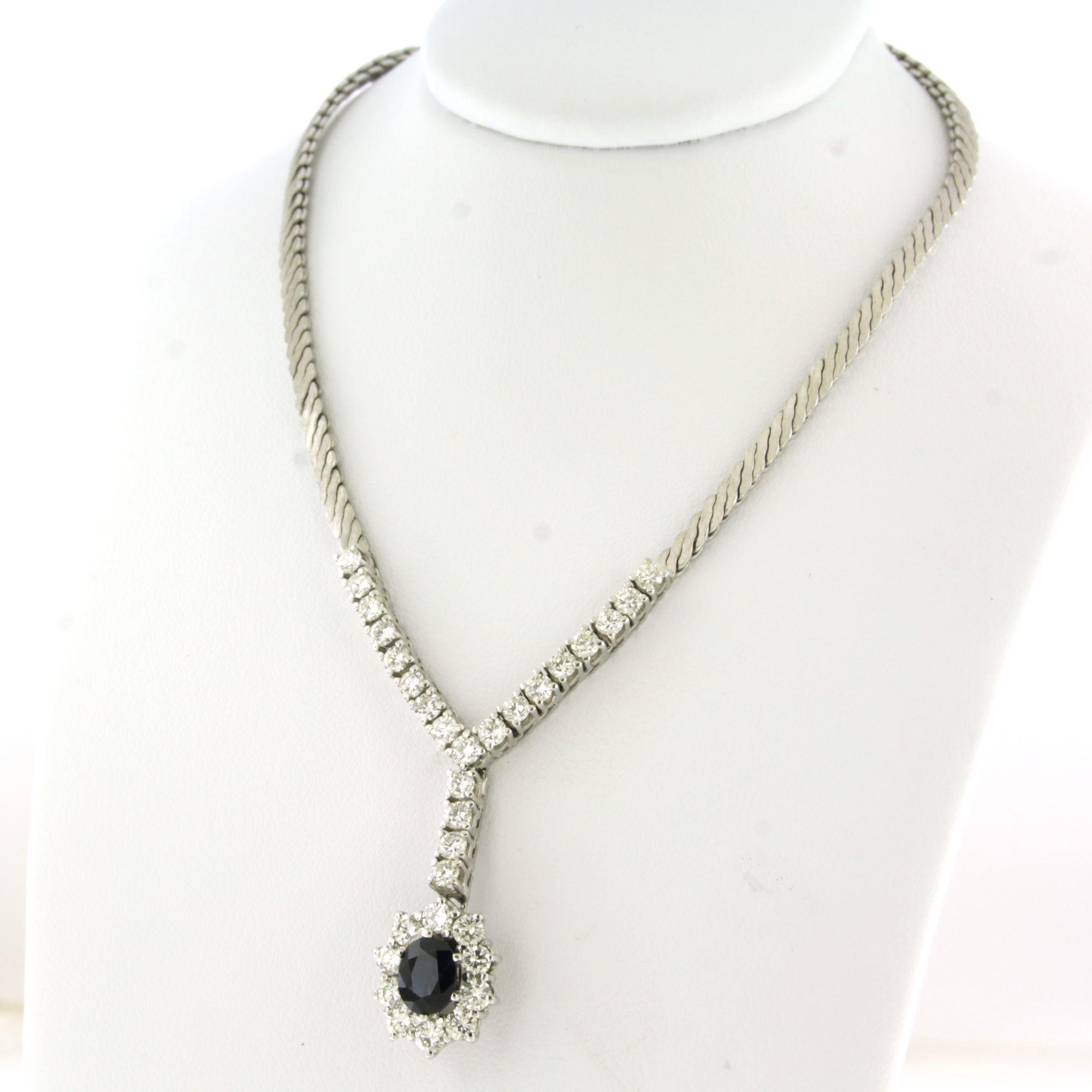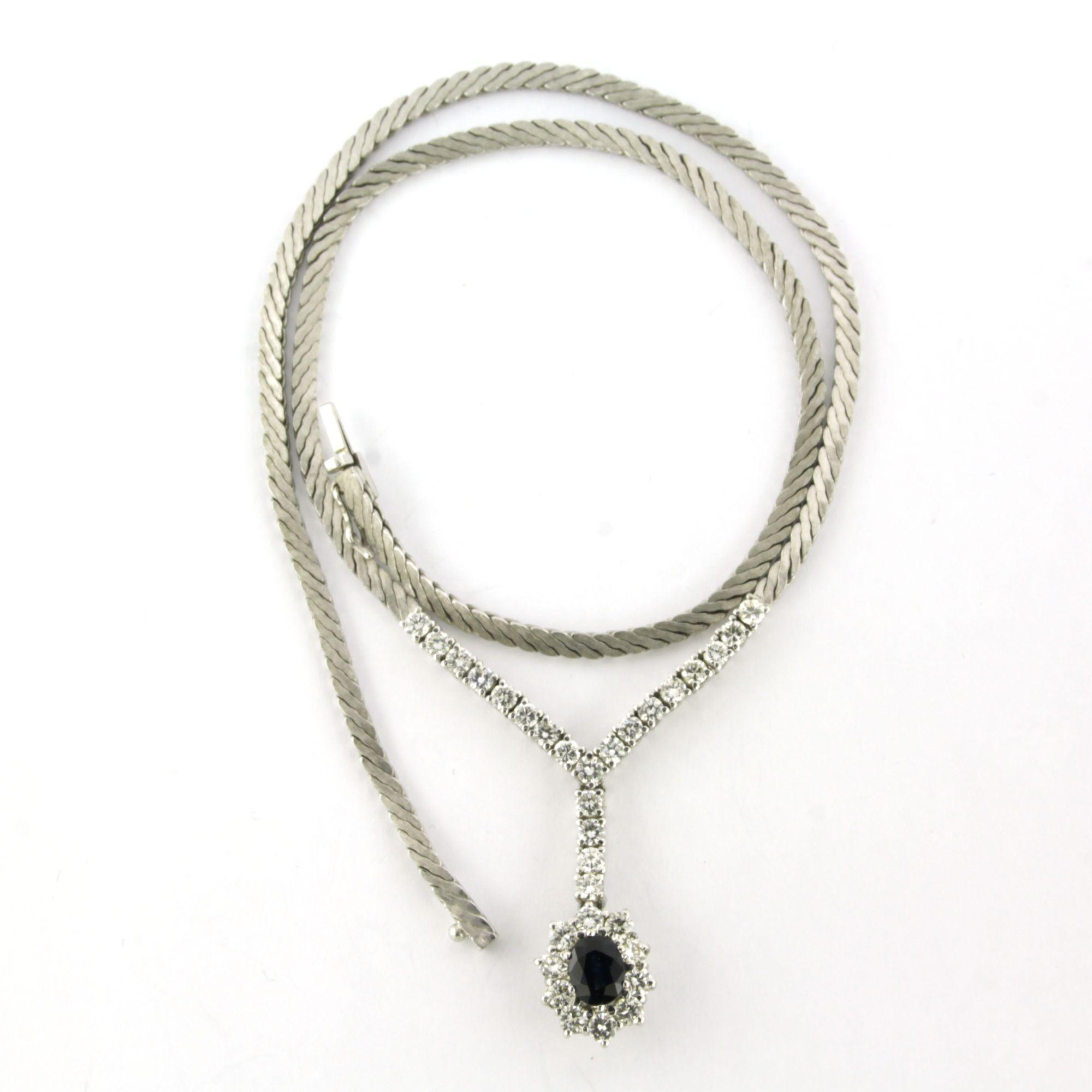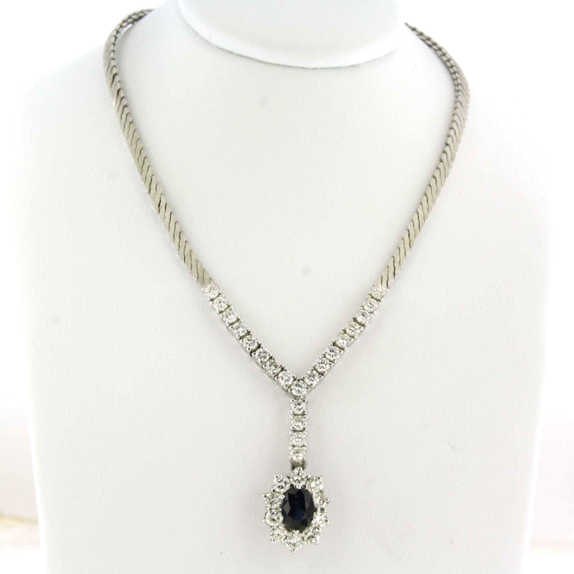 18 Kt. witgouden collier met saffier tot. 1,00ct en briljant geslepen diamant tot. 3,00ct - lengte circa 45 cm