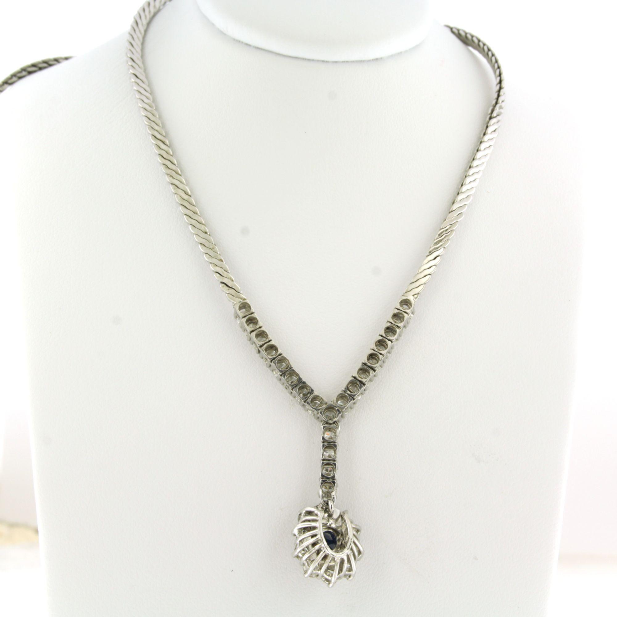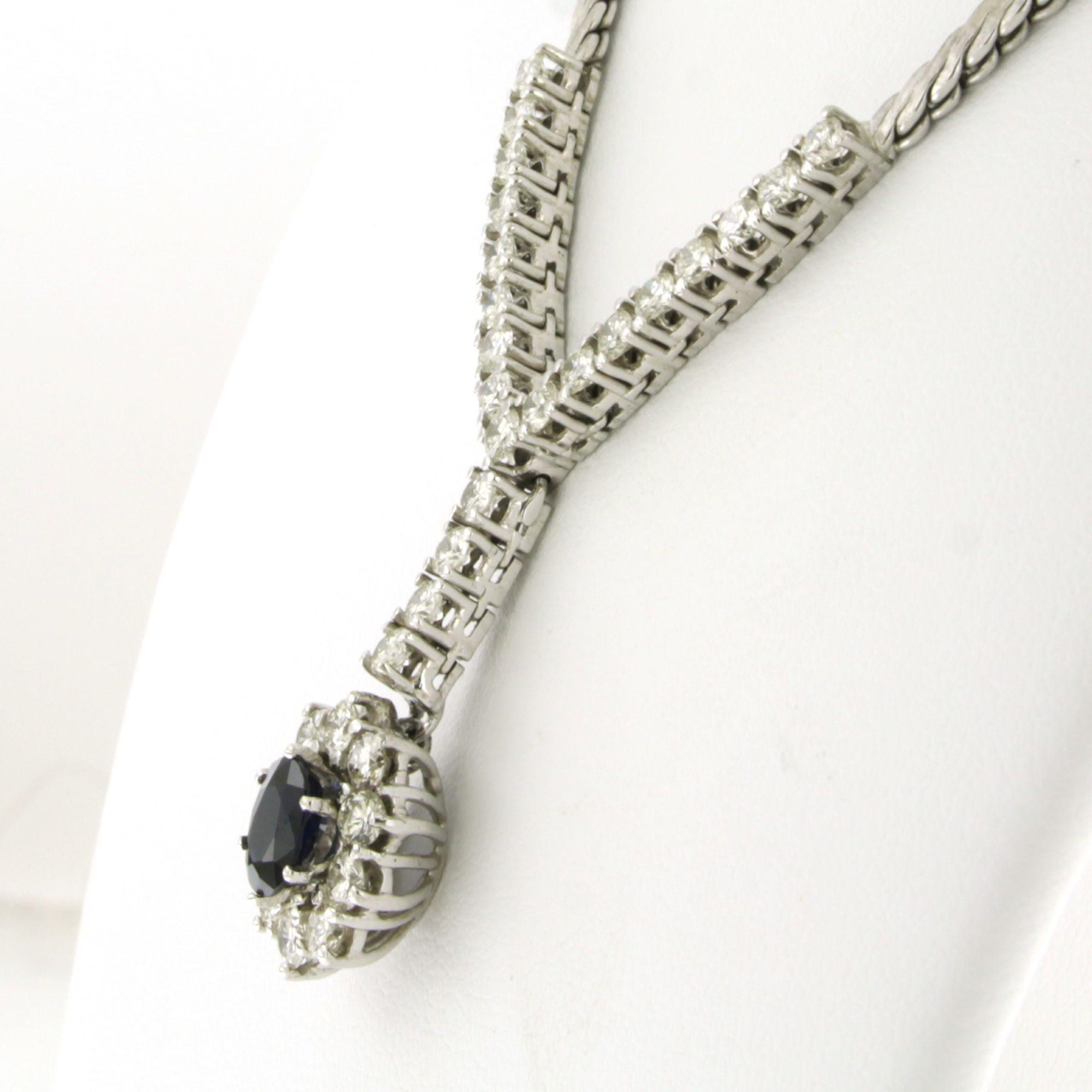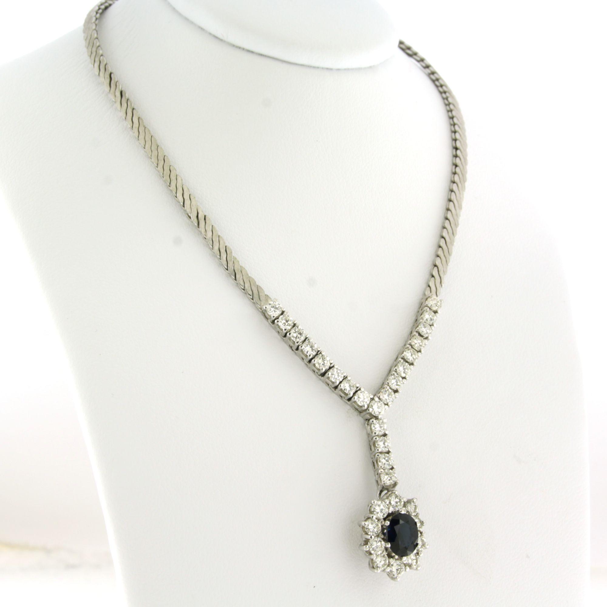 18 Kt. witgouden collier met saffier tot. 1,00ct en briljant geslepen diamant tot. 3,00ct - lengte circa 45 cm