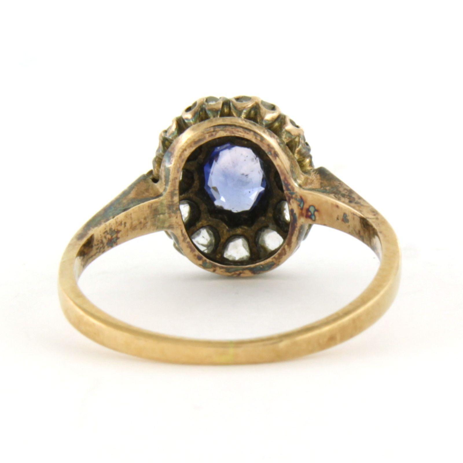 14 Kt. geel gouden ring bezet met saffier tot. 0.20ct en roos geslepen diamanten tot. 0.20ct - G/H - SI - ringmaat 15.75(49)