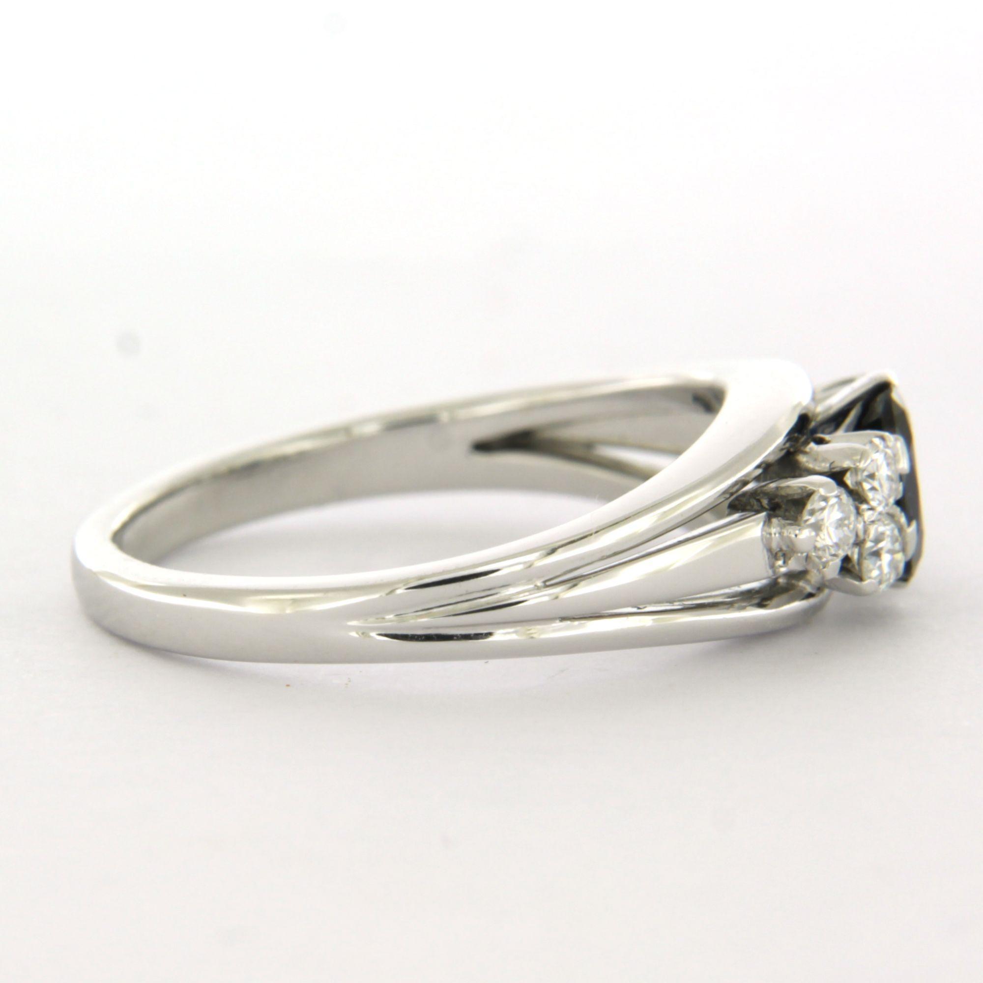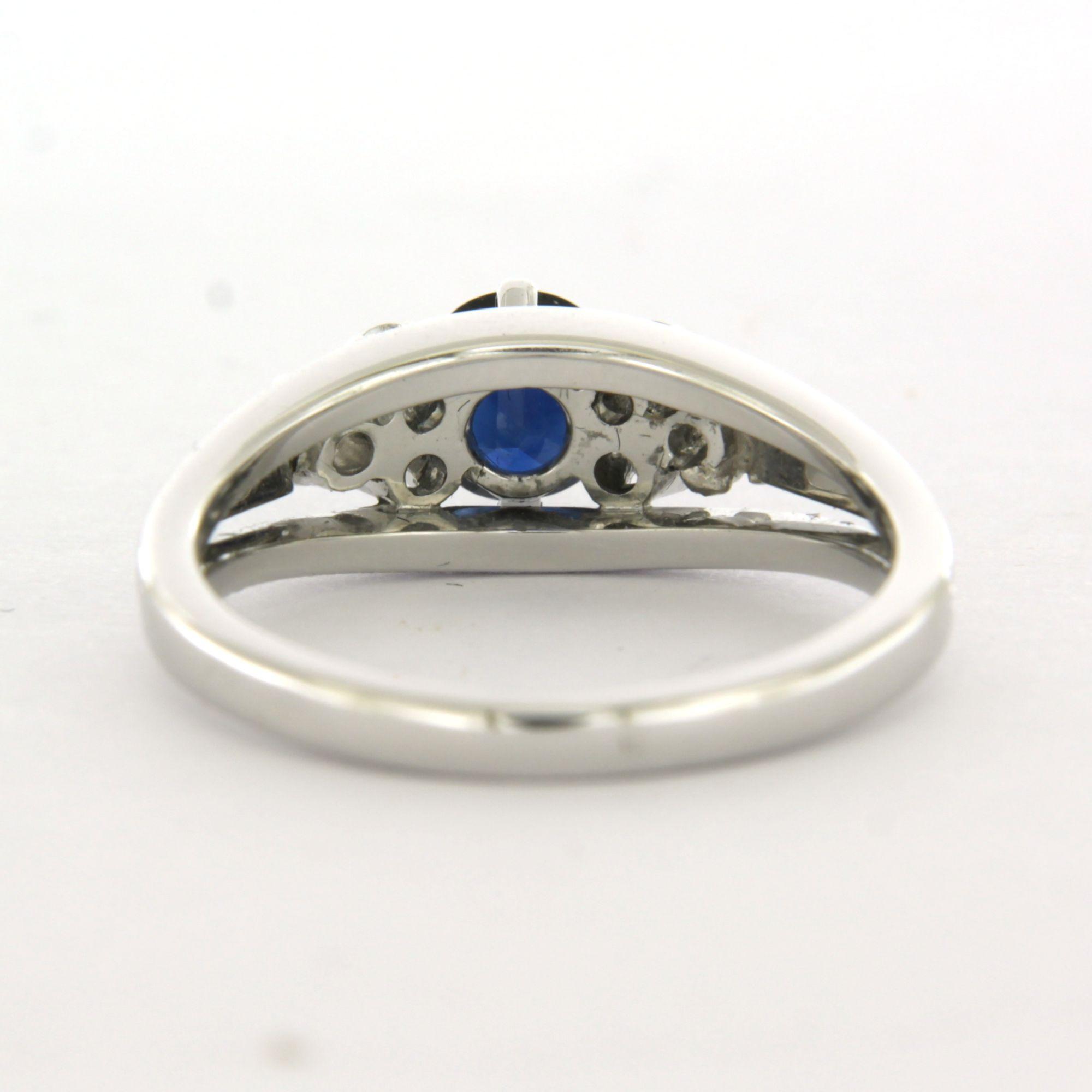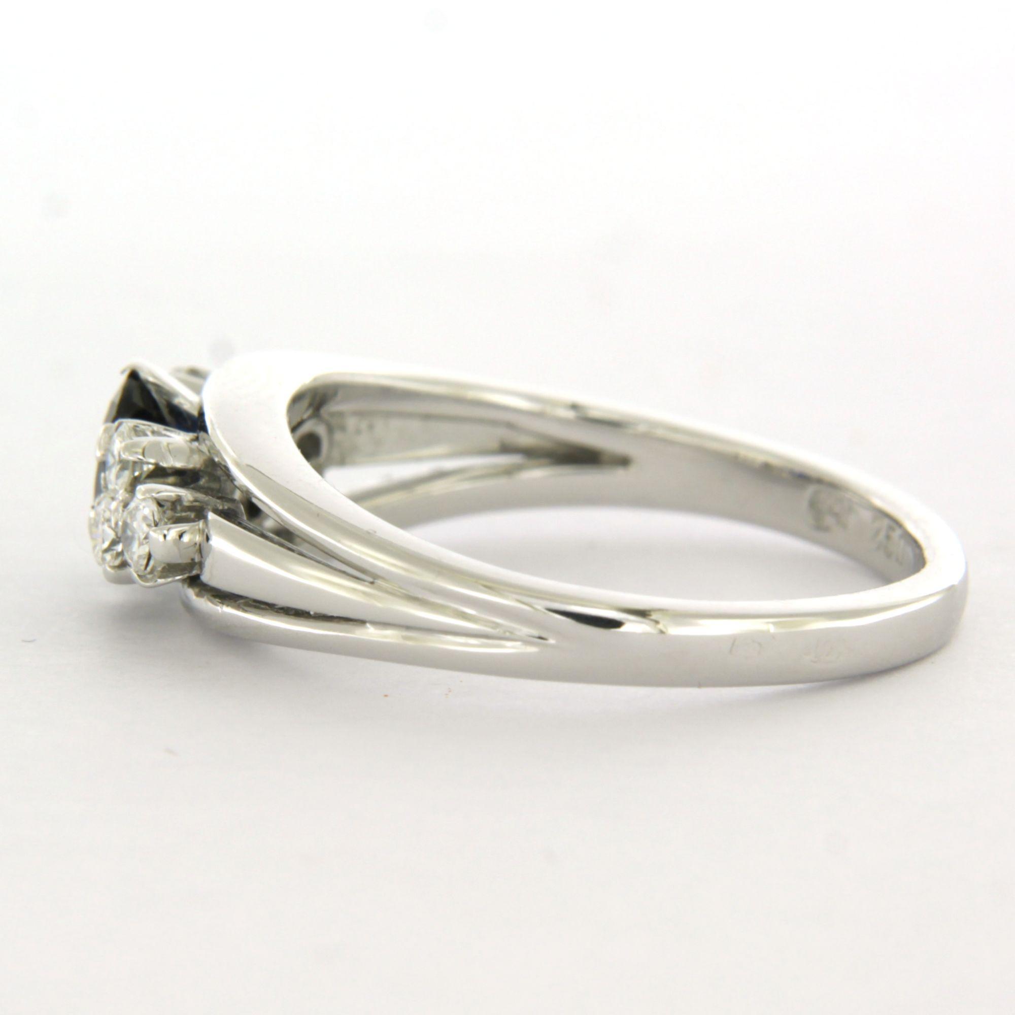 18 Kt. witgouden ring bezet met saffier en briljant geslepen diamant tot. 0.25ct - ringmaat 17.25(54)