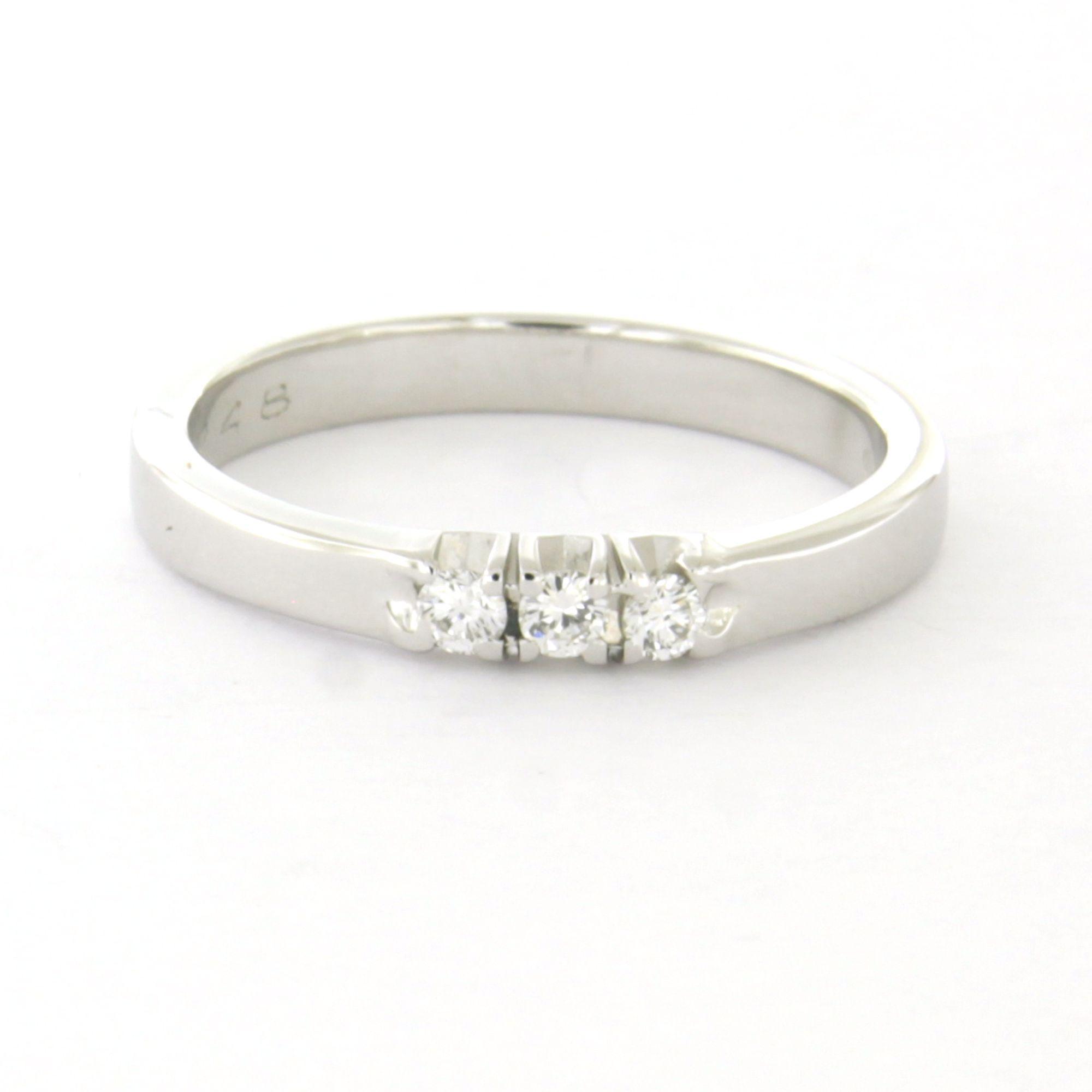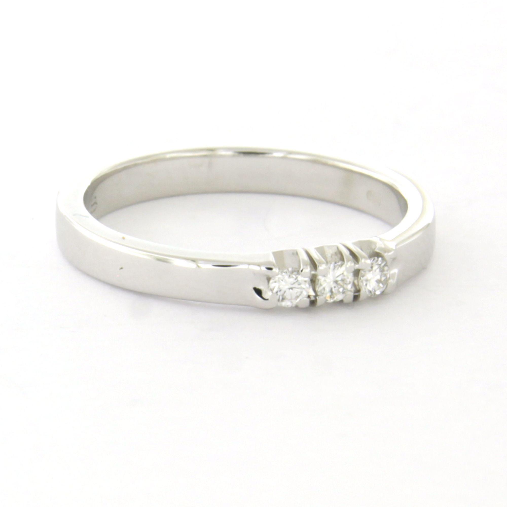 14 Kt. witgouden ring bezet met briljant geslepen diamant tot. 0.12ct – F/G – VS/SI - ringmaat 17.25(54)
