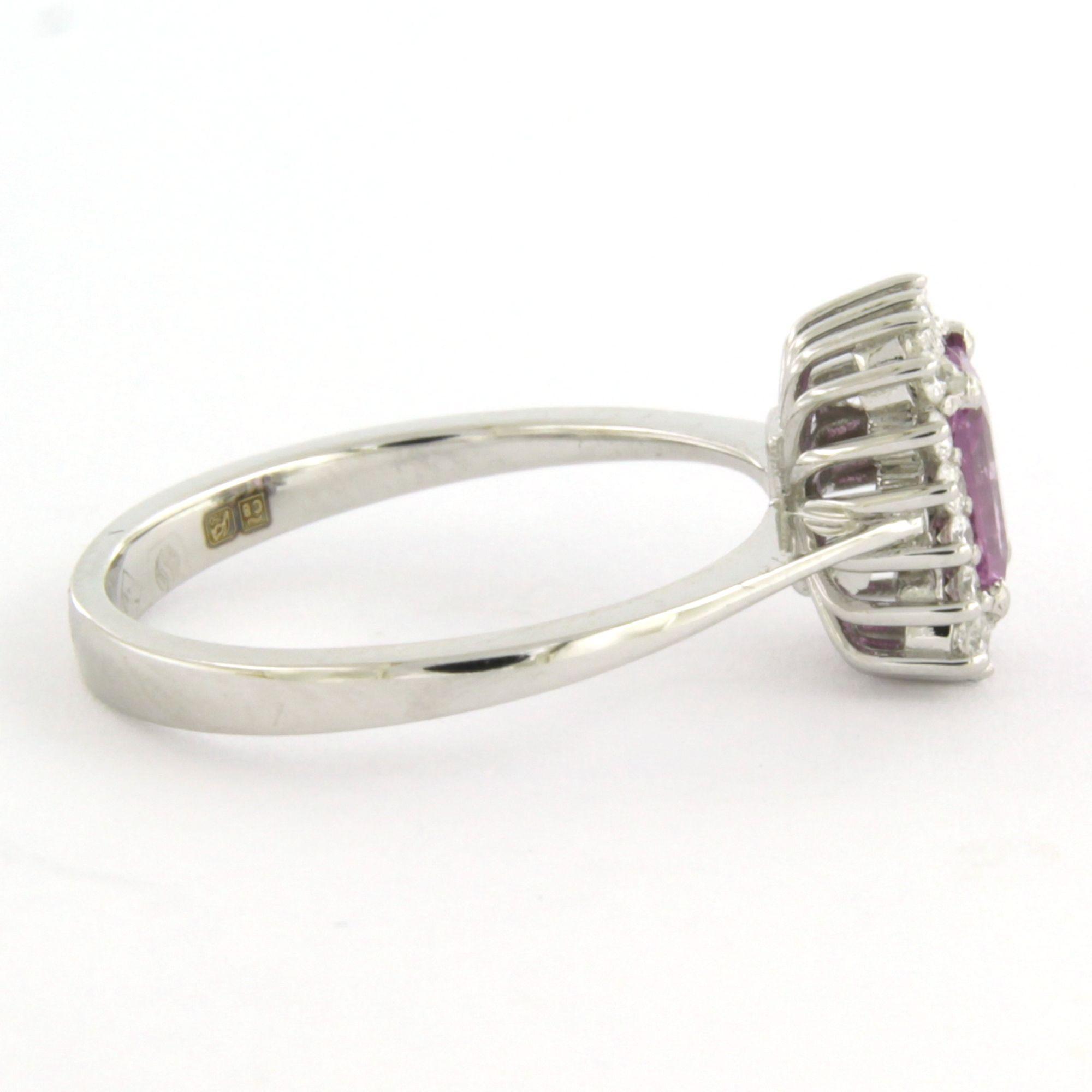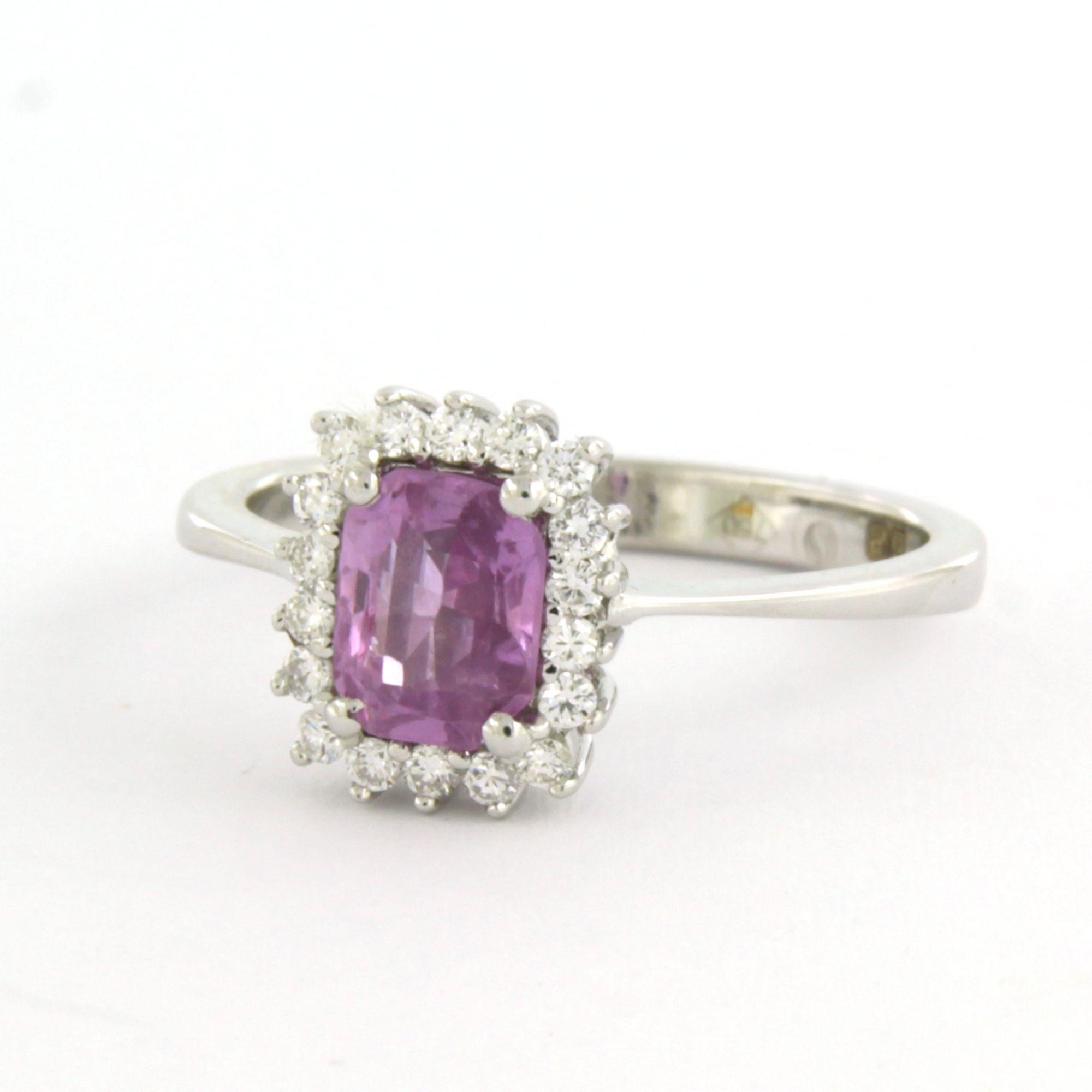 18 Kt. gouden ring bezet met roze saffier en briljant geslepen diamant tot. 0.22ct - ringmaat 17.5(55)