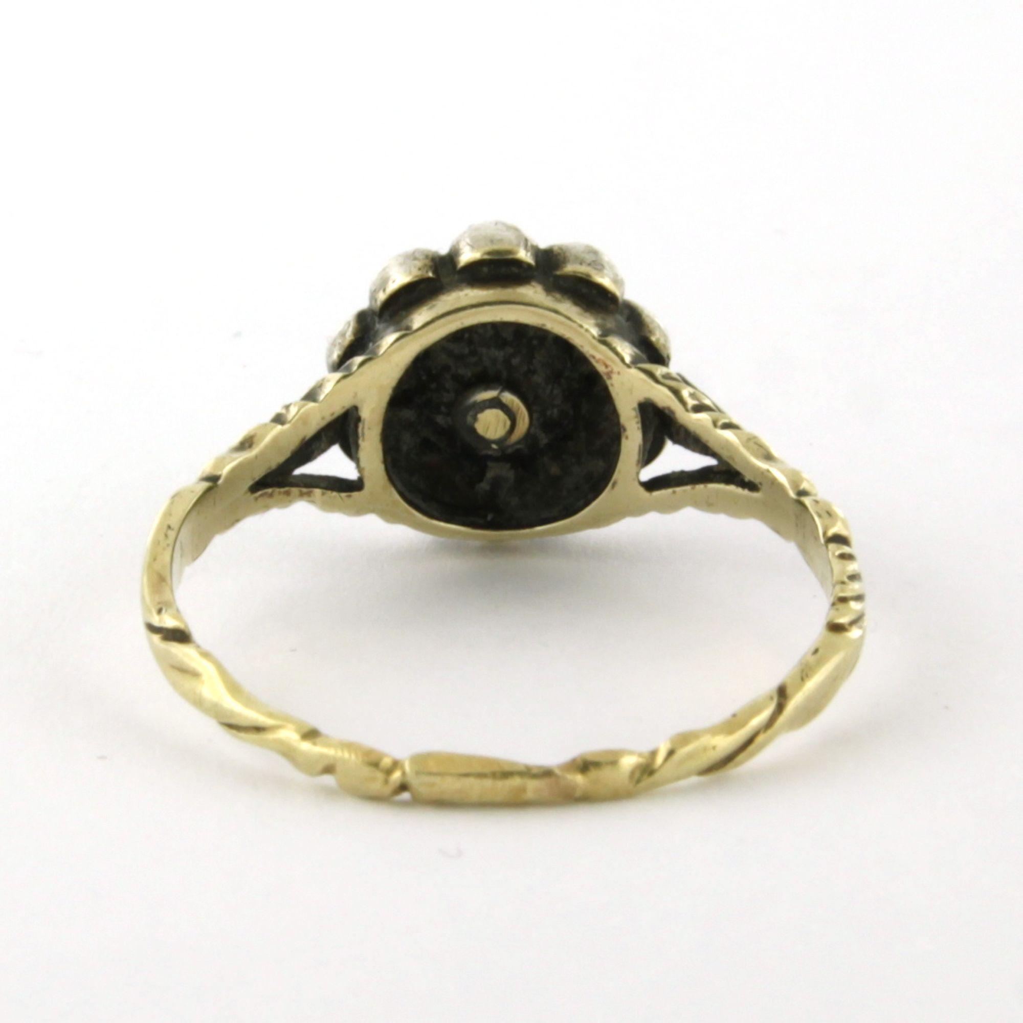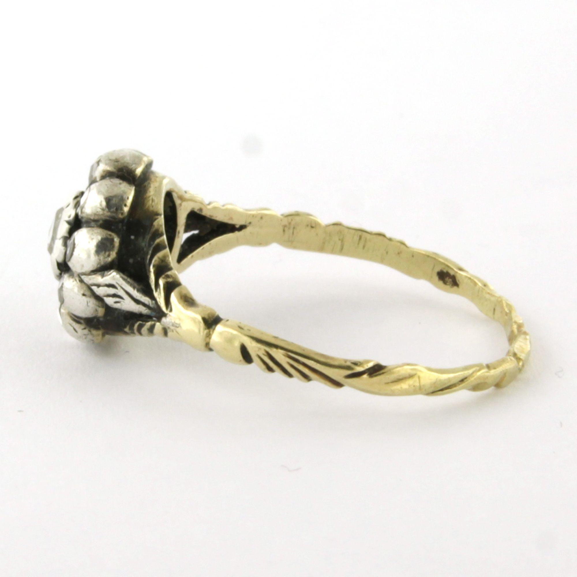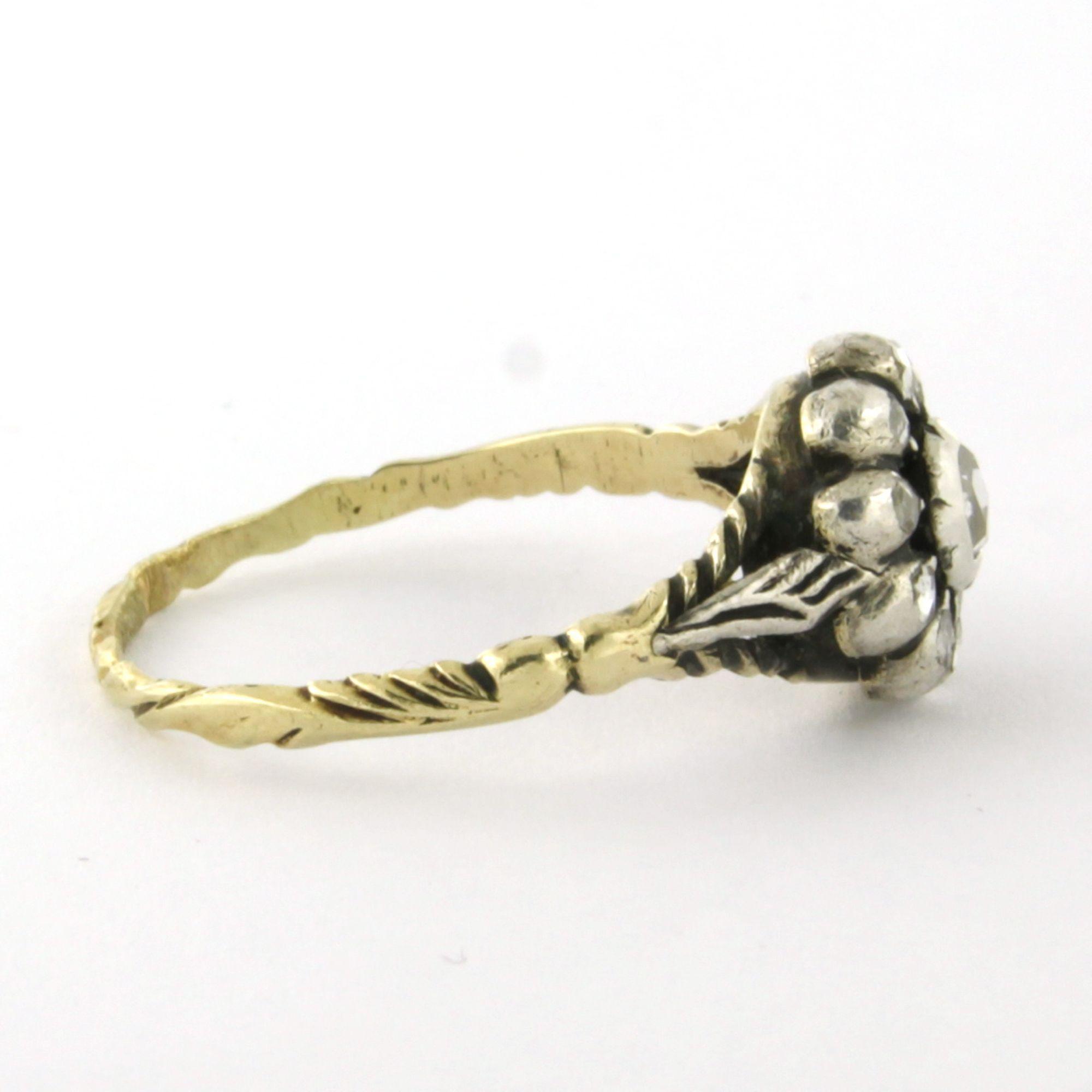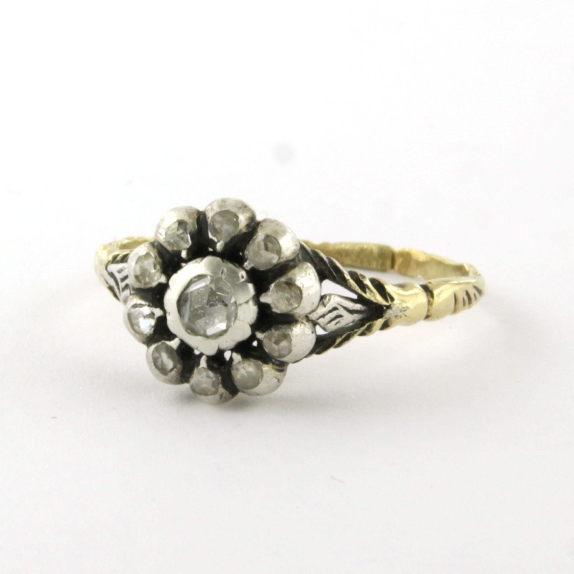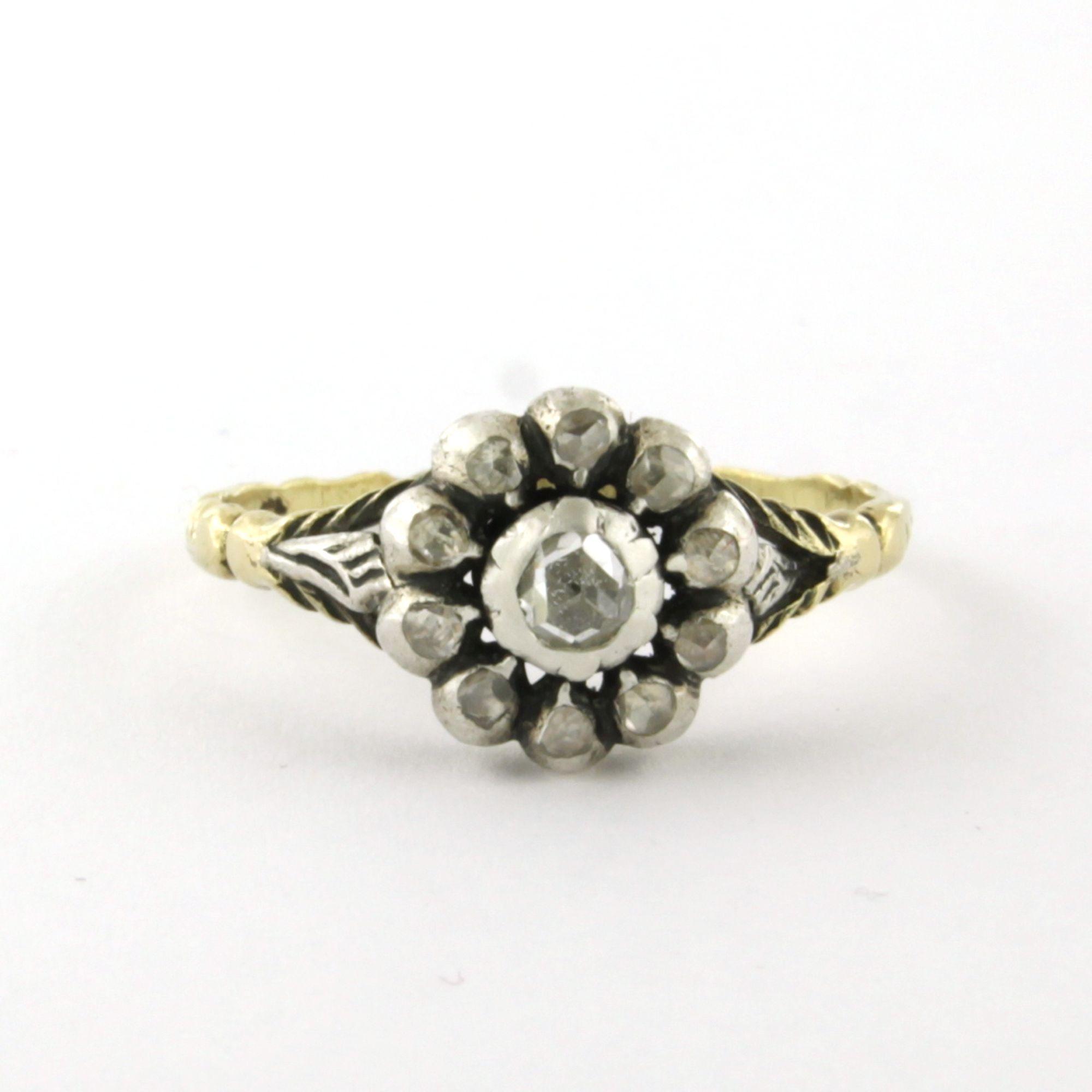 14 Kt. gouden met zilveren ring bezet met roos geslepen diamanten totaal 0.20ct - ringmaat 18.25(58)