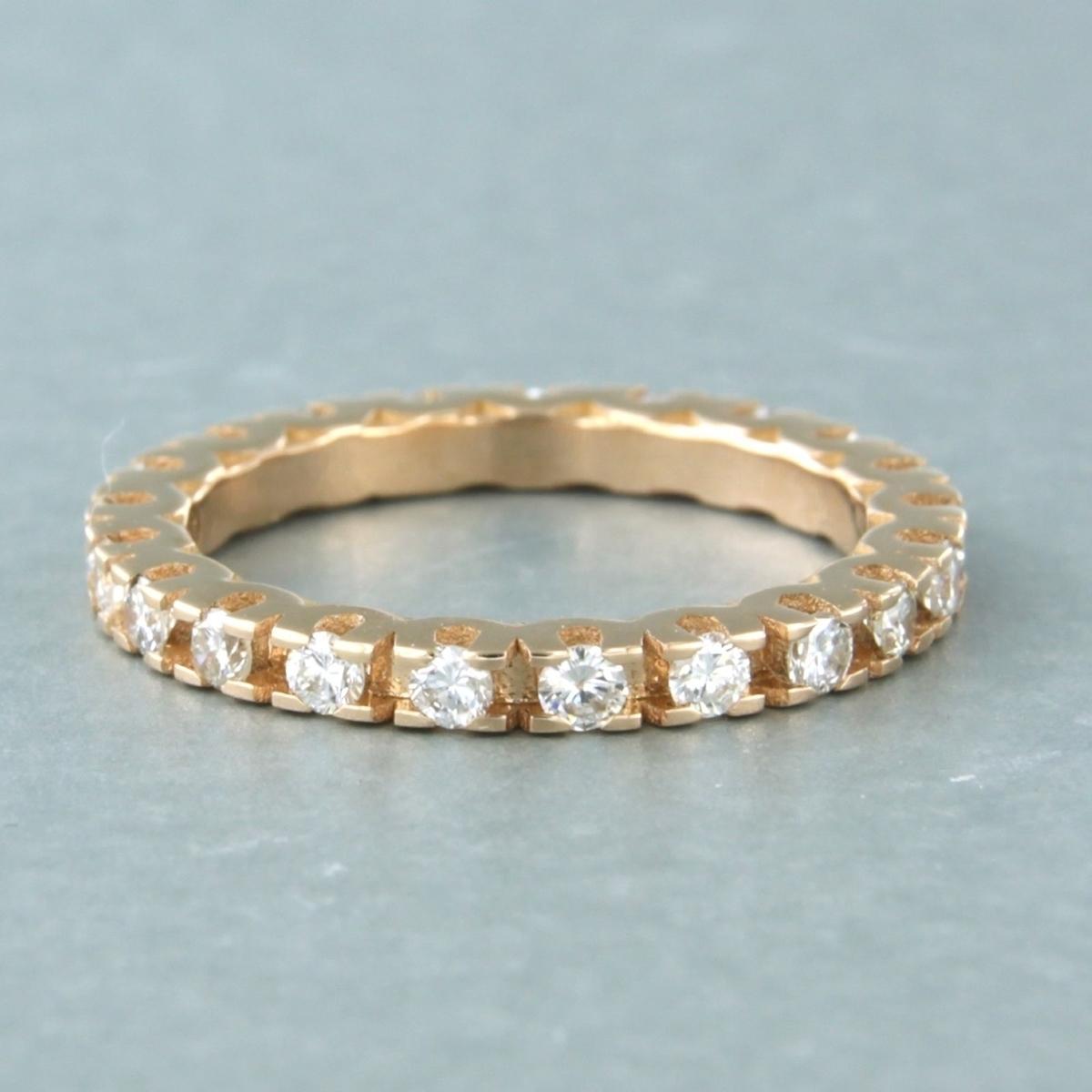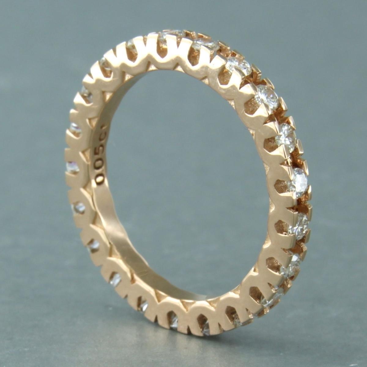 18 Kt. roodgouden hele alliance ring bezet met briljant geslepen diamanten totaal 0.60ct - ringmaat 17.5(55)