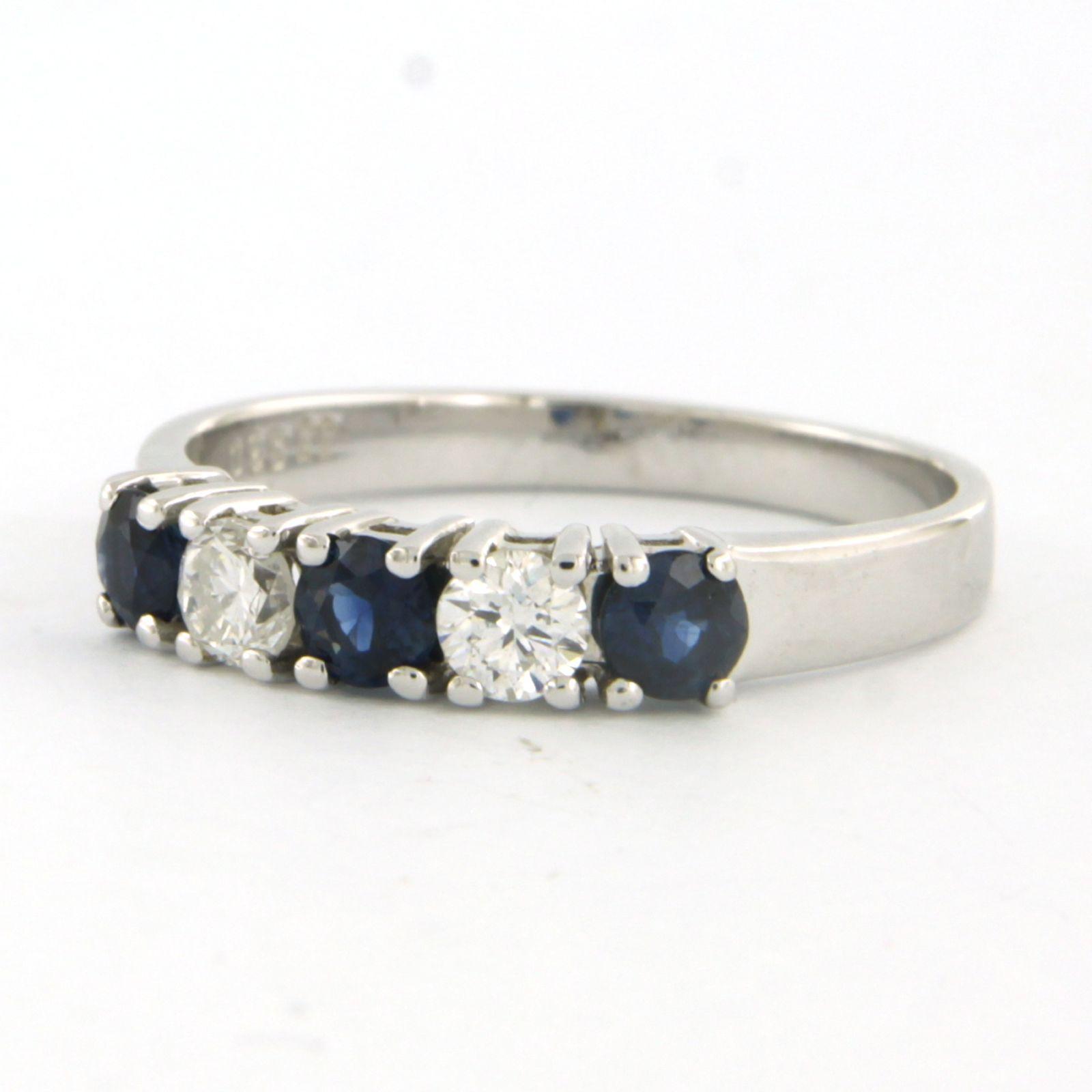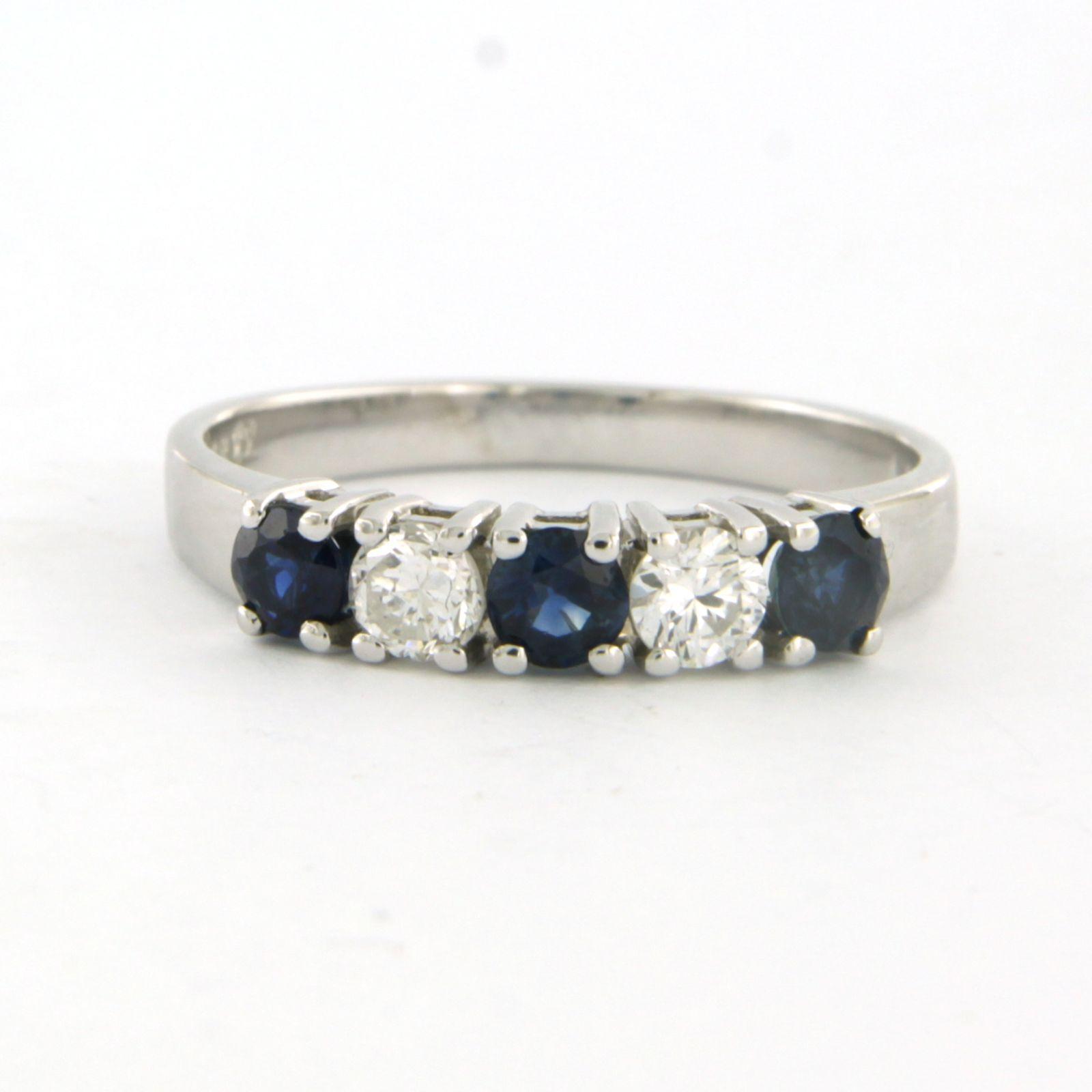 18 Kt. witgouden ring bezet met saffier en briljant geslepen diamant tot. 0.33ct - ringmaat 17.25(54)