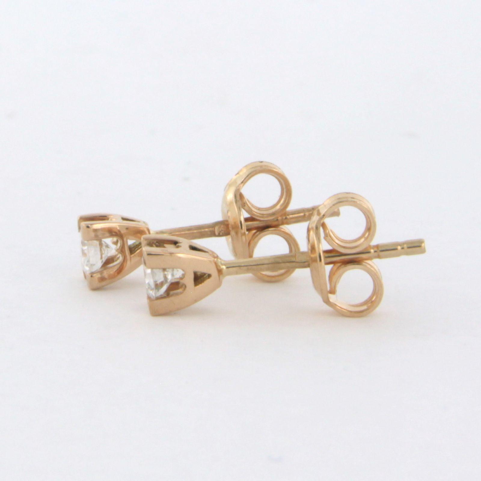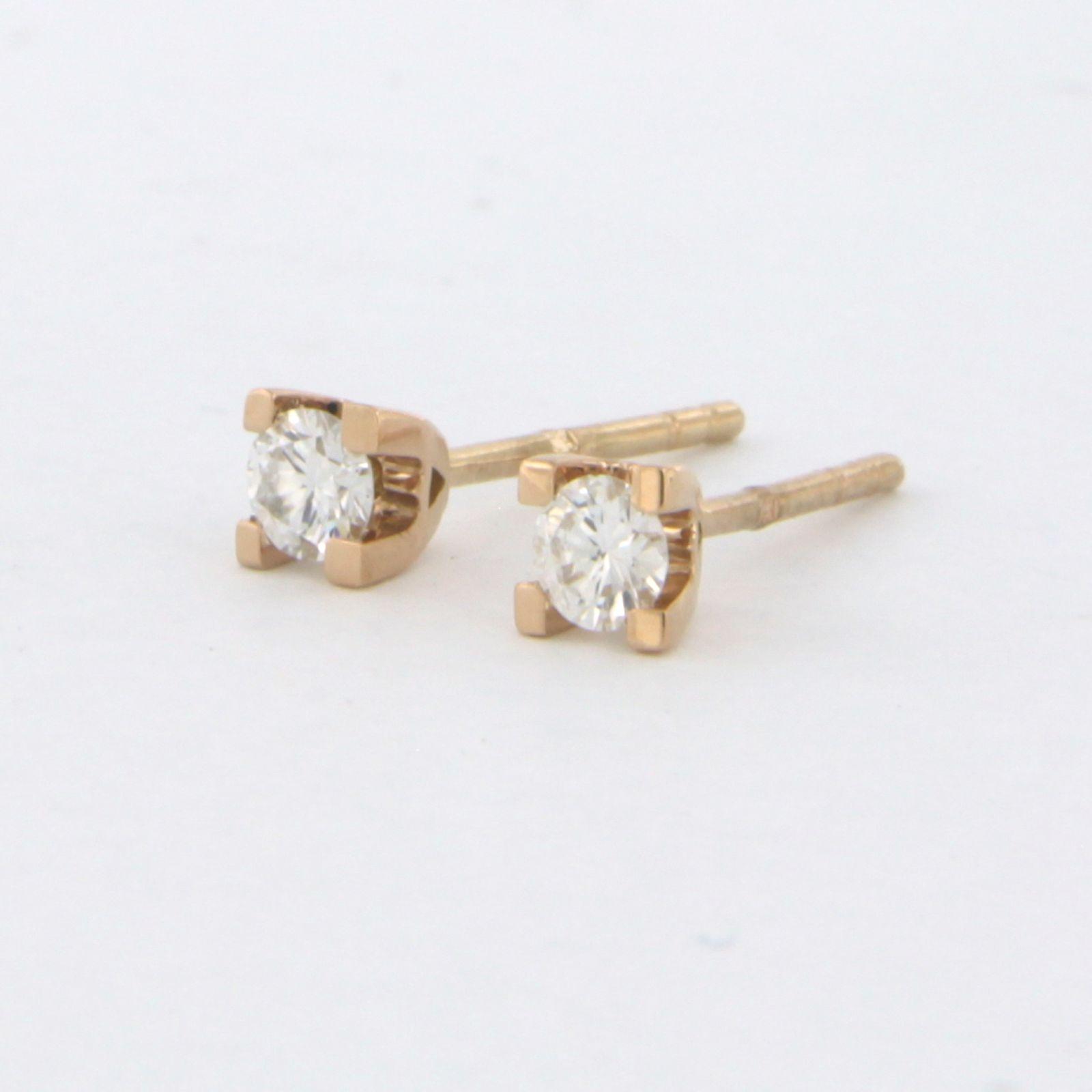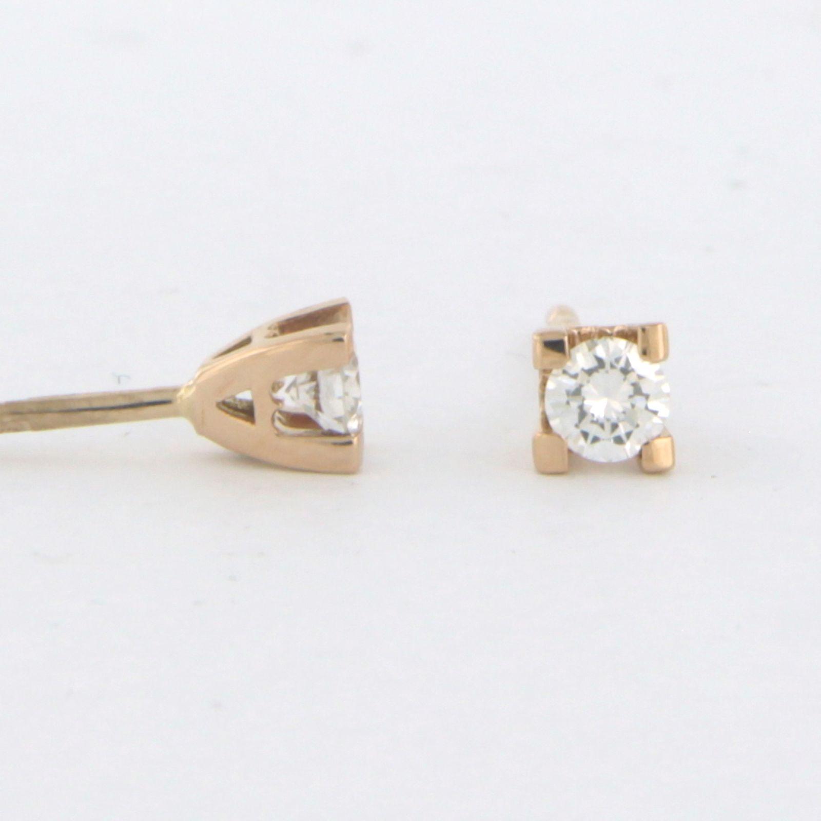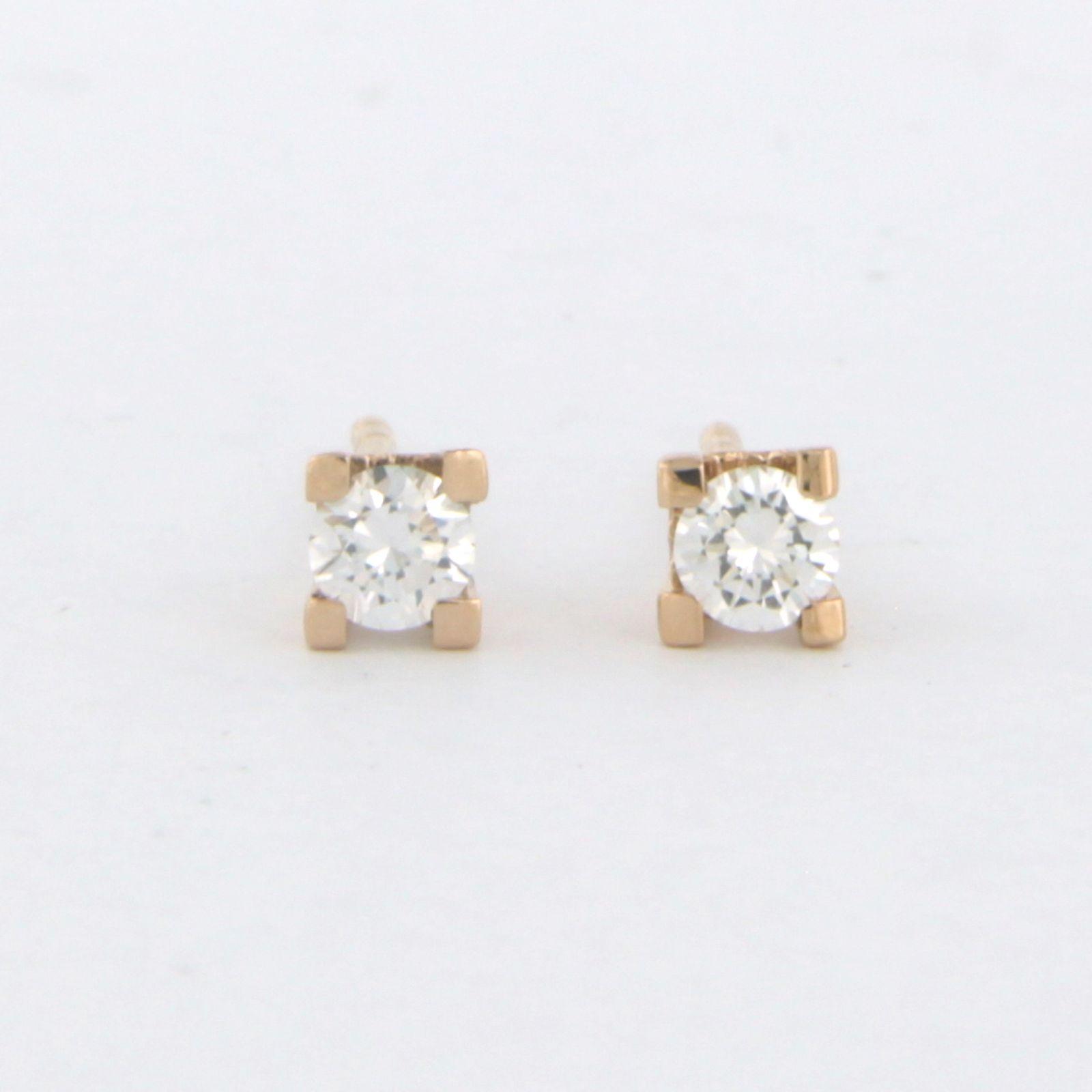 18 Kt. roodgouden solitair oorknoppen bezet met briljant geslepen diamanten totaal 0.16ct