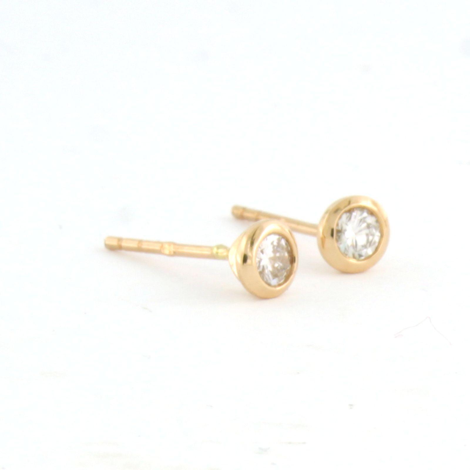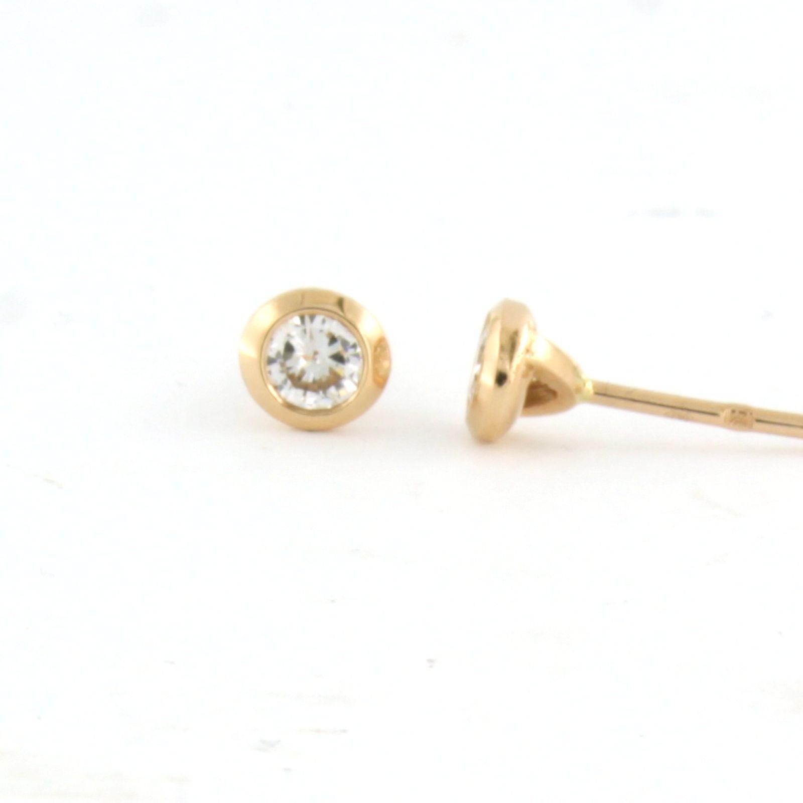 18 Kt. roségouden solitair-oorknoppen bezet met briljant geslepen diamant tot. 0.10ct
