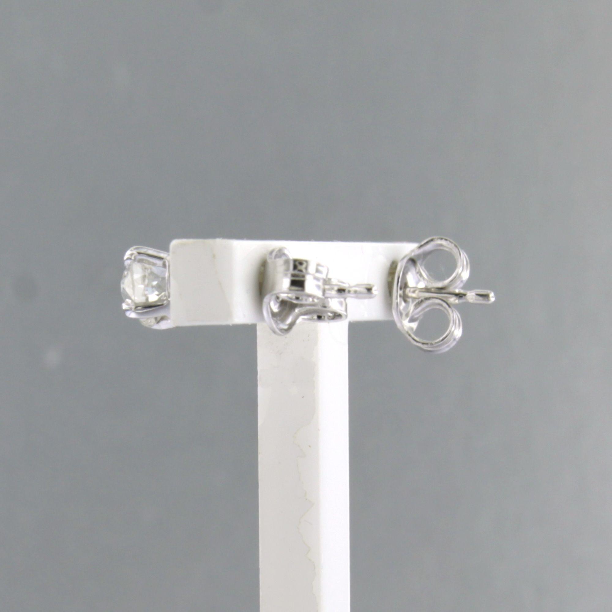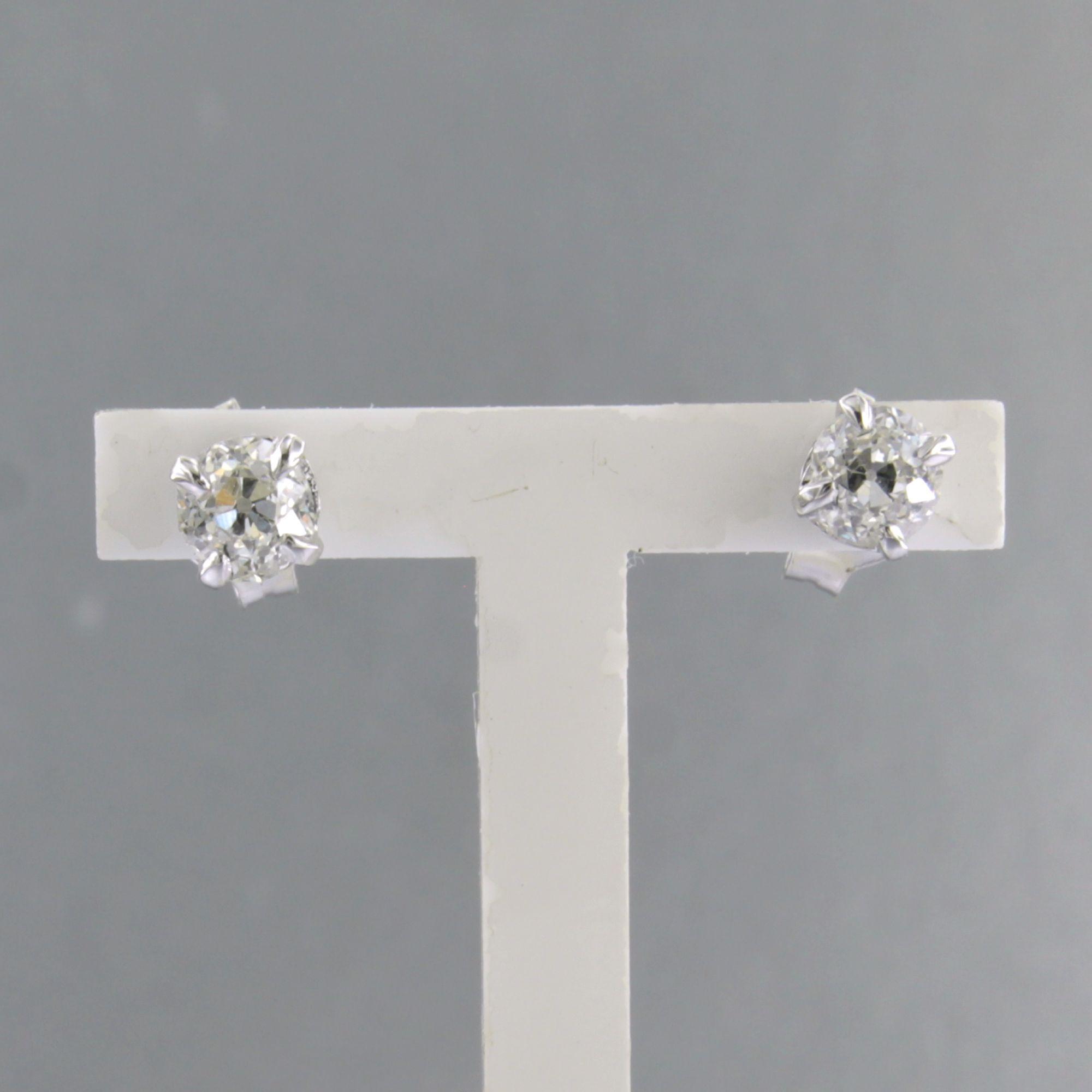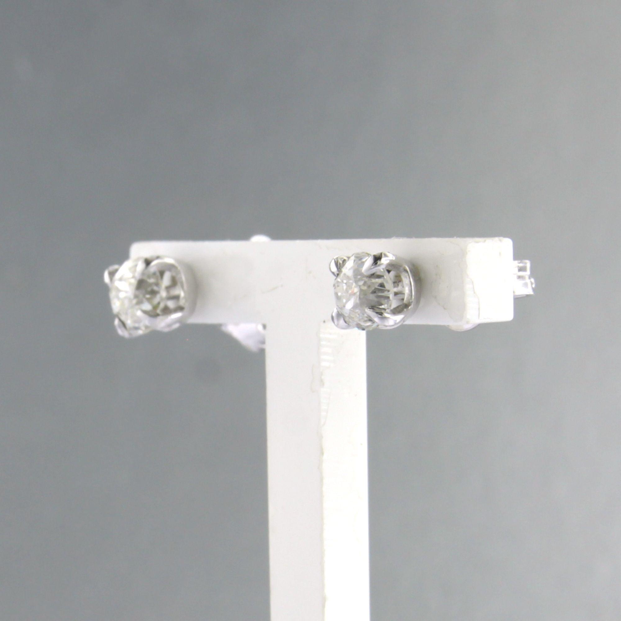 14 Kt. gouden met 950pt platina solitair oorknoppen bezet met bolsjewiek geslepen diamanten totaal circa 0.90ct