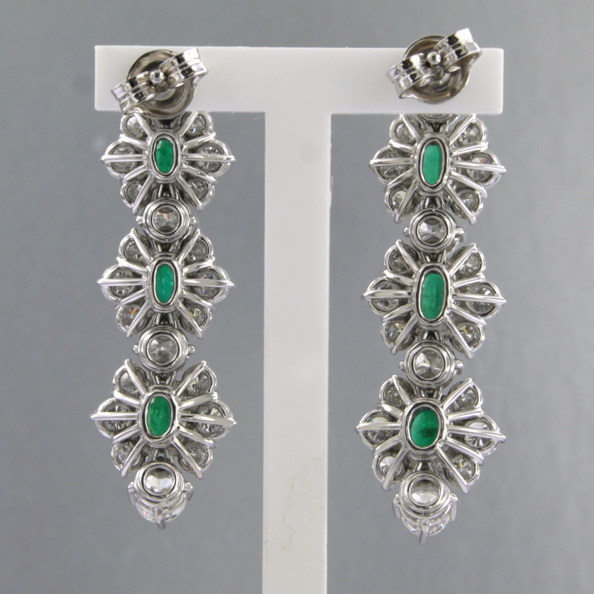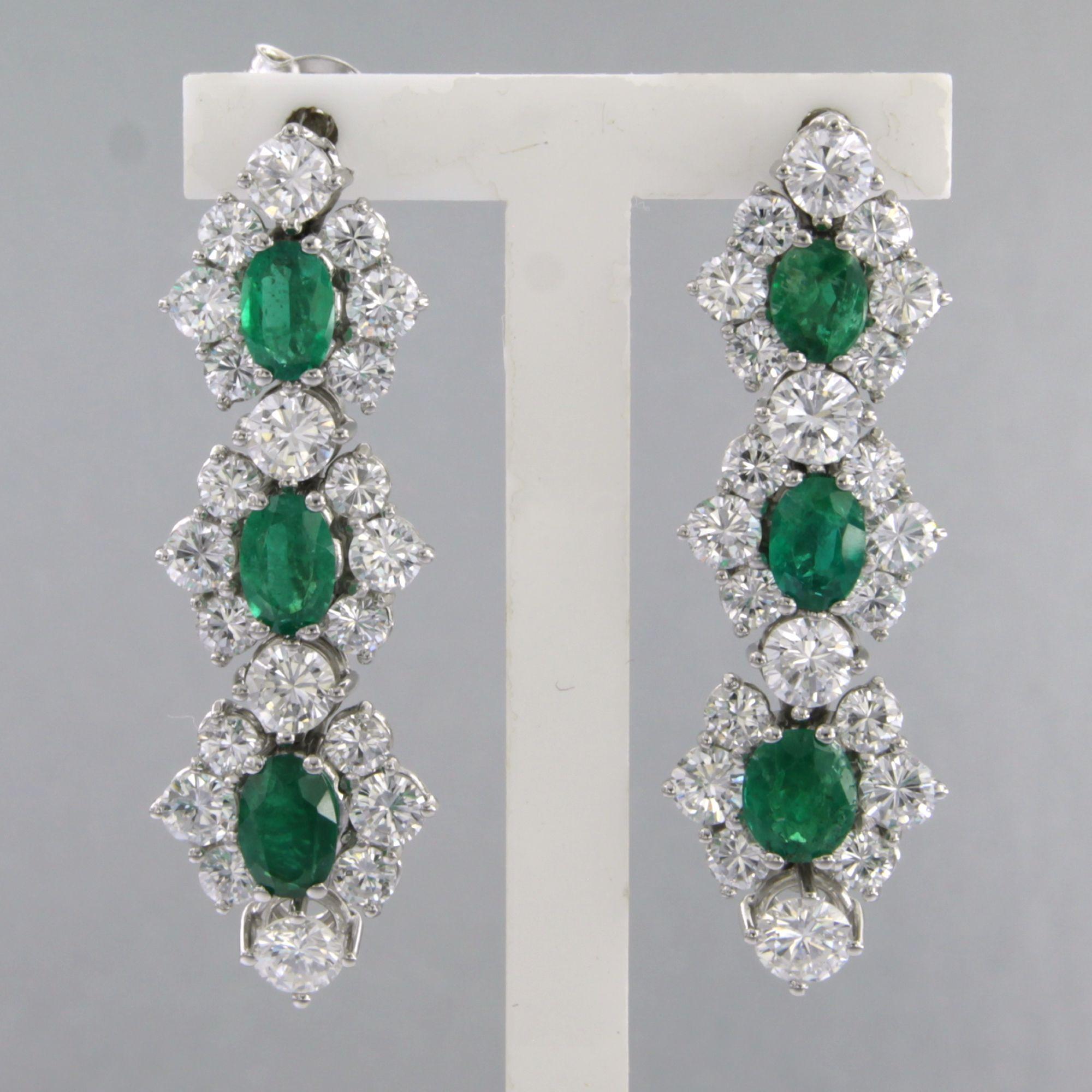 18 Kt. witgouden oorhangers bezet met smaragd en briljant geslepen diamanten totaal 5.00 ct F/G VS/SI