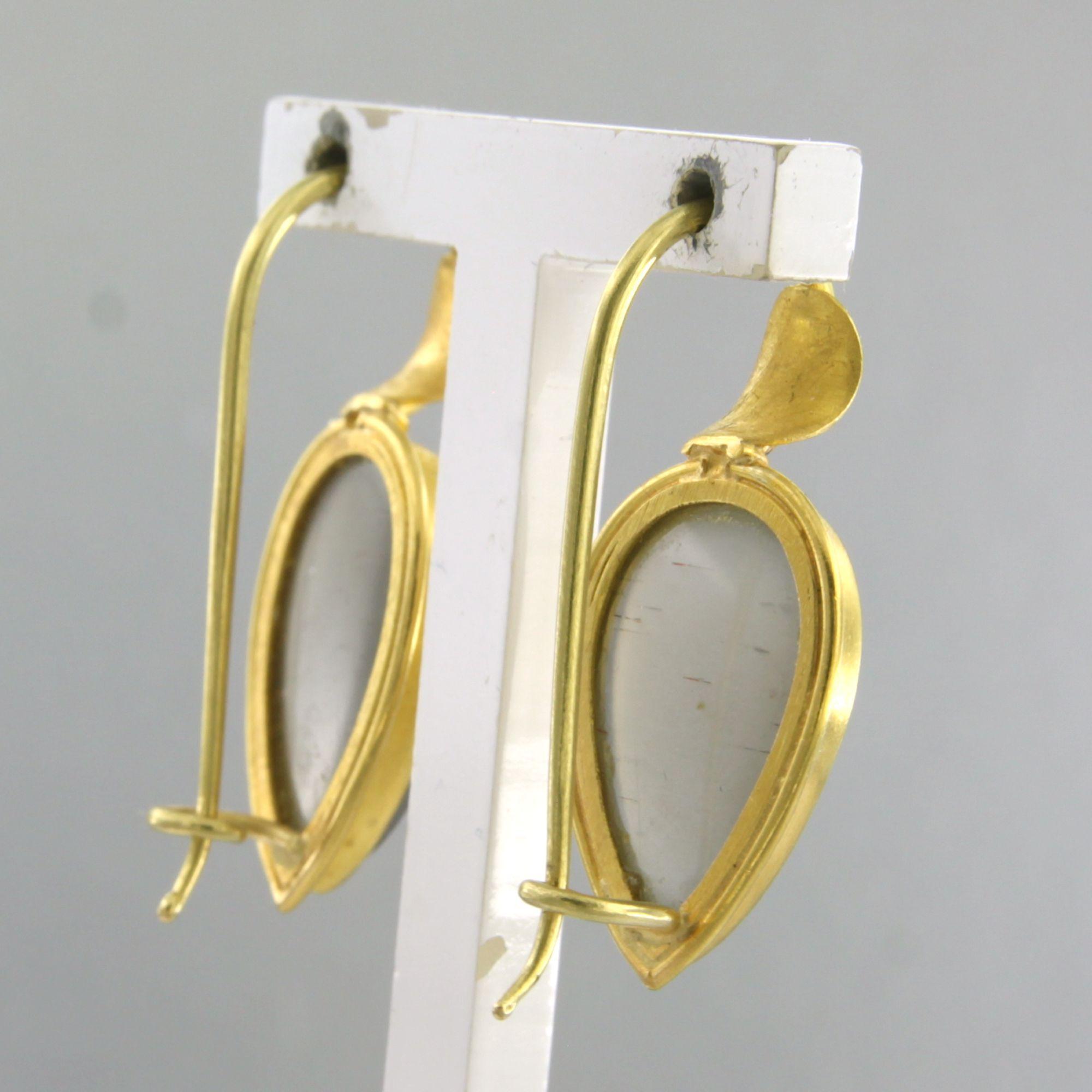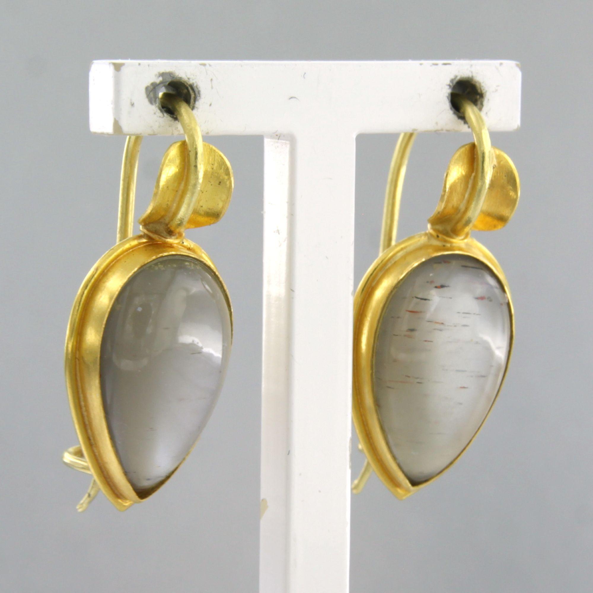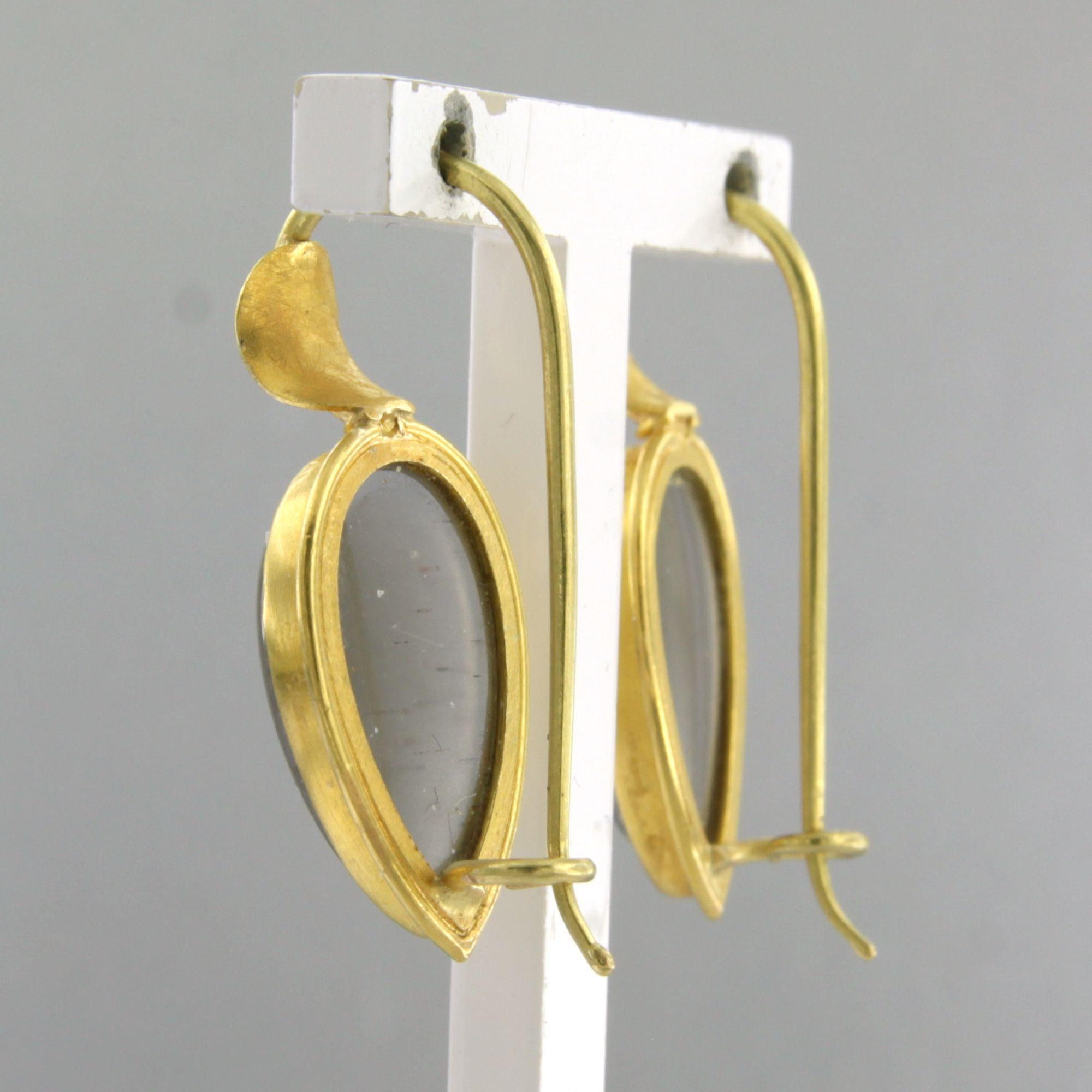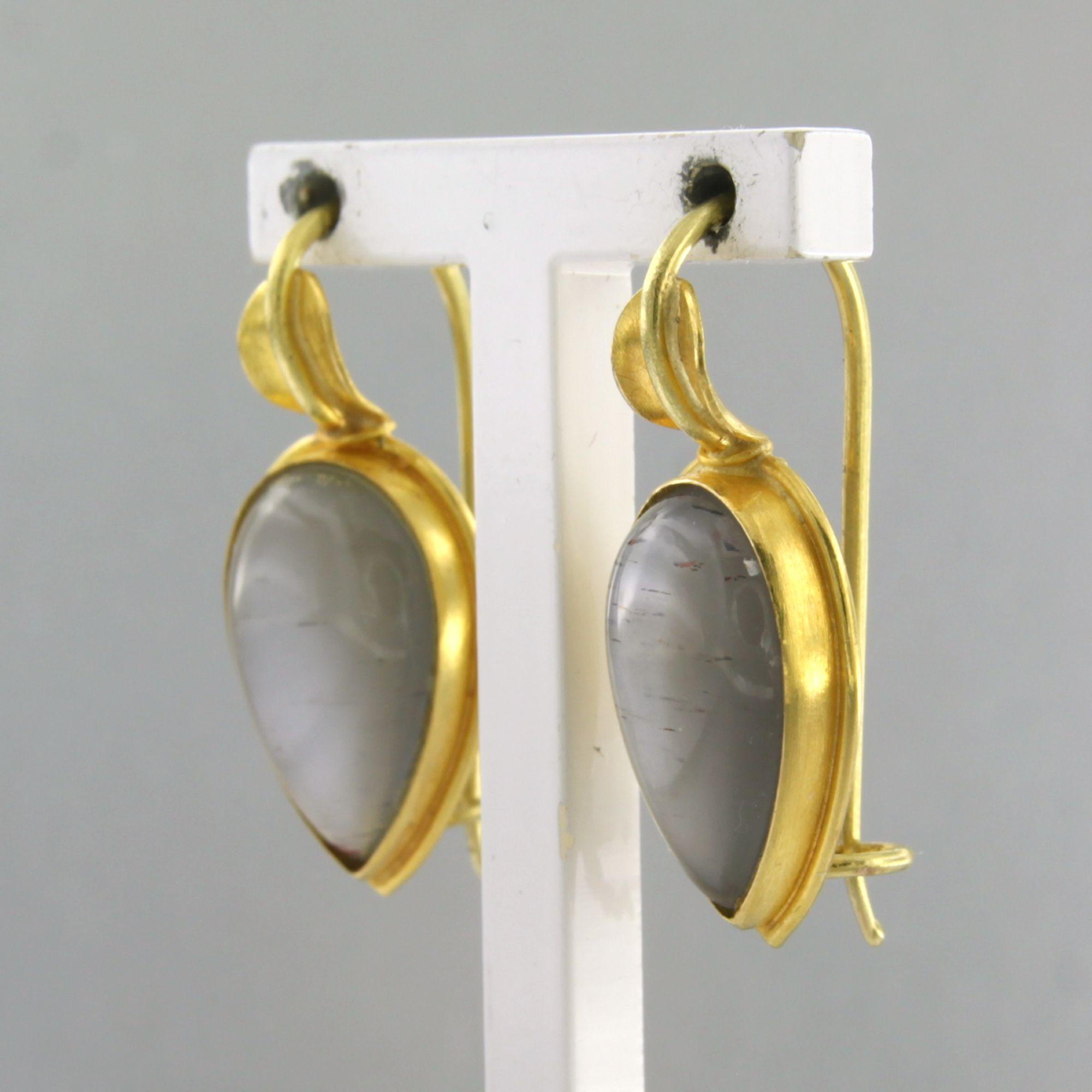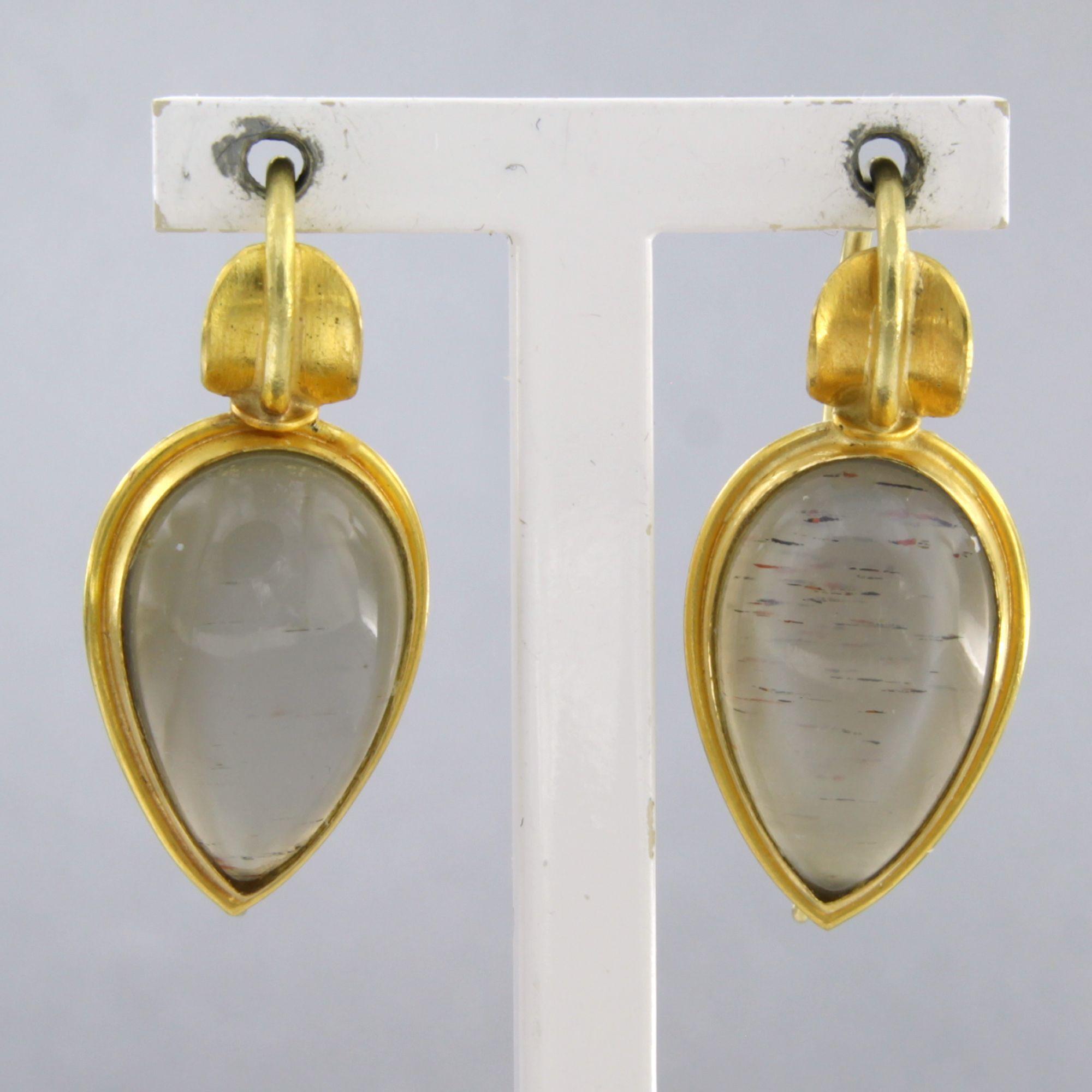 18 Kt. gouden oorhangers bezet met grijze rutielkwarts