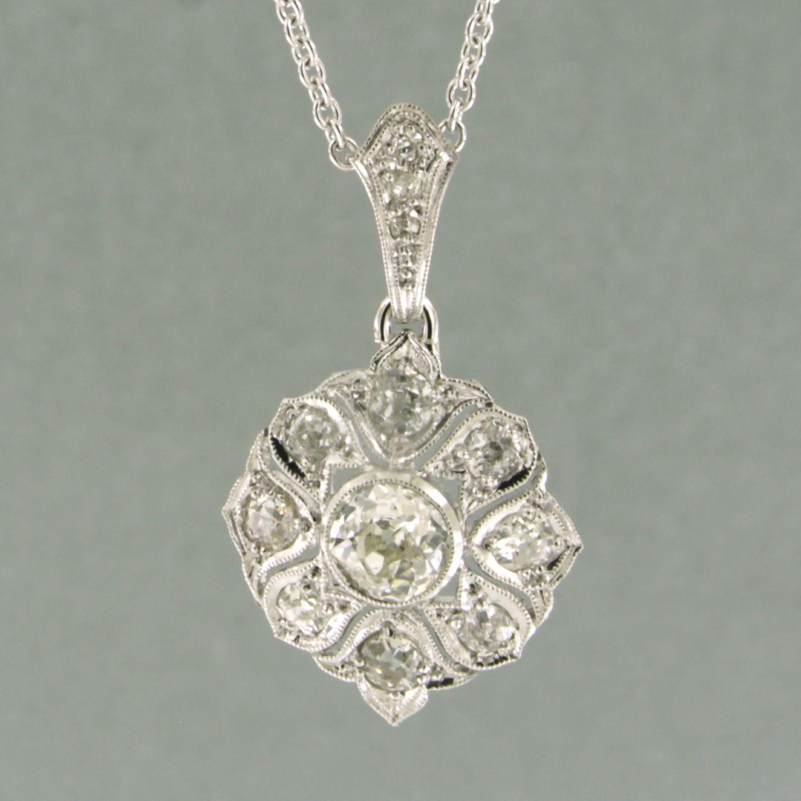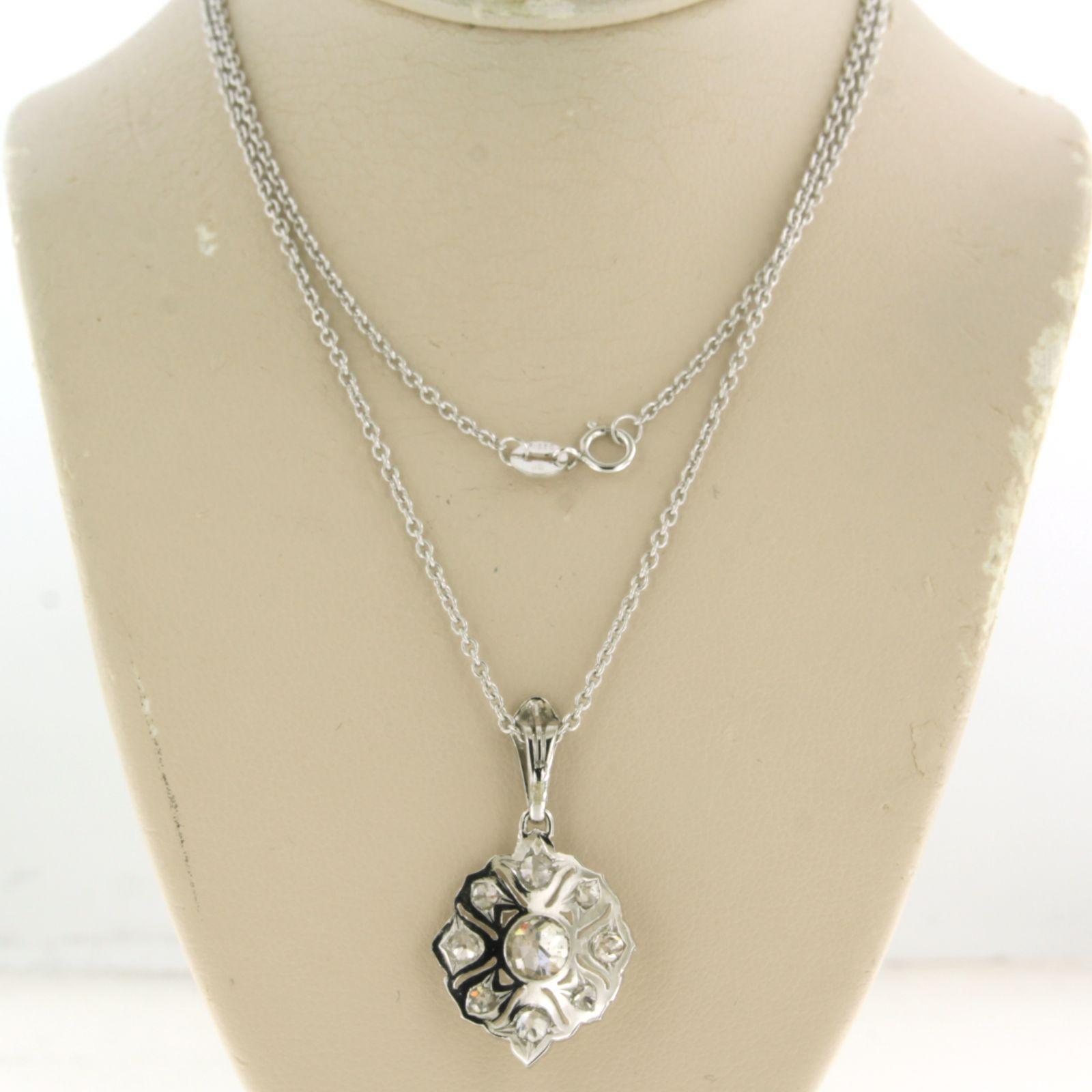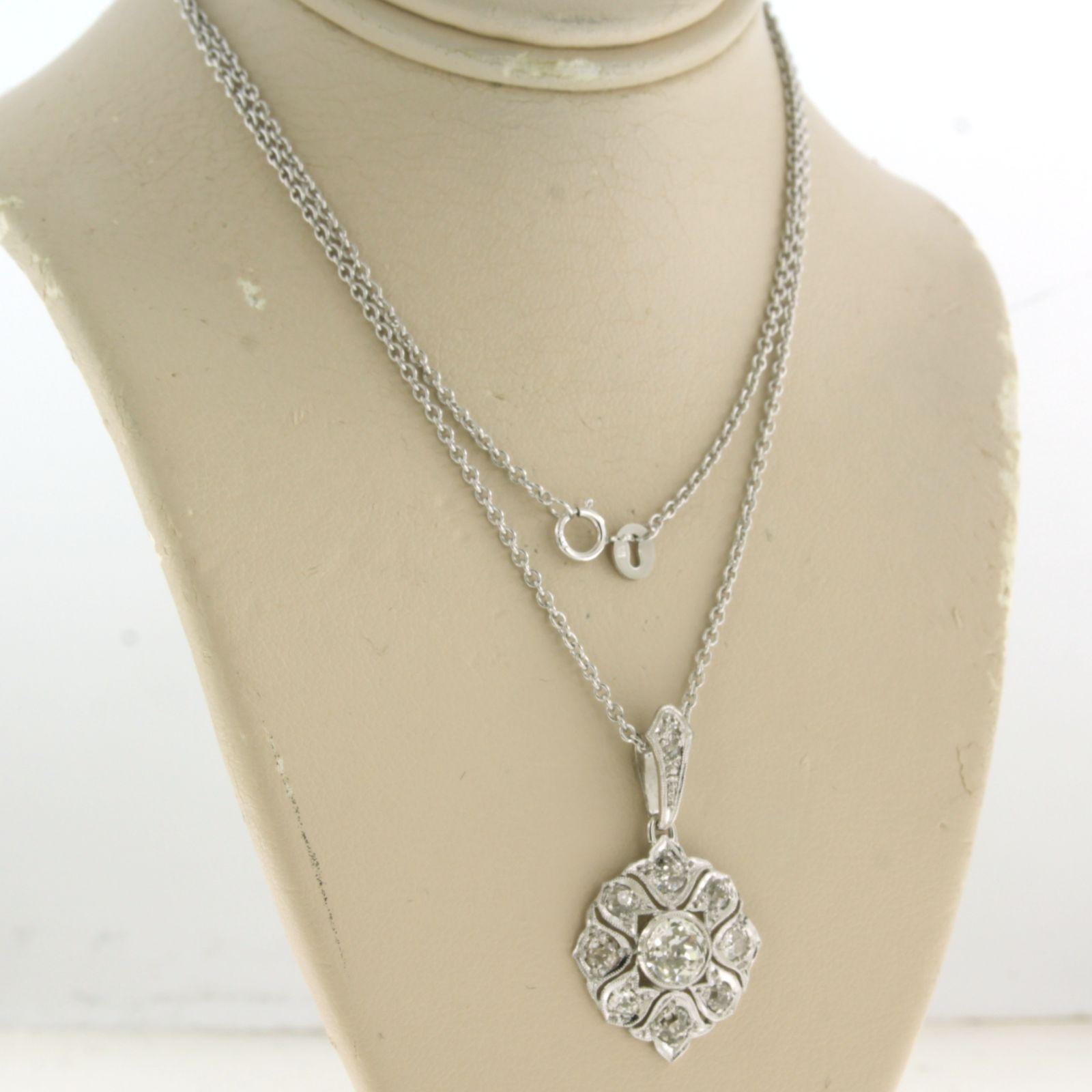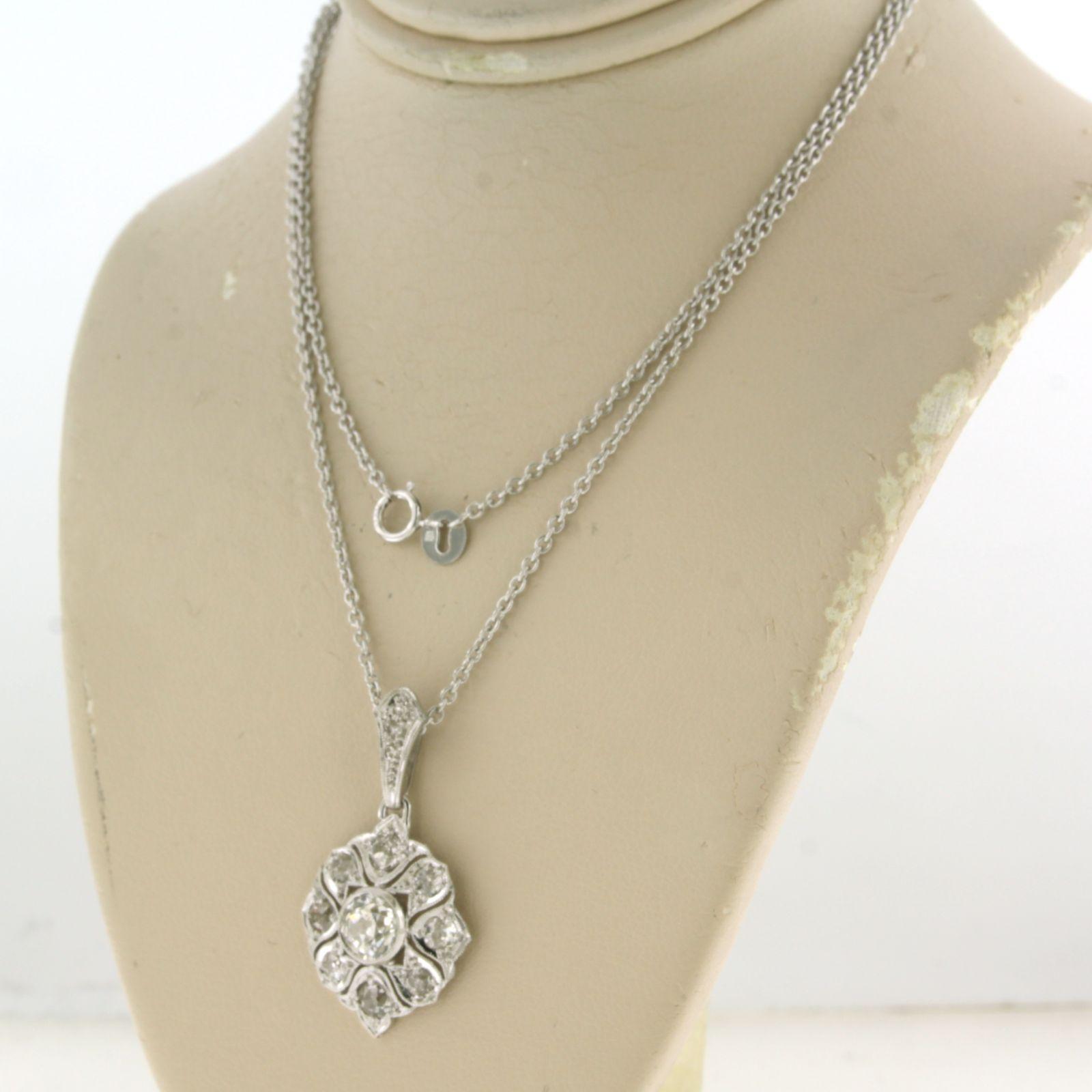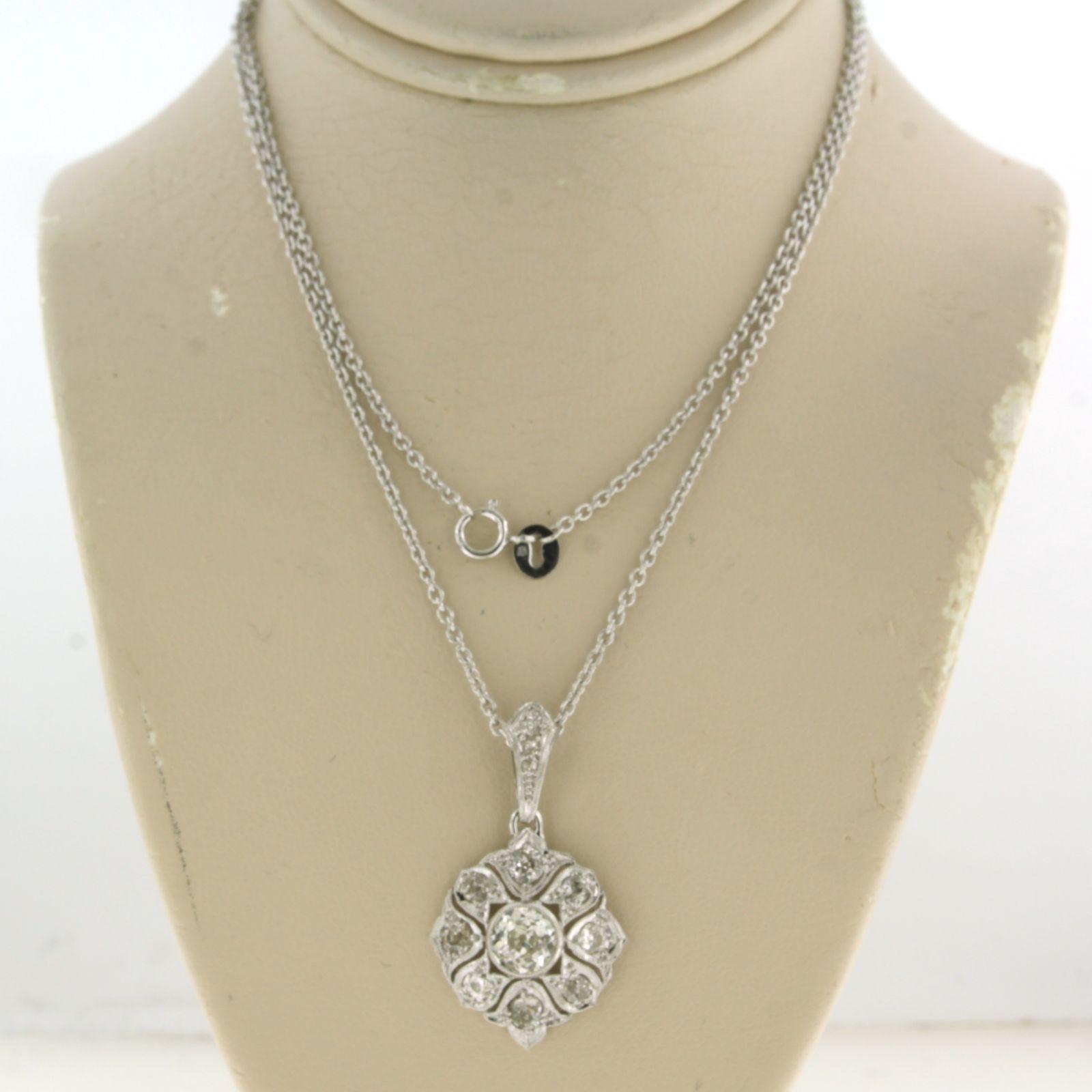 Platina collier met hanger bezet met bolsjewiek geslepen diamanten totaal 2.50 ct - ketting 50 cm