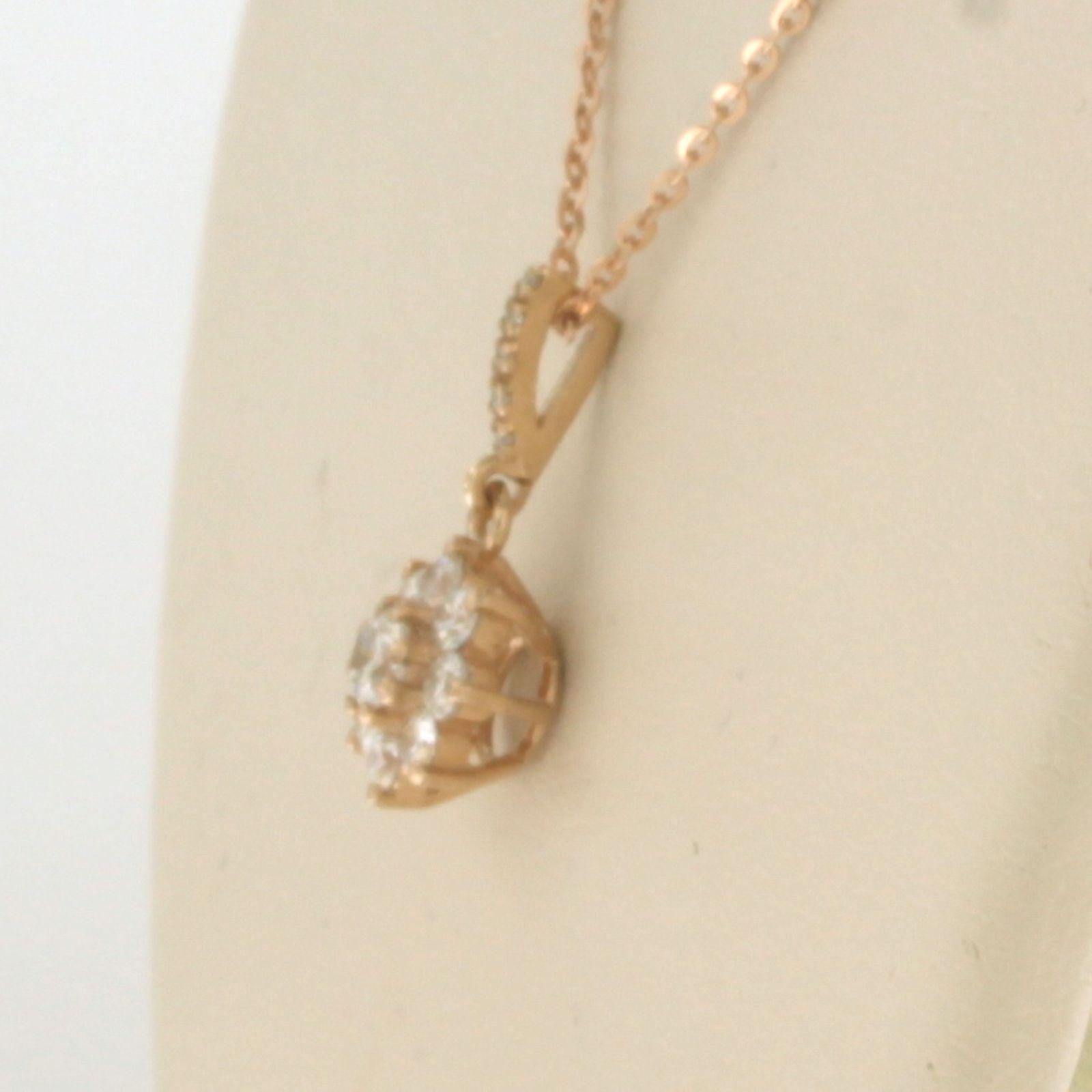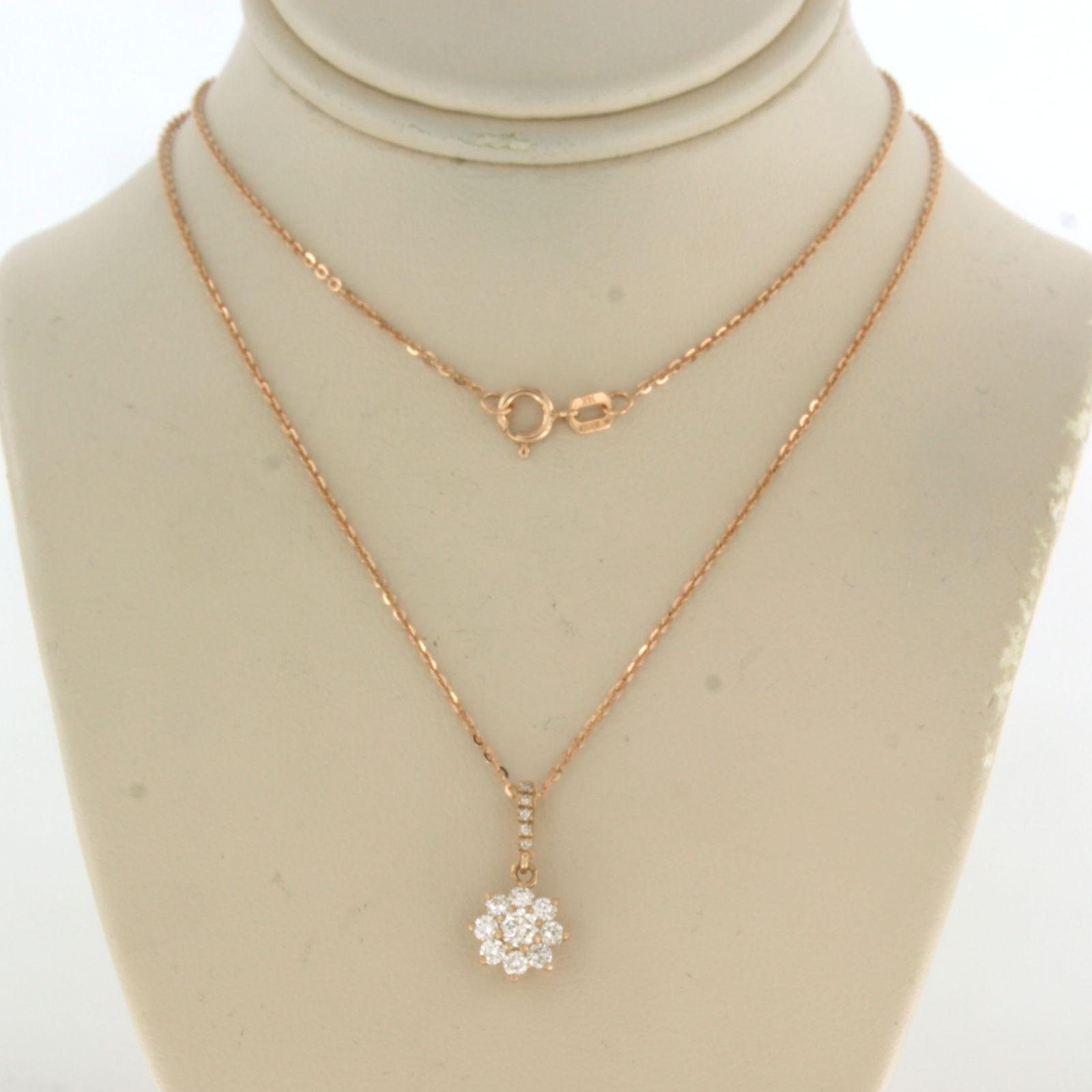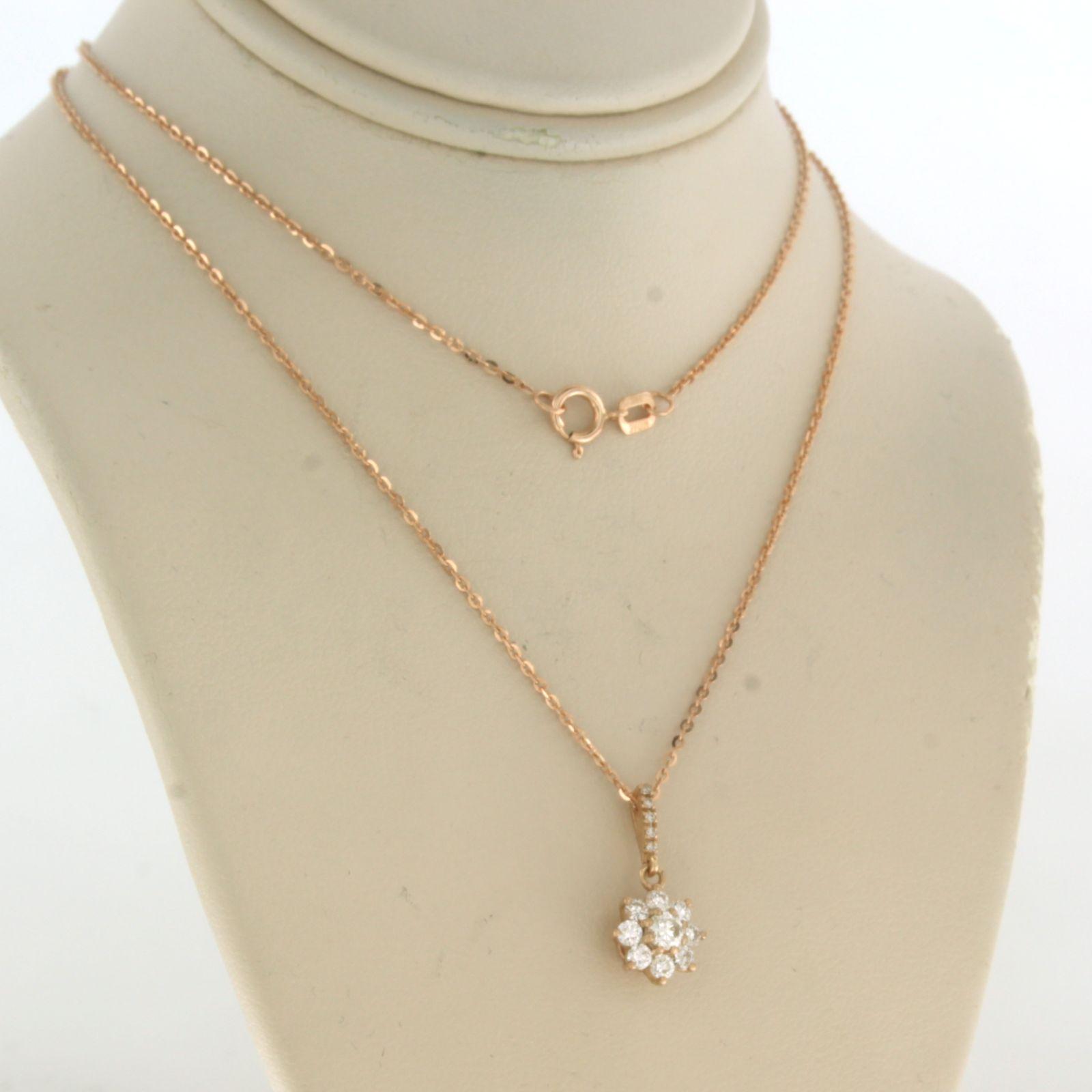 14 Kt. roségouden collier met een entourage hanger bezet met briljant geslepen diamant tot. 0,24ct - 45 cm lang