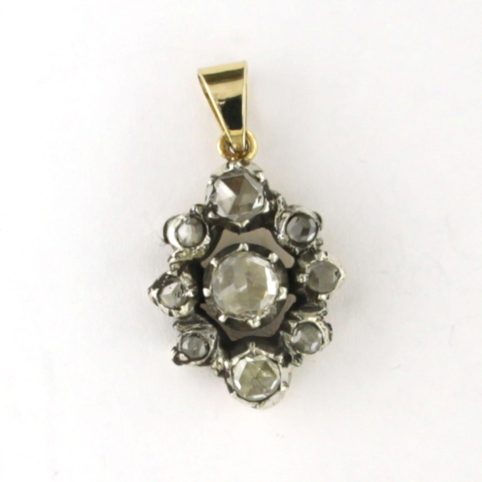 14 Kt. gouden met zilveren hanger bezet met roos geslepen diamanten totaal 0.40ct