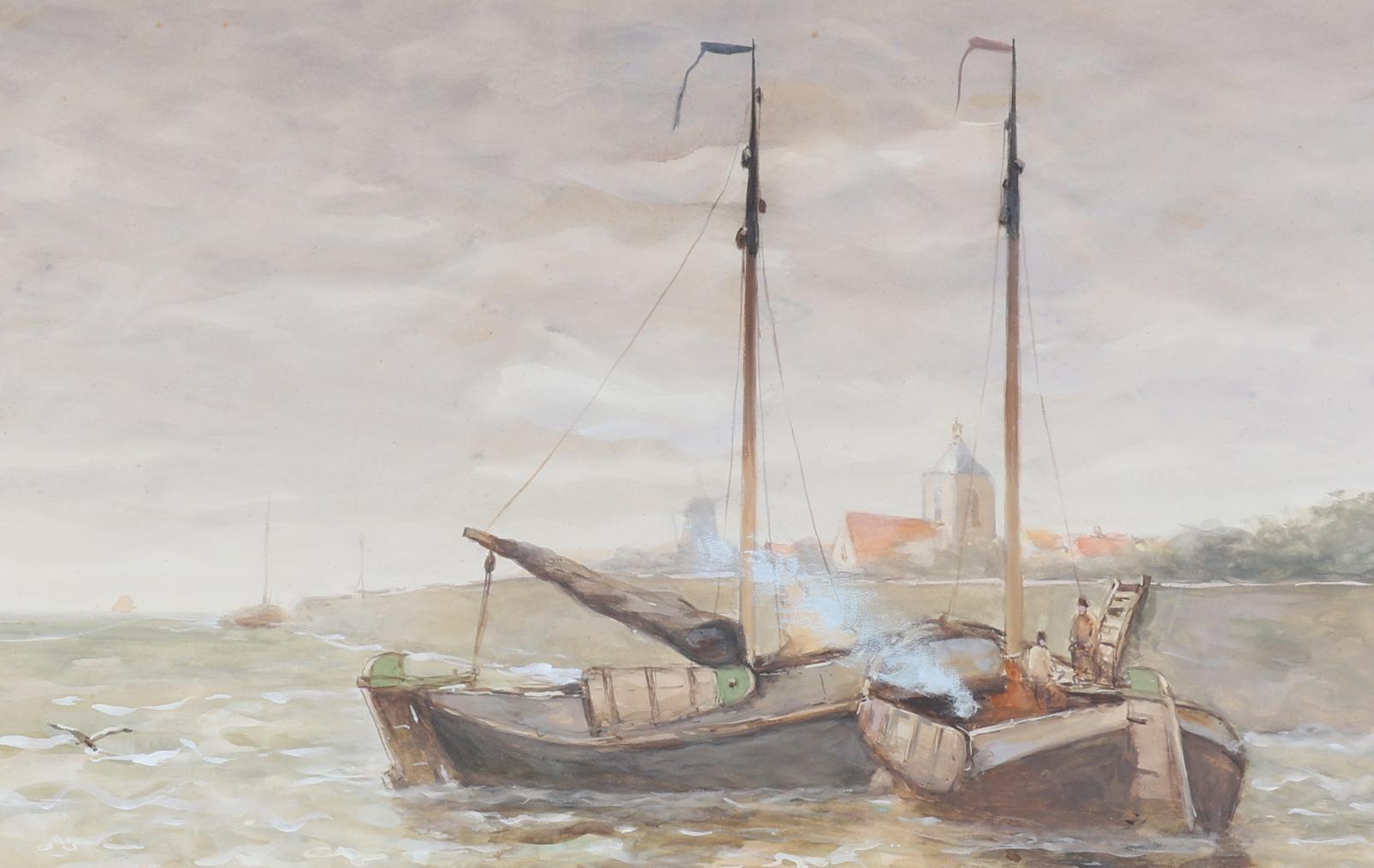 Anton Dirckx (1878-1927), stel aquarellen m.b.t. zeevaart, 61 x 43 cm.