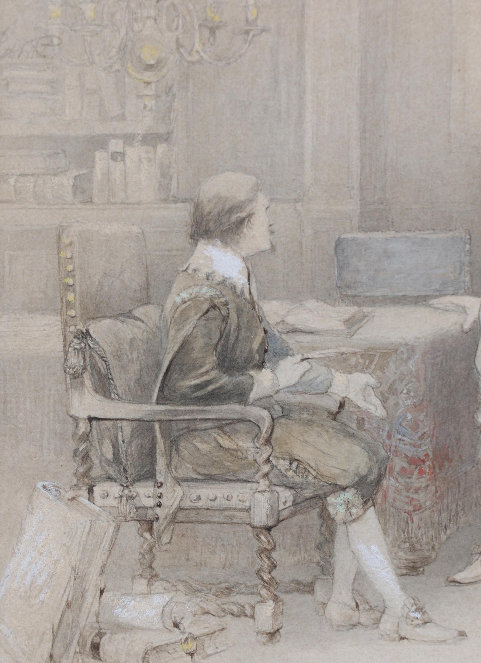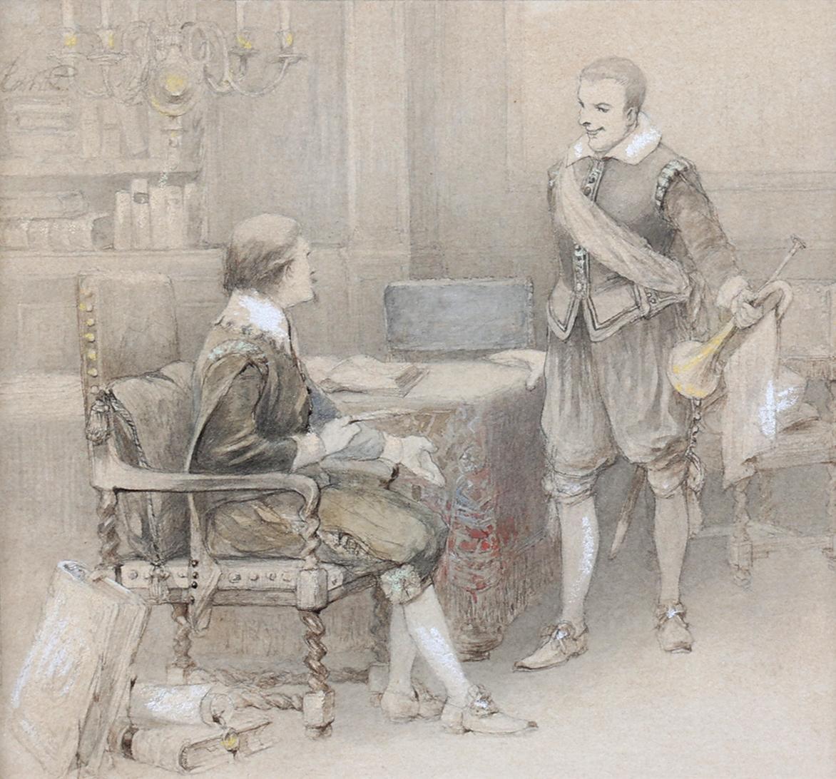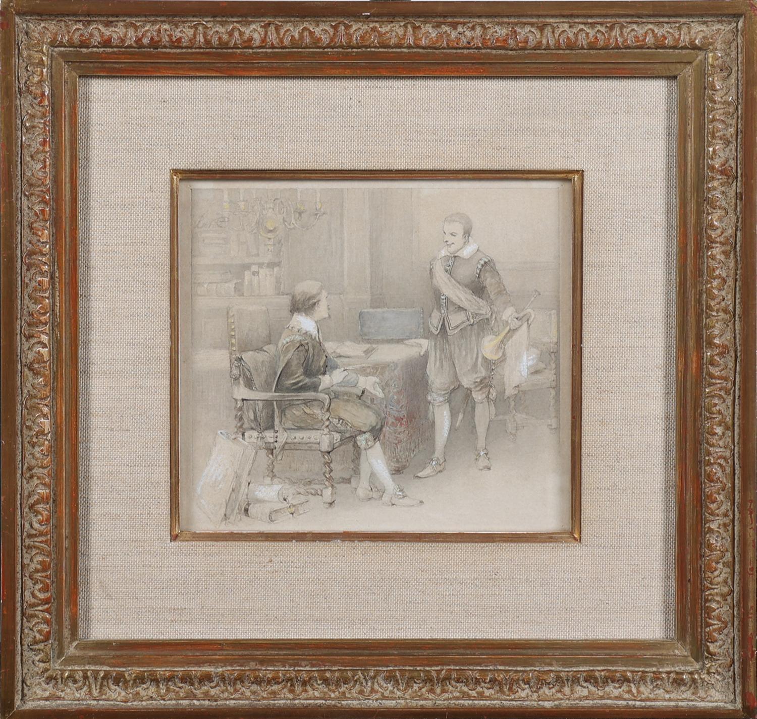 Antieke tekening, (mogelijk Rochussen) 17 x 16 cm.
