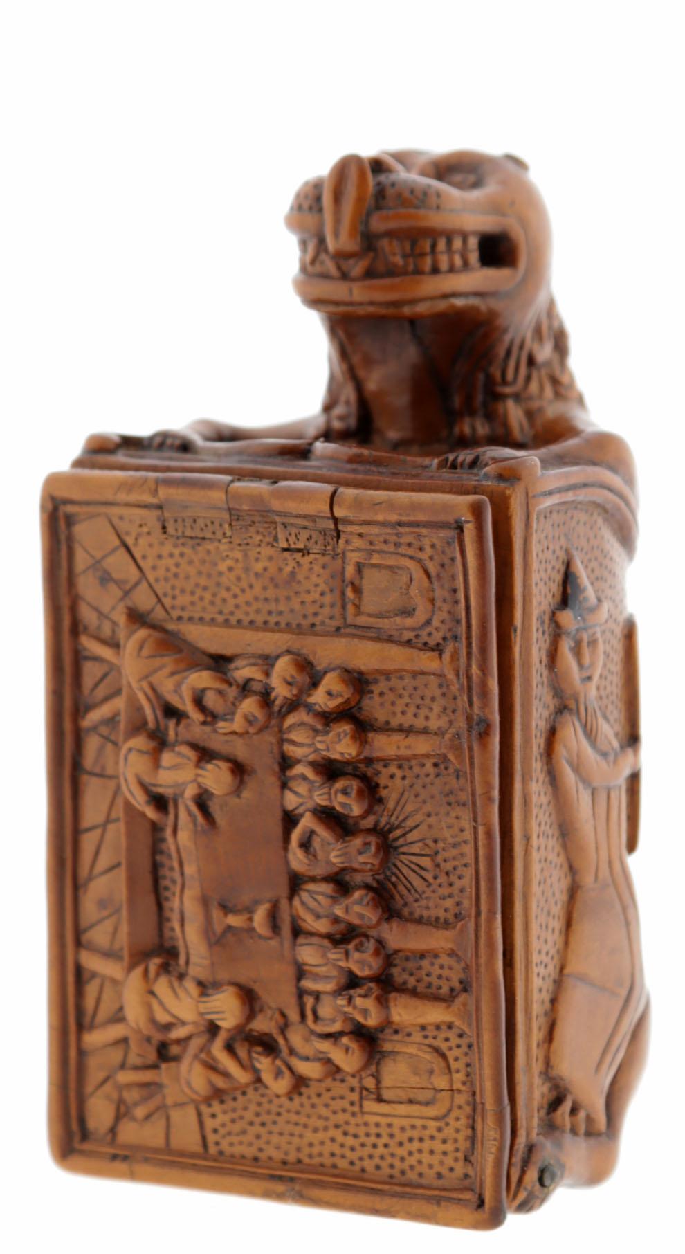 Buxus houten snuifdoos met uitgesneden leeuw met liefdesteks ...