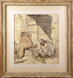 'Marius' Alexander Jacques Bauer, The Hague 1867-1932 Amsterdam, Two Arabs at a door, watercolor, 46 x 41 cm., Provenance: private collection