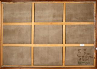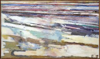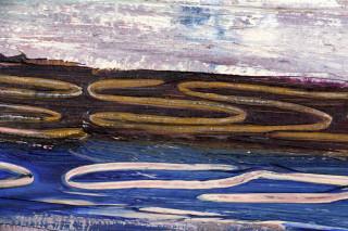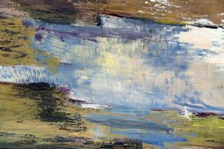 Simone Maria ten Bosch, Dordrecht 1957, "Of an airplane from the sky", oil on canvas, dated 1990, 172 x 290 cm.