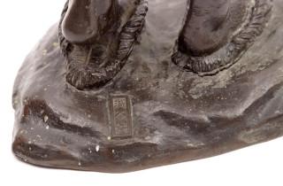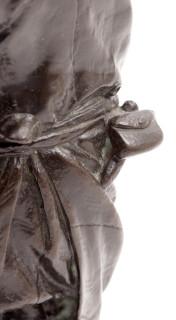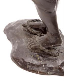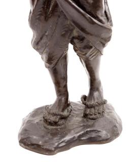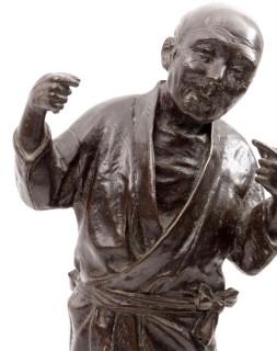 Antieke bronzen Japanse sculptuur van een man, gesigneerd, h.37 cm.