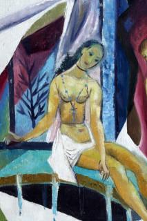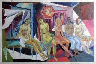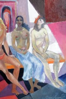 Jacob 'Jaap' Bouhuys, Arnhem 1902-1983 Haarlem, Vijf dames in de sauna, olieverf op doek, 59,5 x 89 cm., provenance: collectie erven Bouhuys-Klaassen
