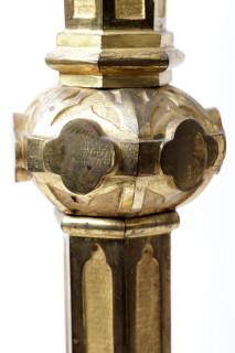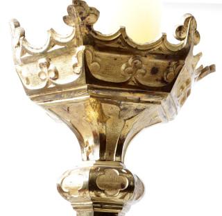 Koperen Neo-gotische 1-lichts kandelaar, h.70 cm.